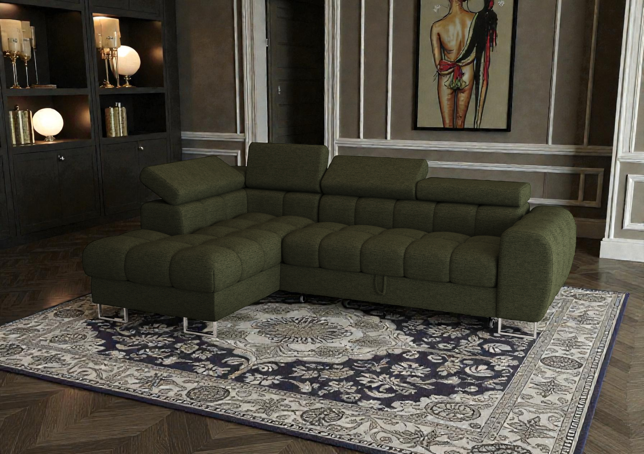 Hledáte nábytek, který vystoupí z řady a dodá vašemu interiéru skutečný charakter? Rozkládací rohová sedačka Diana Mini je odpovědí na nejmodernější trendy v nábytkářství. Její unikátní prošívání, připomínající tabulku čokolády, z ní dělá nepřehlédnutelný designový prvek, který kombinuje hravost s naprostou elegancí.