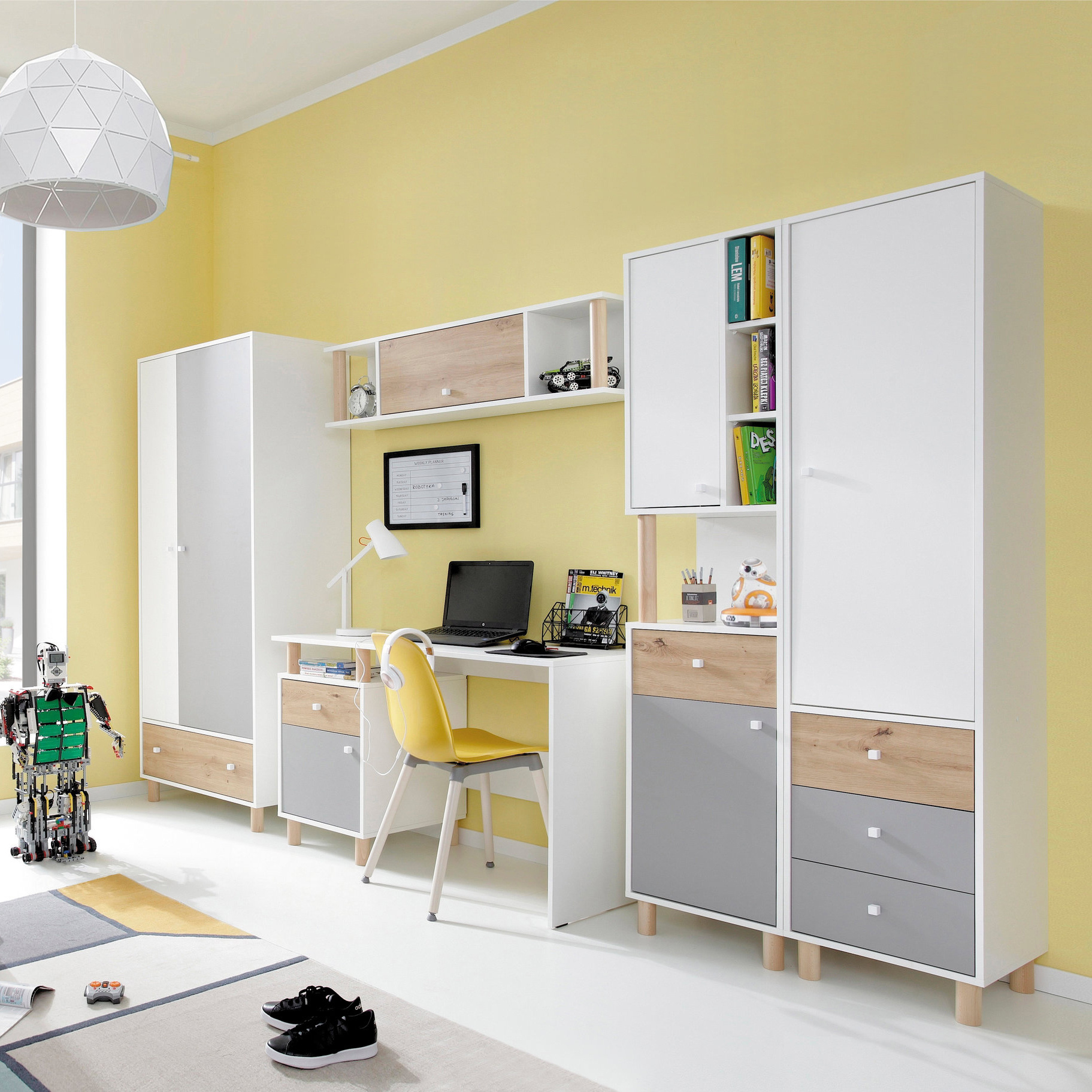 - Korp. v bílé barvě, přední strana v barvě dubu Artisan + bílá + šedá,
