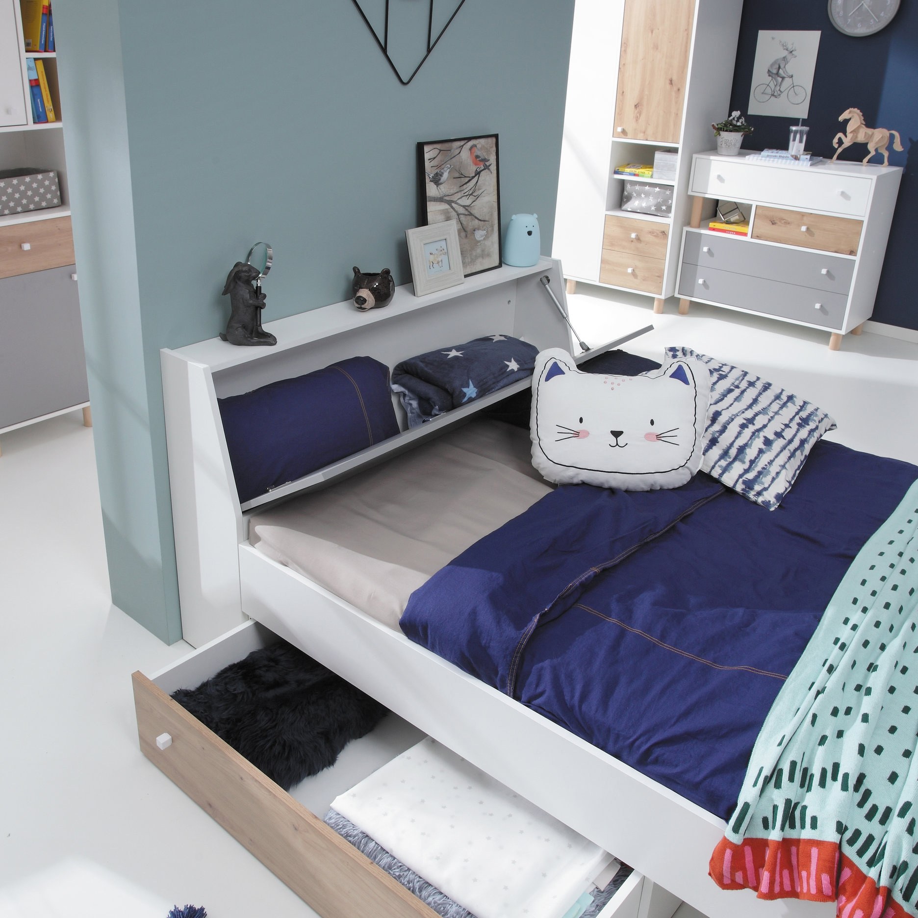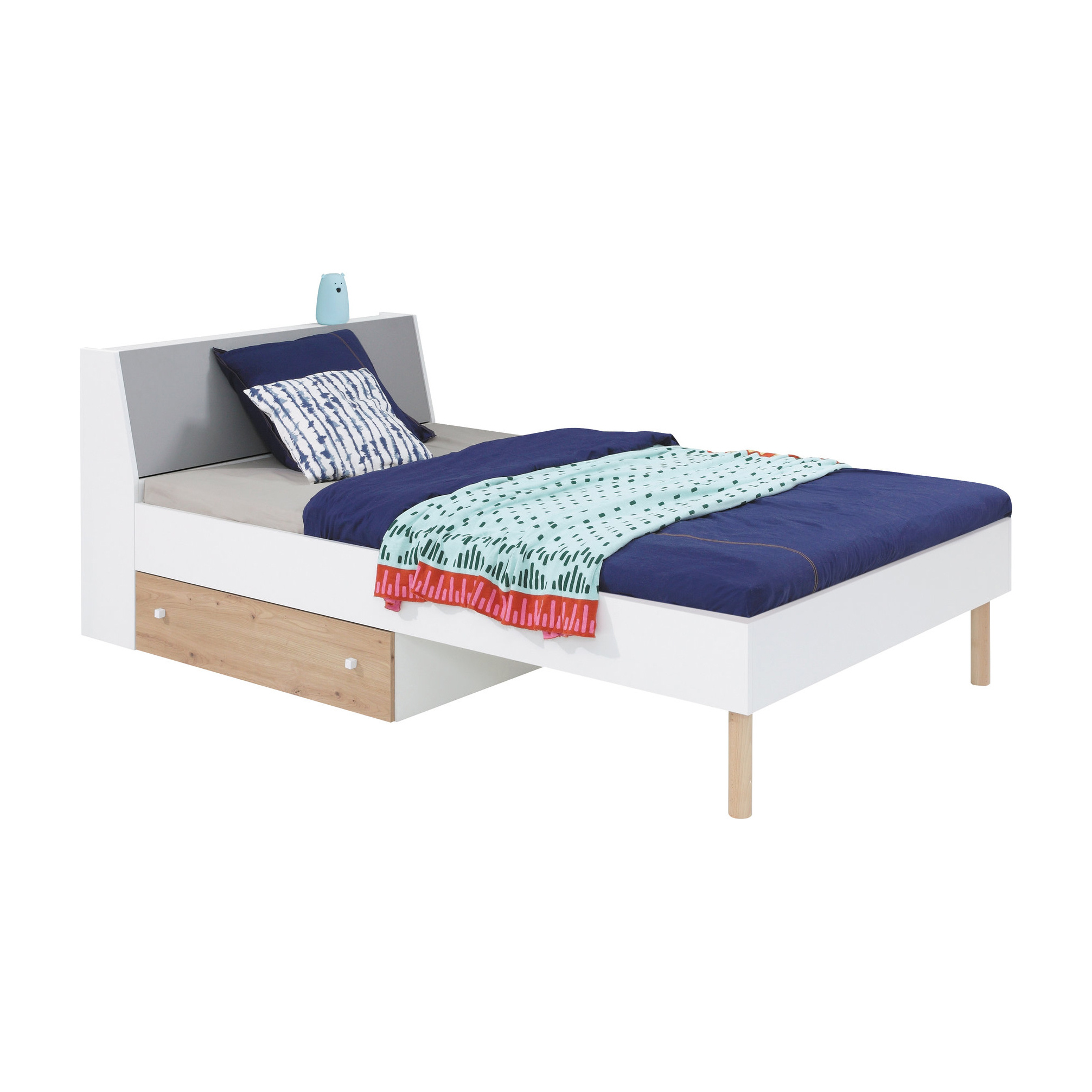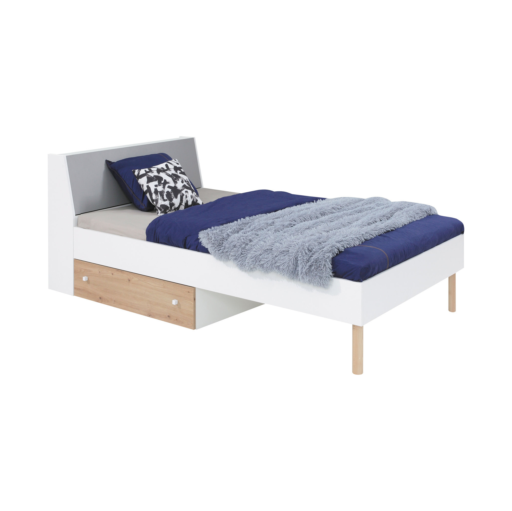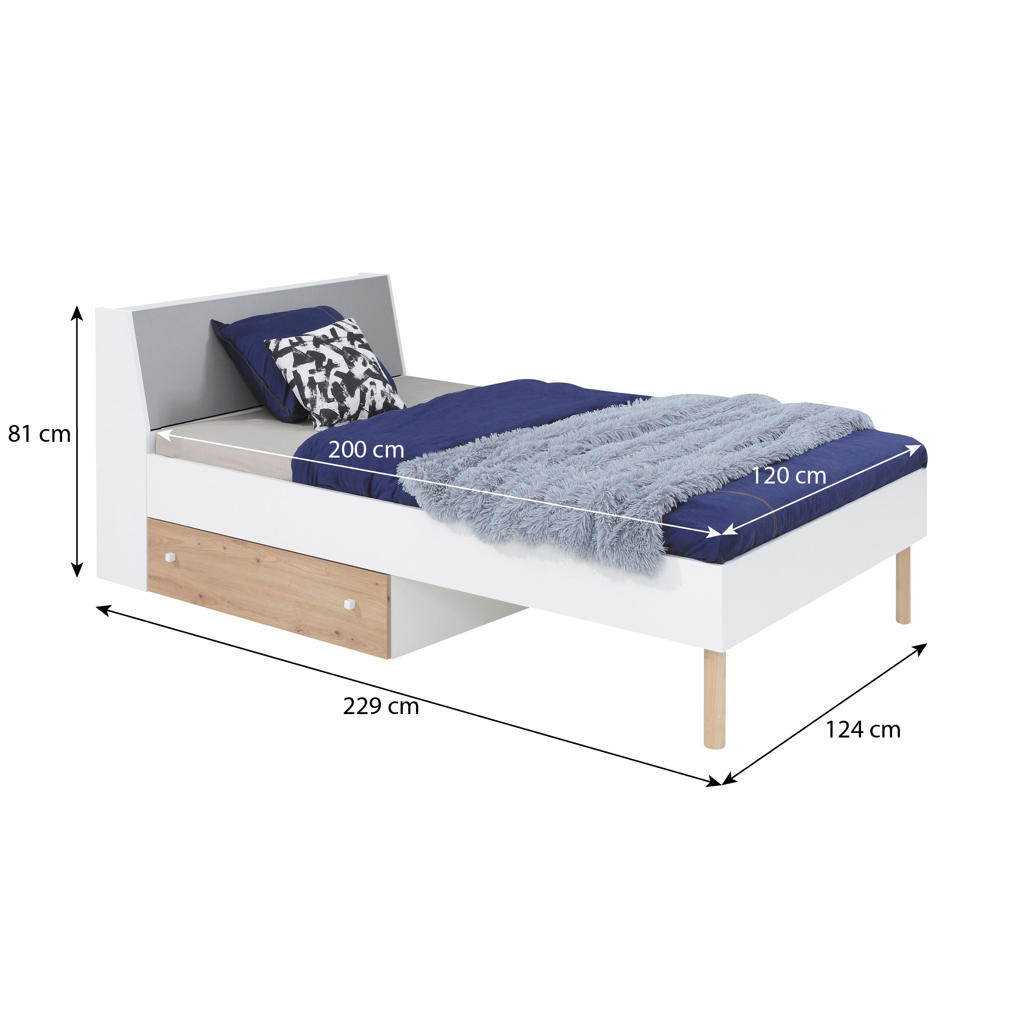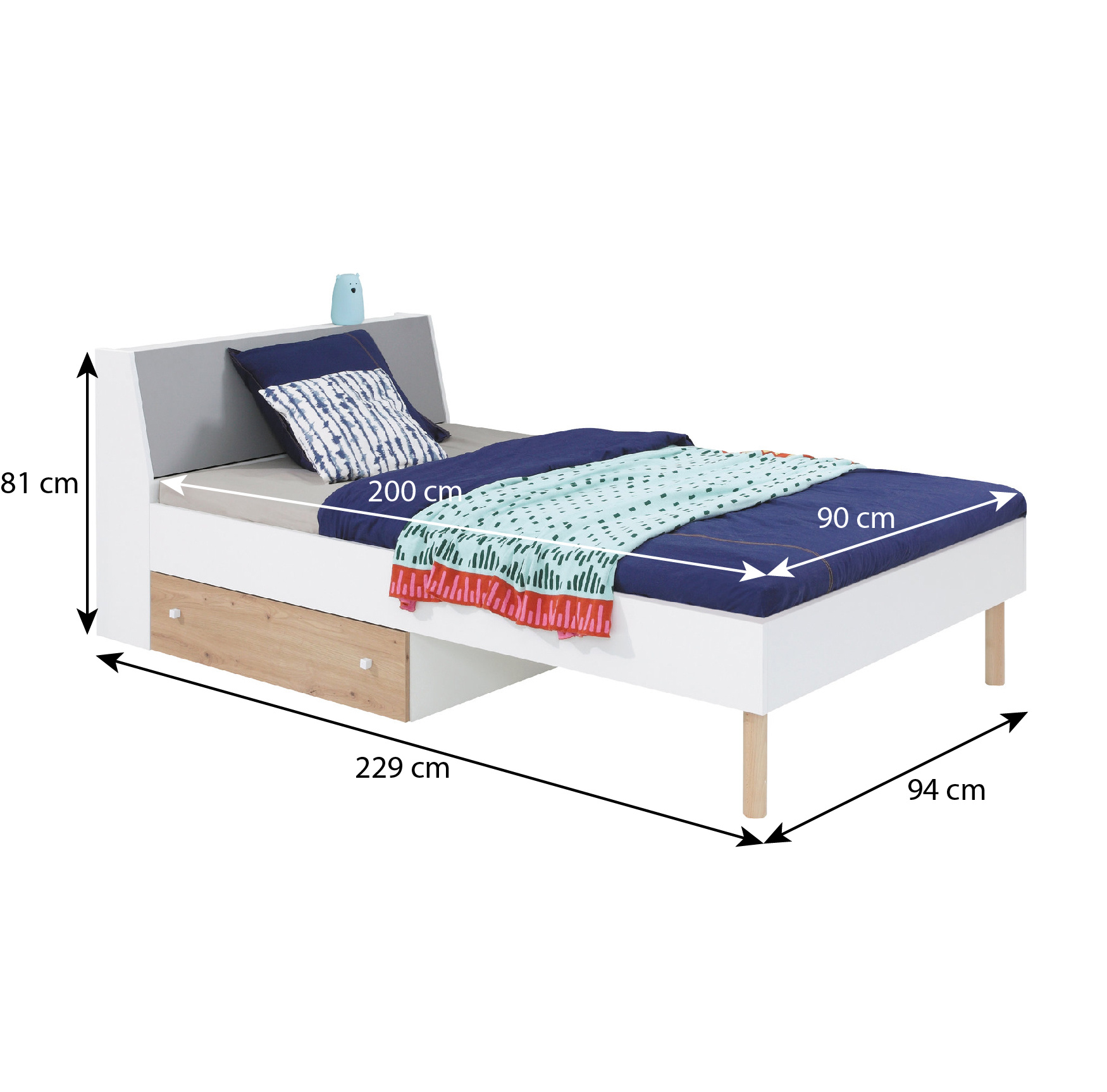 Postel FIGO 90 / 100 x 200 cm kombinuje moderní design s promyšlenou funkčností a je ideálním řešením pro pokoje teenagerů nebo menší pokoje, které si cení stylu a praktičnosti. Elegantní barevná kombinace dubu Artisan, bílé a šedé dodává posteli moderní a příjemný charakter.