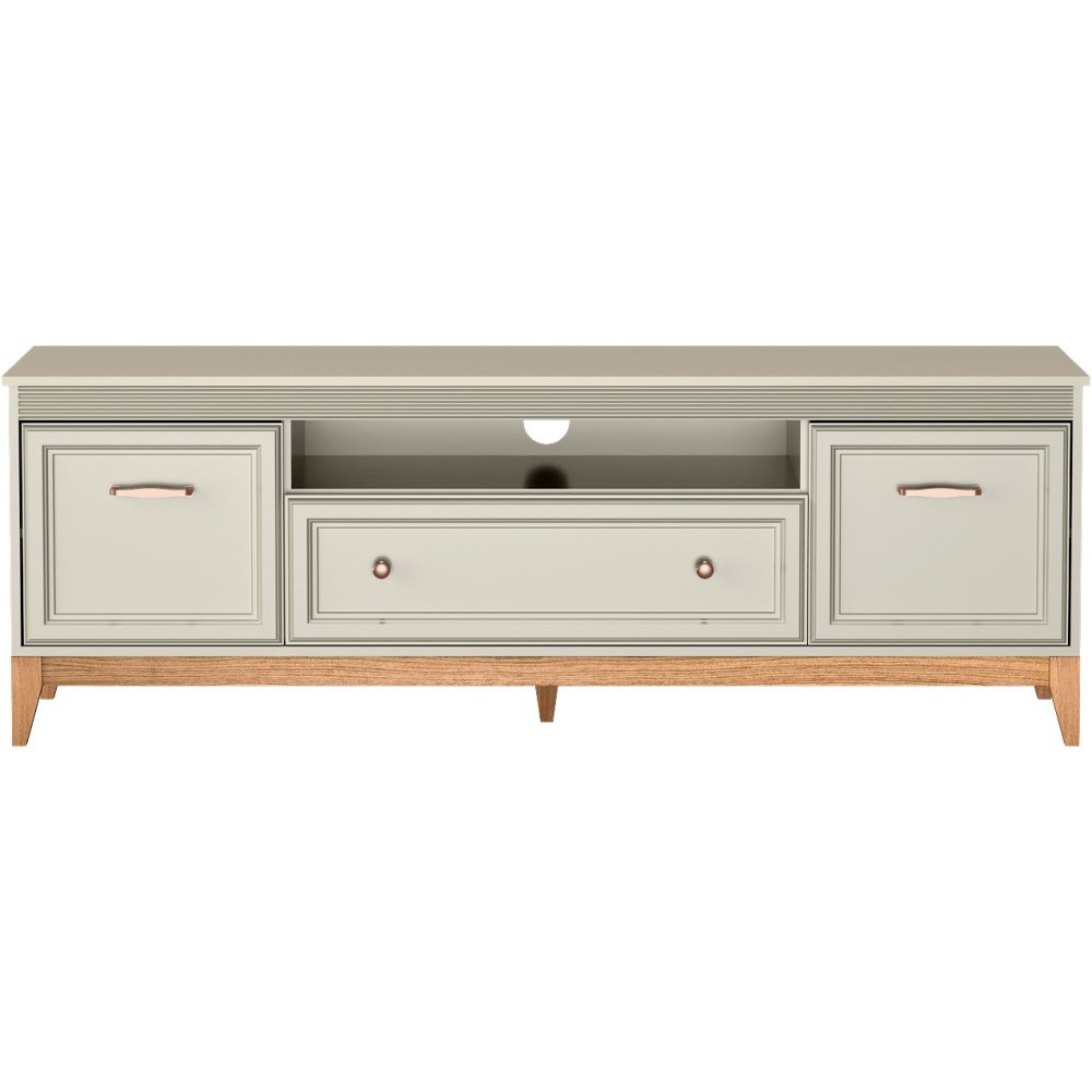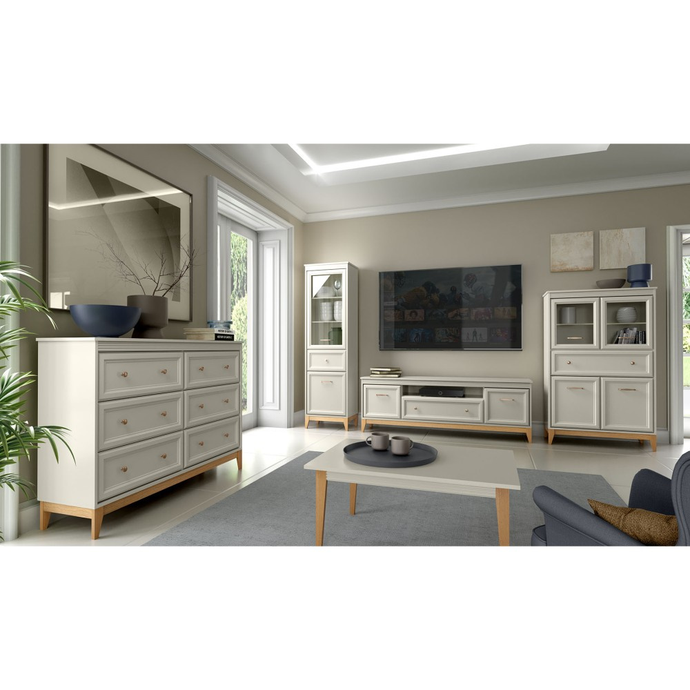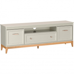 TV stolek CHARLOTT v široké verzi je perfektní volbou pro každého, kdo chce spojit velkorysý úložný prostor se stylovým designem. S rozměry 179 x 40,5 x 61,5 cm nabízí dostatek prostoru pro velké televizory, konzole, dekodéry a další audio zařízení. Dvě boční skříňky s dvířky poskytují diskrétní úložiště dokumentů a příslušenství, zatímco otevřený výklenek umožňuje rychlý přístup k vaší technologii. Středová zásuvka s funkcí tlumeného dovírání zaručuje tiché a pohodlné zavírání – den za dnem. Korpus a čela ve stylové kašmírové barvě dokonale ladí s pevnou základnou a zúženými dřevěnými nožičkami, které jsou nejen vizuálně přitažlivé, ale také zajišťují stabilitu a odolnost. Díky vysoce kvalitnímu zpracování a konstrukci z MDF se televizní stolek CHARLOTT hodí do klasických i moderních obytných prostor – stane se vkusným ústředním bodem každého zábavního centra. Rozměry: 179 Výška: 61,5 cm Hloubka: 40,5 cm Rádi bychom vás informovali, že všechny rozměry čalouněného nábytku podléhají toleranci +/- 2 %. Snažíme se zobrazit všechny barvy co nejpřesněji. Upozorňujeme však, že v důsledku nastavení monitoru a grafické karty se mohou vyskytnout drobné odchylky. Toto není důvod k reklamaci. Barvy různých sérií látek se navíc mohou mírně lišit v odstínu. Dodání je možné na adresy v rámci Německa. Nedodáváme na ostrovy ani do horských oblastí. Máme vlastní bezpečnou a rychlou přepravní službu. O datu dodání budete předem informováni.