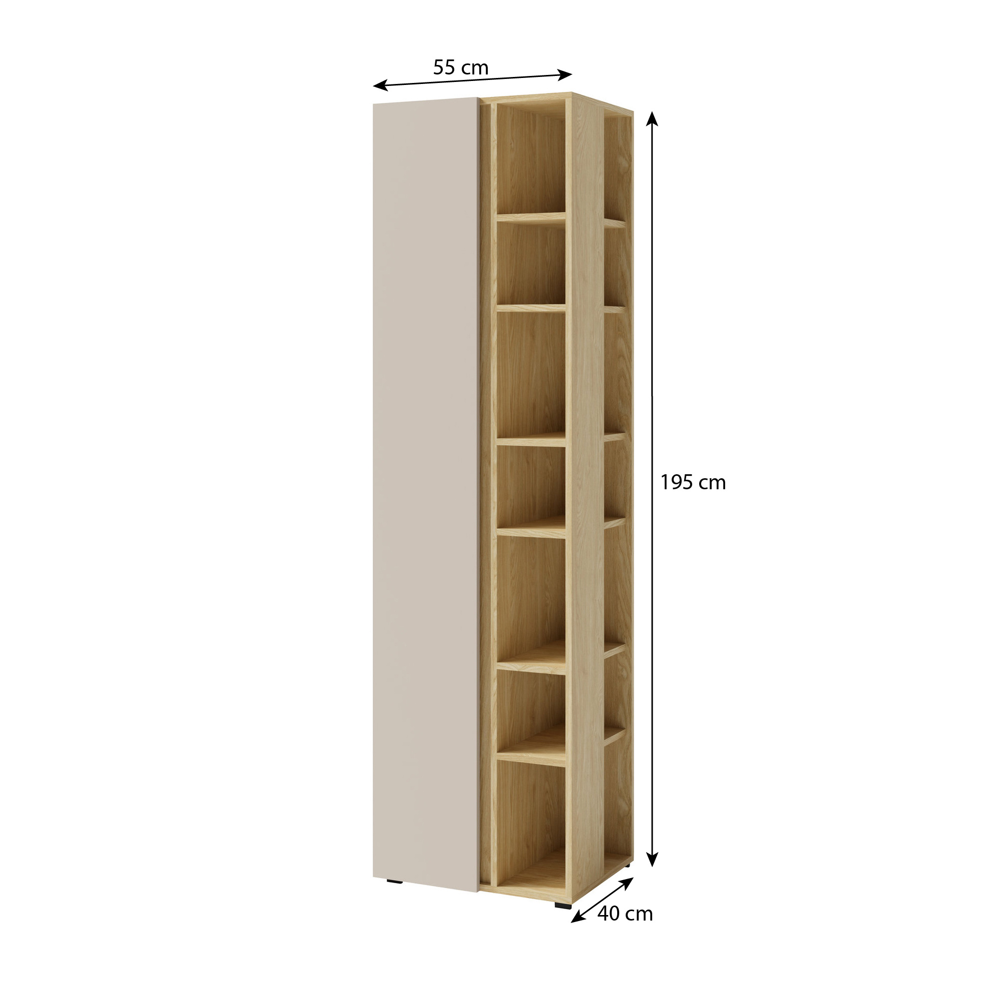 Knihovna LICO kombinuje moderní design s vysokou funkčností a je ideálním doplňkem do vašeho obývacího pokoje, pracovny nebo pokoje pro teenagery. Díky kompaktním rozměrům 55 × 40 × 195 cm se vejde i do menších místností a zároveň nabízí dostatek úložného prostoru. Díky stylovým barevným variantám