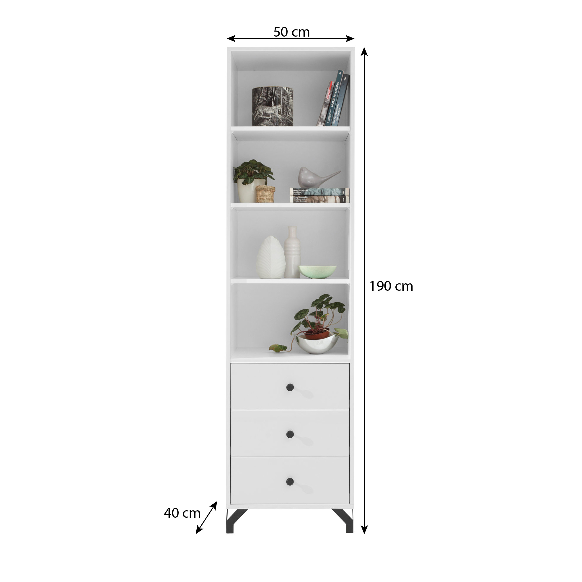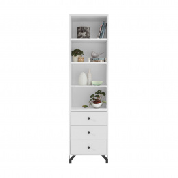 Knihovna BERGO kombinuje moderní design, vysokou funkčnost a vynikající řemeslné zpracování. Díky elegantní kombinaci matné bílé a lesklá bílé vnese nadčasovou eleganci do každého pokoje teenagera nebo obývacího pokoje. Díky chytrému uspořádání nabízí jak otevřené, tak uzavřené úložné prostory, které dokonale kombinují organizaci a styl. Tři otevřené police – ideální pro vystavení knih, dekorací nebo osobních oblíbených věcí. Tři zásuvky s kuličkovými výsuvy – hladké a odolné, ideální pro menší předměty nebo doplňky. Minimalistické černé kovové rukojeti – zajišťují moderní a elegantní vzhled. Robustní kovové nohy zajišťují stabilitu a zdůrazňují moderní vzhled. Vysoce kvalitní zpracování – robustní, odolná a snadno se čistí díky odolným materiálům. Knihovna BERGO se 3 zásuvkami je ideálním řešením pro každého, kdo chce spojit úložný prostor a moderní design. Ať už knihy, dekorace nebo předměty denní potřeby – vše zde najde své místo.