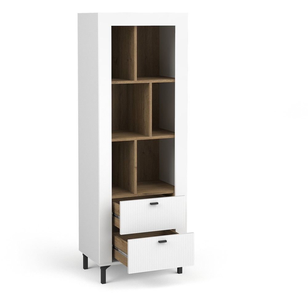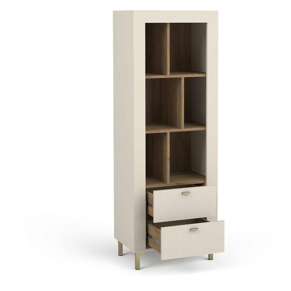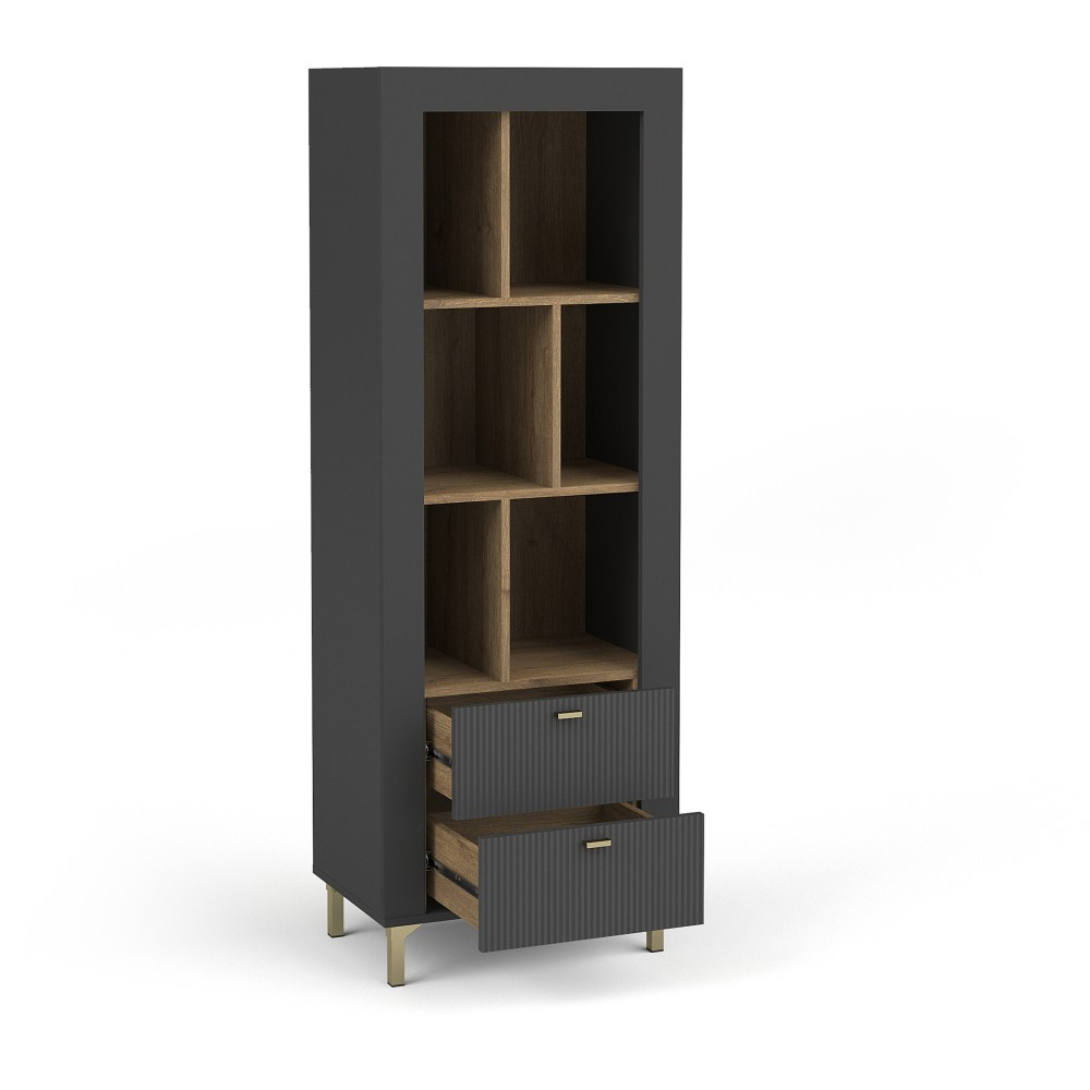 Knihovna MONTA se 2 zásuvkami kombinuje moderní design, funkčnost a vysoce kvalitní zpracování v elegantním kusu nábytku. Díky čistým liniím a přirozeným barevným kombinacím vnese do každého obytného prostoru řád a styl.