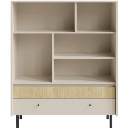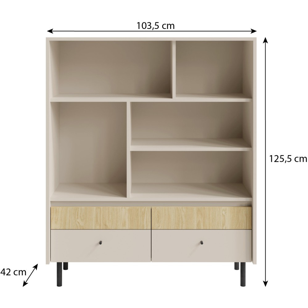 Knihovna MONAKO je perfektním řešením pro každého, kdo chce spojit moderní design s promyšleným uspořádáním a dostatkem úložného prostoru. Díky svým kompaktním rozměrům 103,5 × 42 × 125,5 cm je ideální do pokoje pro teenagery, obývacího pokoje nebo domácí kanceláře a nabízí prostor pro knihy, dekorace a osobní věci. Pět otevřených polic – ideální pro vystavení knih, obrázků nebo dekorativních doplňků, které zpříjemní váš domov. Čtyři praktické zásuvky – poskytují další úložný prostor pro menší předměty, jako jsou kancelářské potřeby, kabely nebo osobní věci. Harmonická barevná kombinace – souhra moderních tónů vytváří elegantní vzhled a moderní charakter.