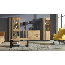 Hledáte design, který propojí váš domov v jeden harmonický celek? Představujeme exkluzivní řadu nábytku, která sází na odvážný kontrast dubu wotan a hluboké matné černé. Charakteristickým prvkem této kolekce jsou ozdobné lamely, které dodávají nábytku nezaměnitelný 3D efekt a moderní architektonický vzhled.