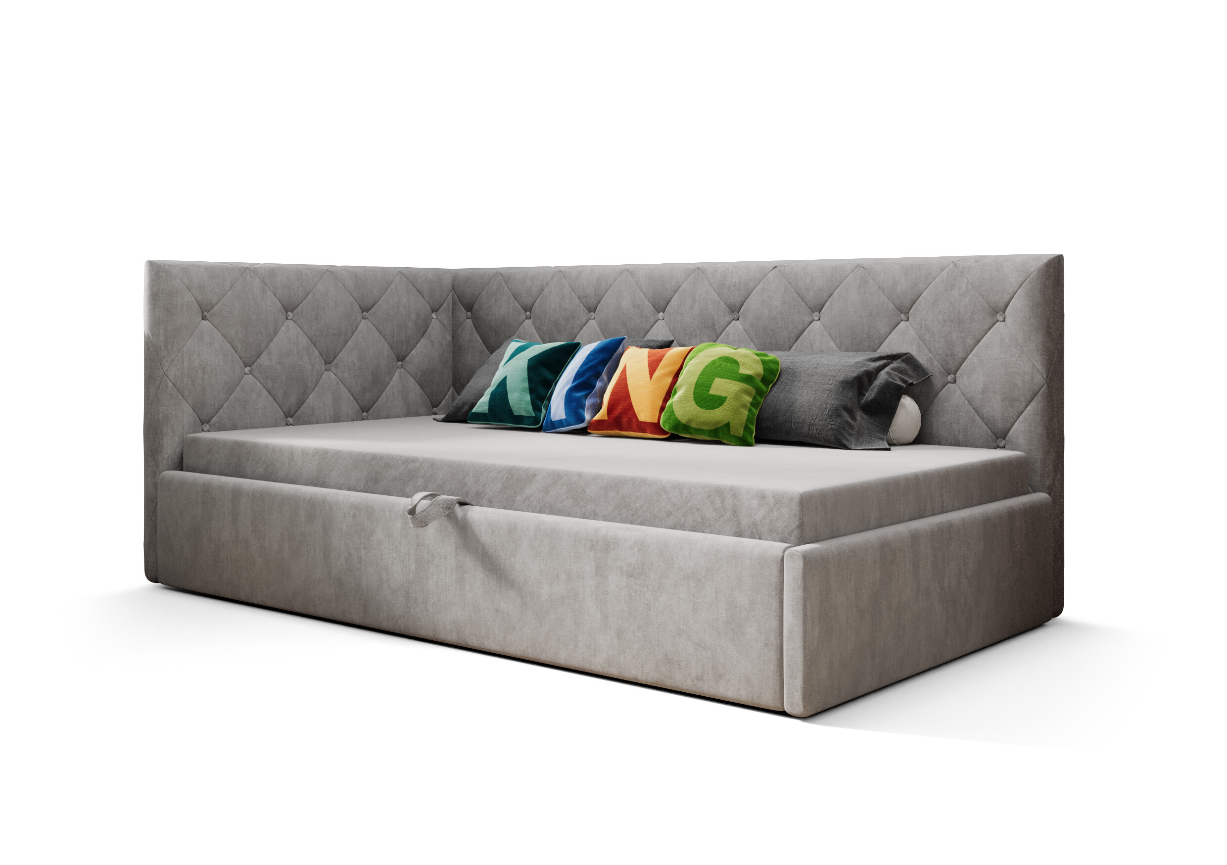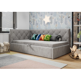 • Bezpečí na prvním místě: Při vývoji jsme mysleli na aktivní děti. Postel nemá žádné ostré hrany, je měkce čalouněná a pevná, což z ní dělá bezpečné místo pro spánek i odpolední relaxaci.