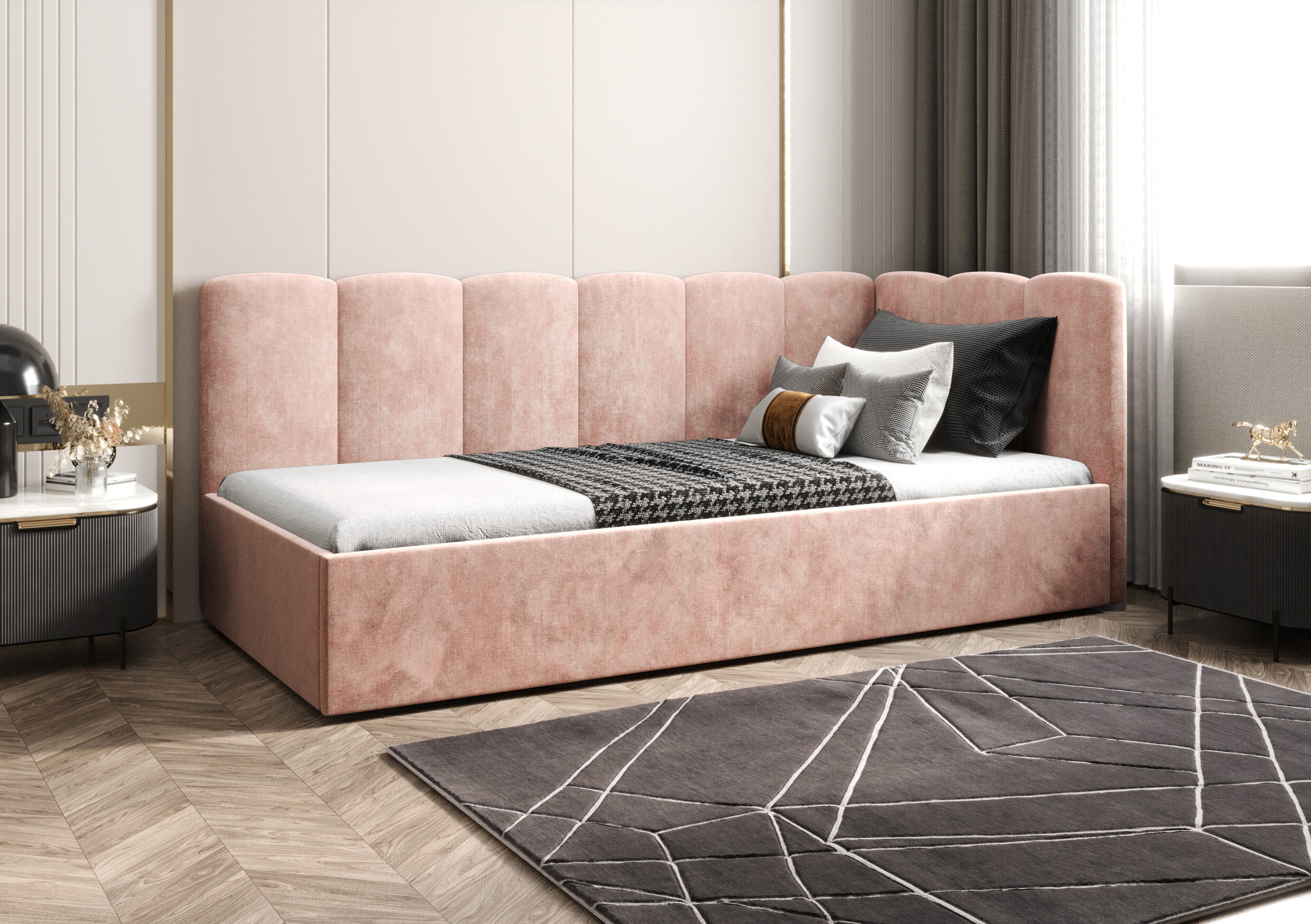 Čalouněná postel Radana – Bezpečný a stylový spánek pro vaše děti