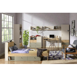 Vytvořit pokoj, který roste spolu s vaším dítětem a zároveň splňuje nároky na design i praktičnost, nebylo nikdy snazší. Studentský nábytek Onoto přináší do dětského pokoje harmonii a řád díky unikátní barevné kombinaci šedobéžové, olejovaného dubu a osvěžujícího eukalyptu. Tato paleta barev vytváří klidné a inspirativní prostředí, které je ideální jak pro soustředěné studium, tak pro zasloužený odpočinek.