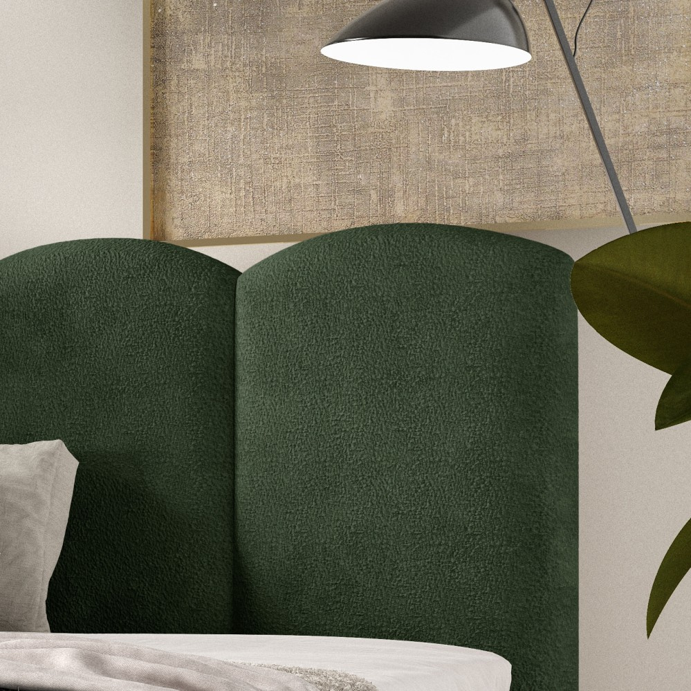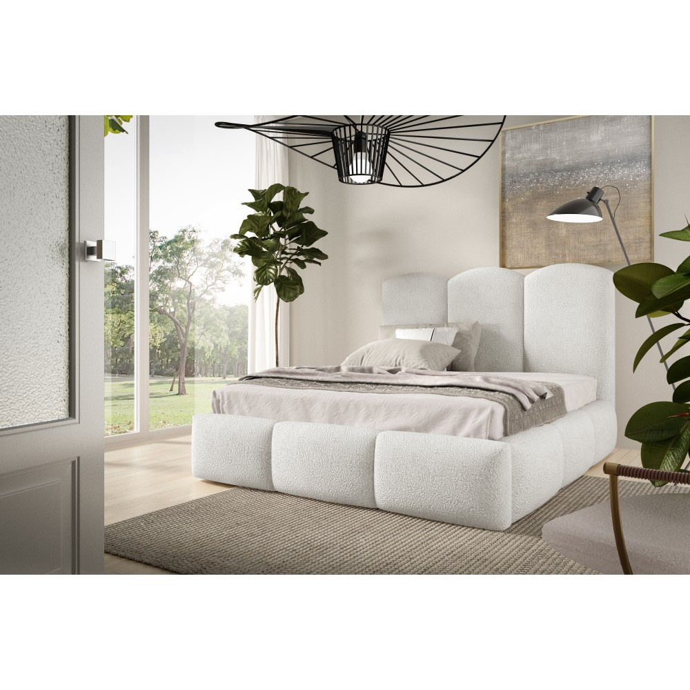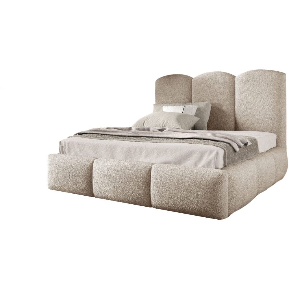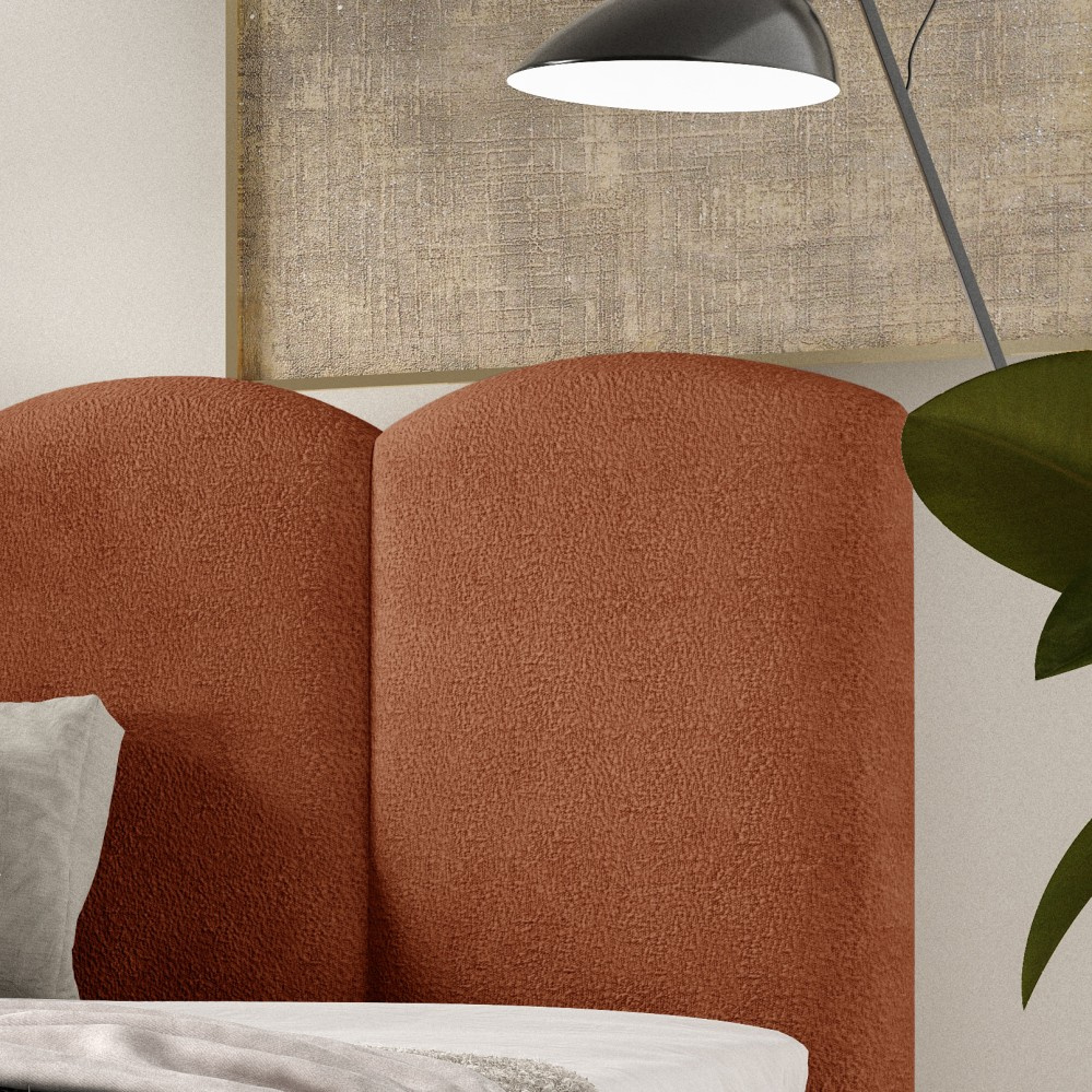 Stylová čalouněná postel BERO kombinuje moderní design s vysokou funkčností a je k dispozici v pěti šířkách: 120, 140, 160, 180 nebo 200 cm – ideální pro jednotlivce nebo páry, kteří si cení pohodlí a prostoru. Součástí dodávky je kovový rám s 34 flexibilními pružinovými lamelami, který zajišťuje stabilní spací plochu a je vybaven plynovými pružinami (1000 N), které usnadňují zvedání rámu. Pod ním se nachází velkoryse dimenzovaný úložný prostor na ložní prádlo, polštáře nebo sezónní textilie. Postel spočívá na decentních plastových kluzácích, které jí dodávají plovoucí vzhled a zároveň chrání podlahu. Dekorativní čalounění měkkou látkou buklé (baloo) dodává posteli moderní a útulný vzhled. Poznámka: Dodává se bez matrace. Montáž je nutné provést samostatně. Rozměry: Šířka: 142 / 162 / 182 / 202 / 222 cm Výška: 130 cm Hloubka: 220 cm Plocha na spaní: 140 / 160 / 180 / 200 x 200 cm.