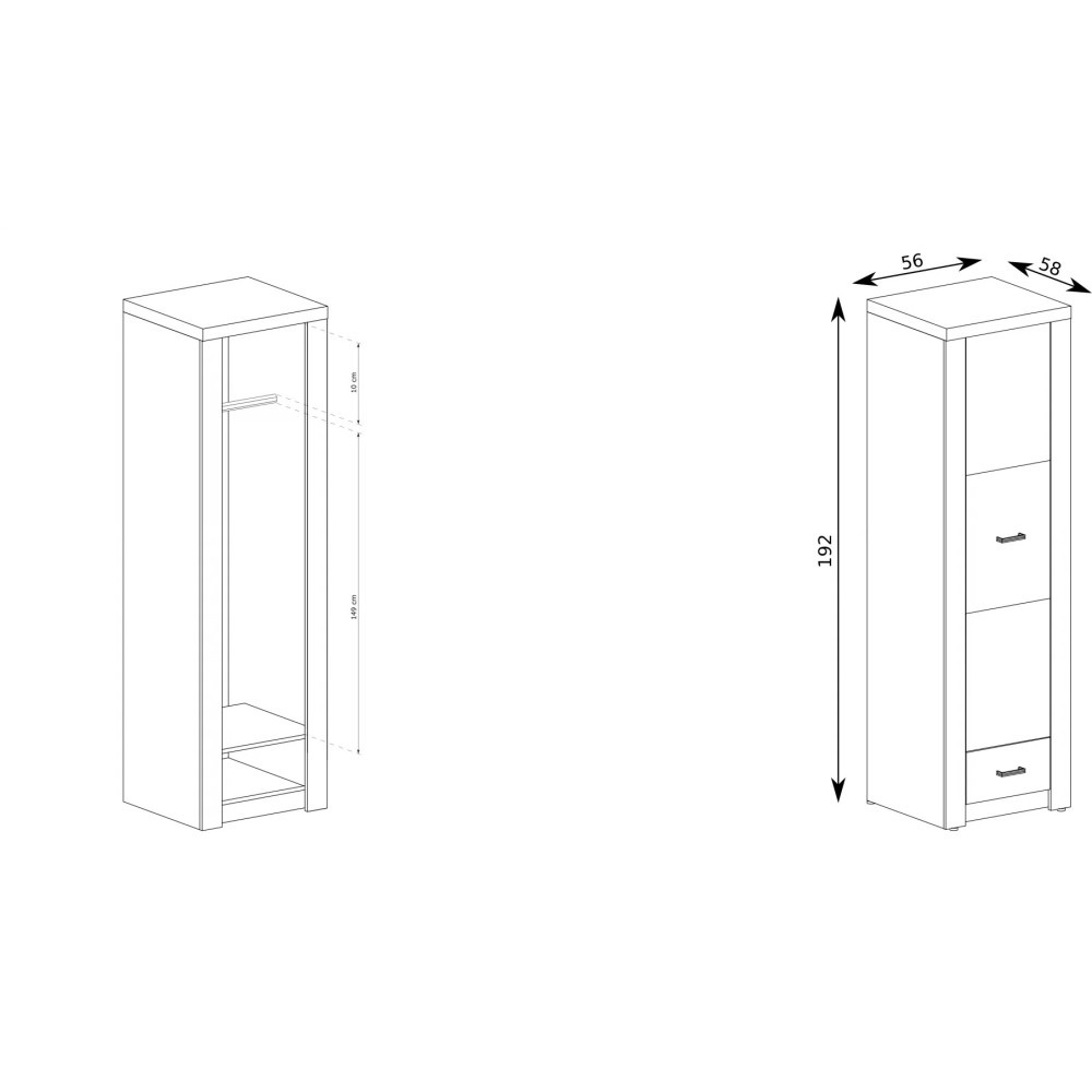 Šatní skříň POLIS s 1 zásuvkou a 1 dvířky