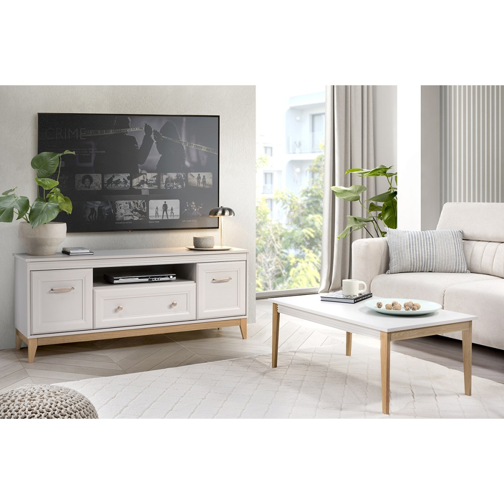 Šatní skříň CHARLOTT s 1 zásuvkou a 2 dveřmi kombinuje klasickou eleganci se skandinávskou lehkostí. S rozměry 92 x 54,5 x 193 cm nabízí dostatek prostoru na oblečení, boty nebo doplňky – ideální do ložnic, chodeb nebo pokojů pro hosty. Uvnitř skříň zaujme prostorným úložným prostorem, zatímco spodní zásuvka poskytuje další prostor pro menší předměty. Vysoce kvalitní materiály, pevná konstrukce a tichý zavírací mechanismus zpříjemňují každodenní používání. Kombinace jemné kašmírové barvy a přírodních dřevěných akcentů dodává tomuto kusu nábytku teplý a příjemný vzhled. Design dotvářejí precizně vyrobené kovové úchytky s mosazným vzhledem, které skříňce dodávají elegantní nádech. Skříňka CHARLOTT je nejen funkční, ale také vkusným doplňkem každého obytného prostoru – je všestranná a kombinovatelná s dalším nábytkem ze stejnojmenné kolekce. Rozměry: js_pdp_description__text-expander pl_text-expander--has-more pl_text-expander--expanded">