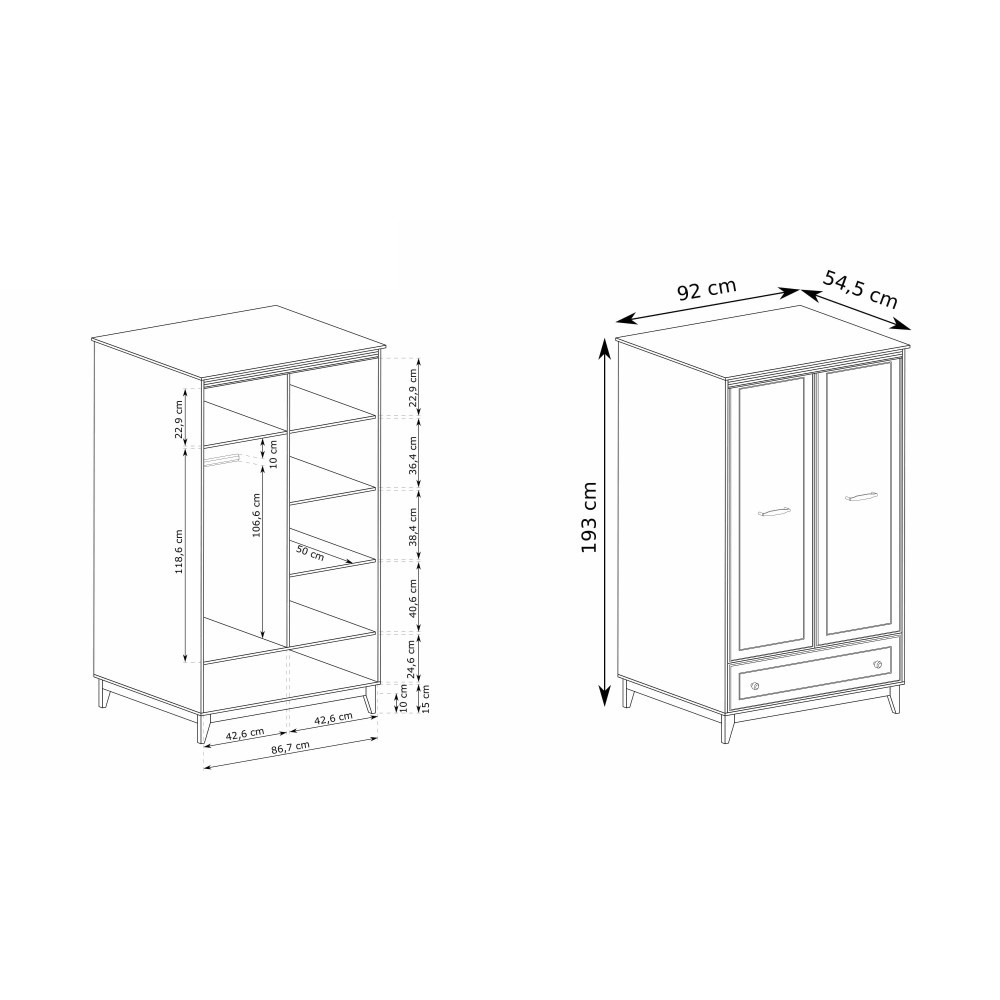 - 92 x 54,5 x 193 cm,