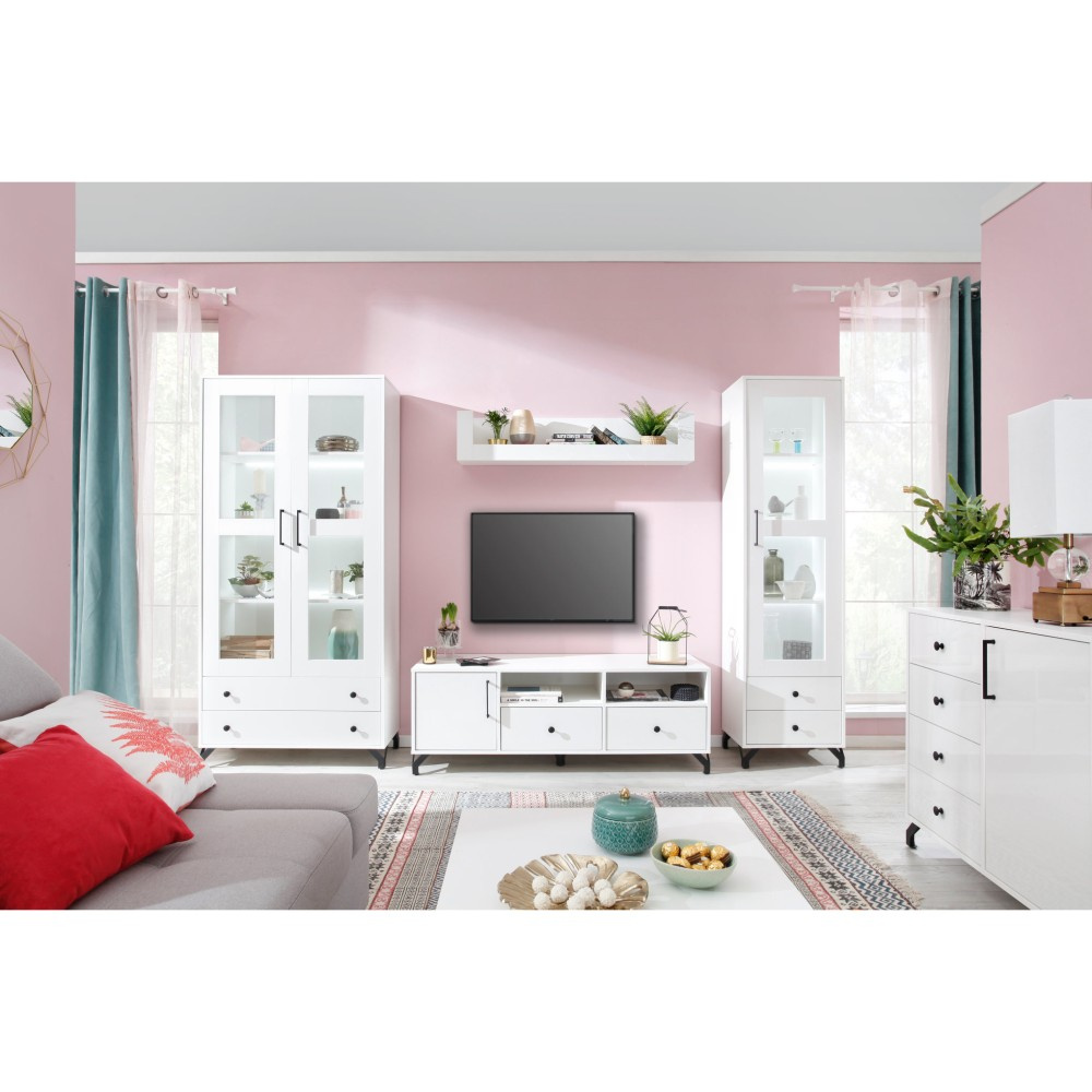 Šatní skříň BERGO s otočnými dveřmi kombinuje nadčasový moderní design s praktickou funkčností – perfektně se hodí do pokojů pro mládež, pokojů pro hosty nebo malých spacích prostor. Díky čistým liniím a elegantní barevné kombinaci matné bílé a vysoce lesklé bílé se harmonicky hodí do široké škály stylů interiérového designu. Dvoje dveře s panty: Umožňují snadný přístup do interiéru a umožňují organizované úložné prostory. Šatní tyč: Ideální pro zavěšení košil, šatů nebo sak, aby se zabránilo pomačkání. Praktická zásuvka: Ideální na spodní prádlo, doplňky nebo jiné drobné předměty. Elegantní barevná kombinace: Matná bílá a vysoce lesklá bílá vytvářejí moderní a svěží vzhled. Minimalistické černé kovové úchyty: Dodají stylové akcenty a zdůrazní design. Robustní kovové nohy: Zaručují stabilitu a dodávají skříňce lehký a vzdušný vzhled. Plovoucí vzhled.