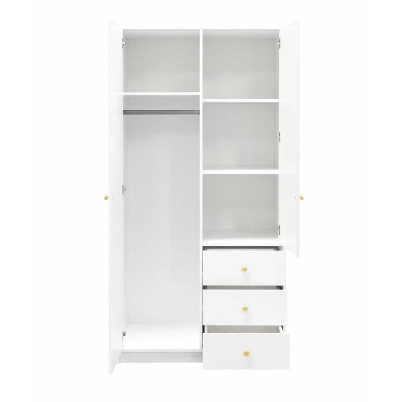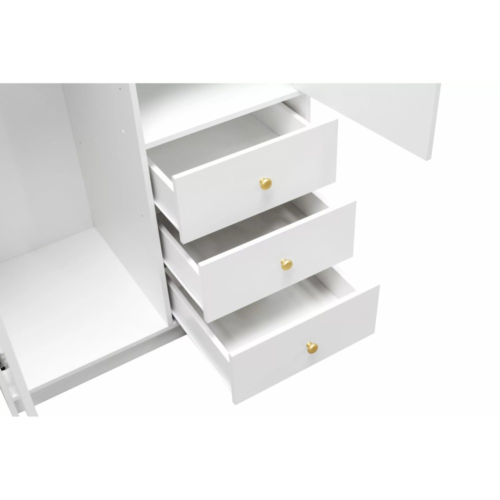 Šatní skříň SOLEA se 2 dveřmi a zrcadlem zaujme svým čistým designem, funkčním vnitřním uspořádáním a nadčasovými barevnými možnostmi. Díky svým kompaktním rozměrům je ideální do ložnic, pokojů pro teenagery nebo pokojů pro hosty a zároveň nabízí překvapivé množství úložného prostoru. 1 šatní věšák na bundy, košile a šaty; 4 prostorné police pro organizované uložení oblečení a textilií; 3 praktické zásuvky na ložní prádlo, doplňky nebo menší předměty; velké zrcadlo pro větší pohodlí a vizuální přehled. Rozšíření místnosti