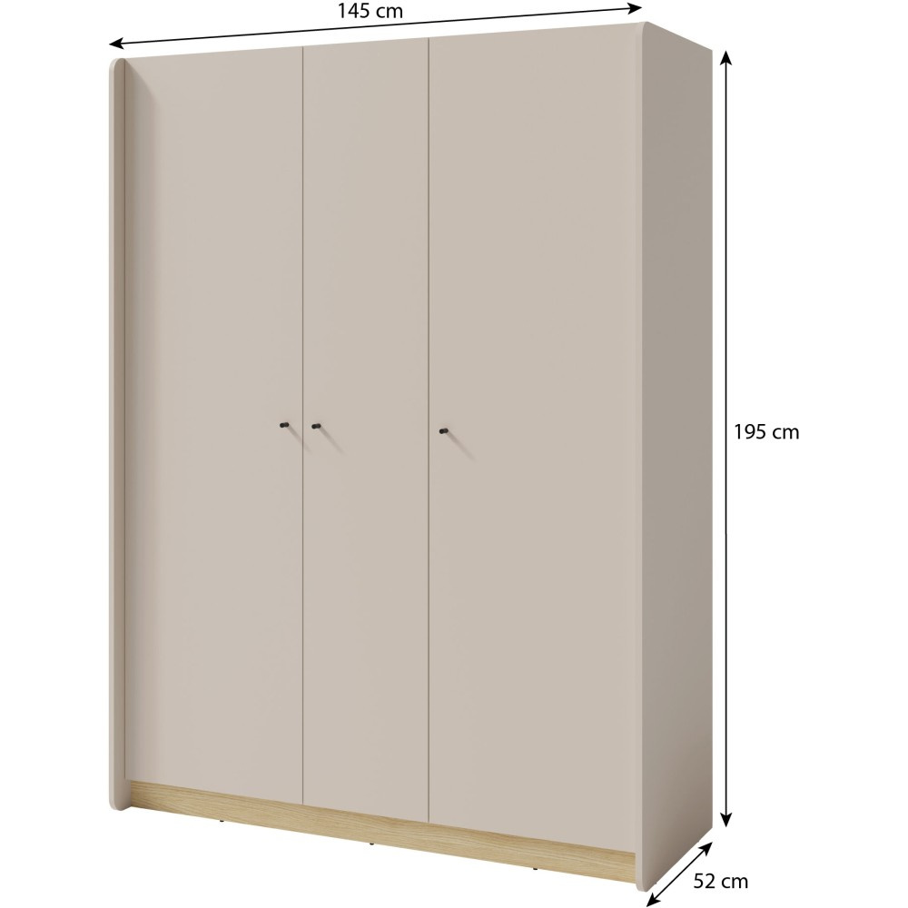 Šatní skříň ALEX kombinuje moderní design s chytrým konceptem úložného prostoru. Díky kompaktním rozměrům 145 × 52 × 195 cm je ideální do pokojů pro teenagery, bytů nebo moderních ložnic, kde stylově vytvoří pořádek. Troje otočné dveře – za dvířky se skrývá velkorysý úložný prostor, kde lze úhledně uložit oblečení, doplňky a předměty denní potřeby. Šatní tyč – ideální pro zavěšení košil, halenek, šatů nebo bund bez pomačkání. 10 polic – nabízí všestranné možnosti uložení triček, svetrů, kalhot nebo krabic a lze je používat samostatně. Dvě moderní barevné varianty – vyberte si mezi trendy eukalyptovým odstínem, který do místnosti vnáší svěžest, nebo elegantní pískově béžovou, která vytváří teplou, harmonickou atmosféru. Minimalistické černé úchytky – dodávají jemné akcenty a zdůrazňují moderní charakter skříně. Moderní styl – čistý design se perfektně hodí do moderních interiérů a lze jej kombinovat s různým nábytkem. Šatní skříň ALEX s otočnými dveřmi zaujme svou funkčností a estetickým designem. Nejenže nabízí dostatek prostoru, ale jeho barevné variace a moderní detaily z něj činí skutečný poutač v každém obytném prostoru.