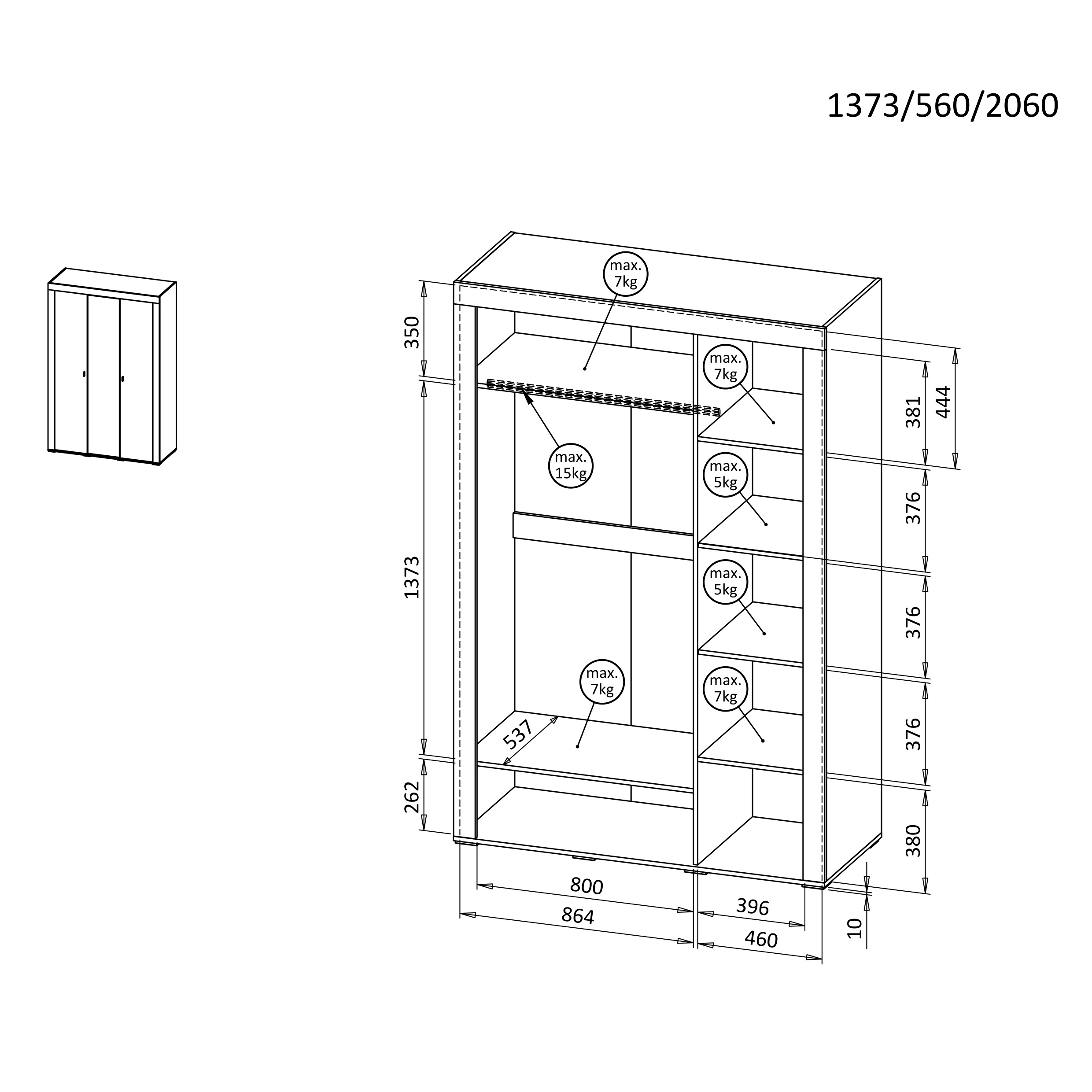 - praktický interiér – šatní tyč a sedm polic poskytují pohodlné ukládání věcí,
