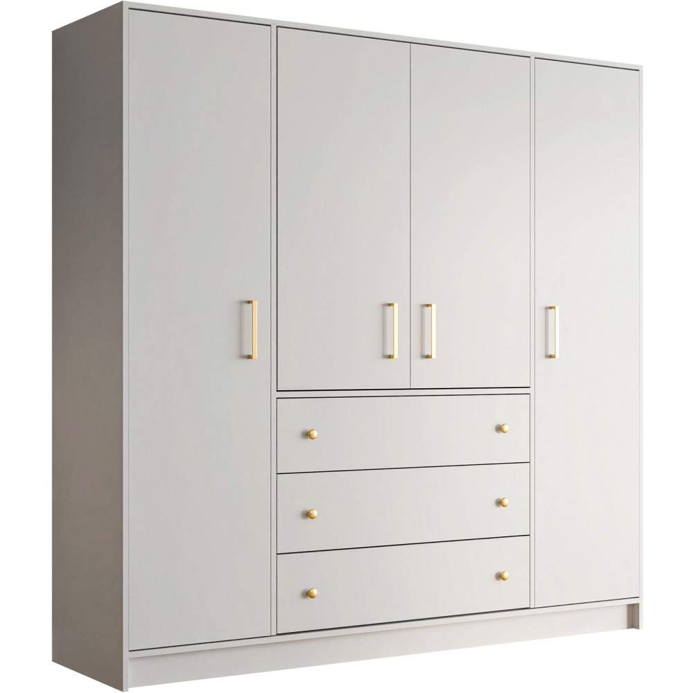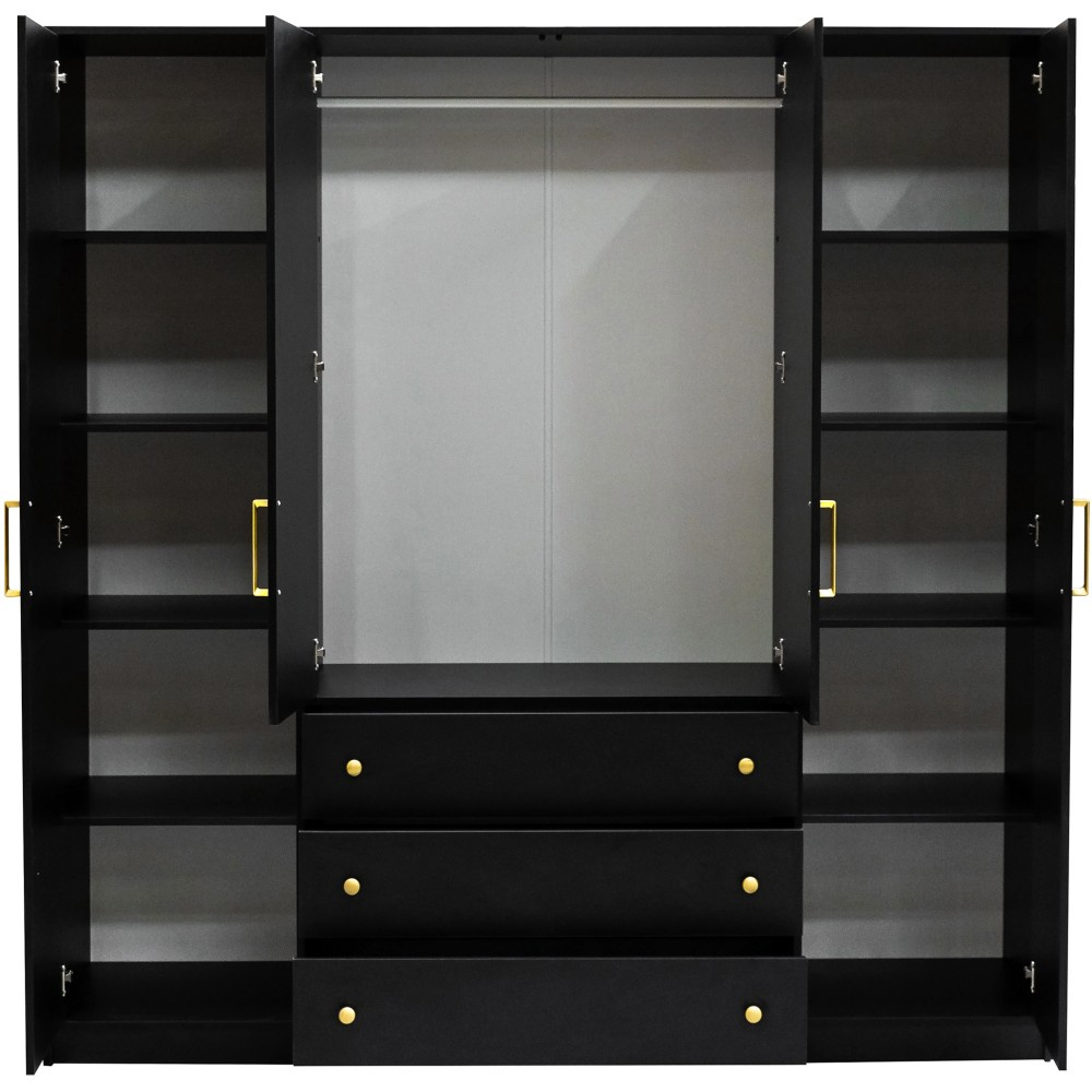 Šatní skříň RILO s výklopnými dveřmi kombinuje nadčasovou eleganci s vysokou funkčností. Díky čistým liniím, stylovým barevným variantám a zlatým úchytkám se stane sofistikovaným ústředním bodem v každé ložnici nebo šatně. Dobře navržené vnitřní uspořádání nabízí dostatek prostoru pro oblečení a doplňky – ideální pro ty, kteří oceňují pořádek a styl. 1 šatní věšák – ideální na košile, šaty, bundy a cokoli dalšího, co je třeba zavěsit. Tři prostorné zásuvky – ideální na spodní prádlo, doplňky nebo menší kusy oblečení. Osm prostorných polic – dostatek úložného prostoru na svetry, trička, ručníky nebo krabice. Zlaté úchytky - Dodávají skříňce elegantní a moderní nádech.