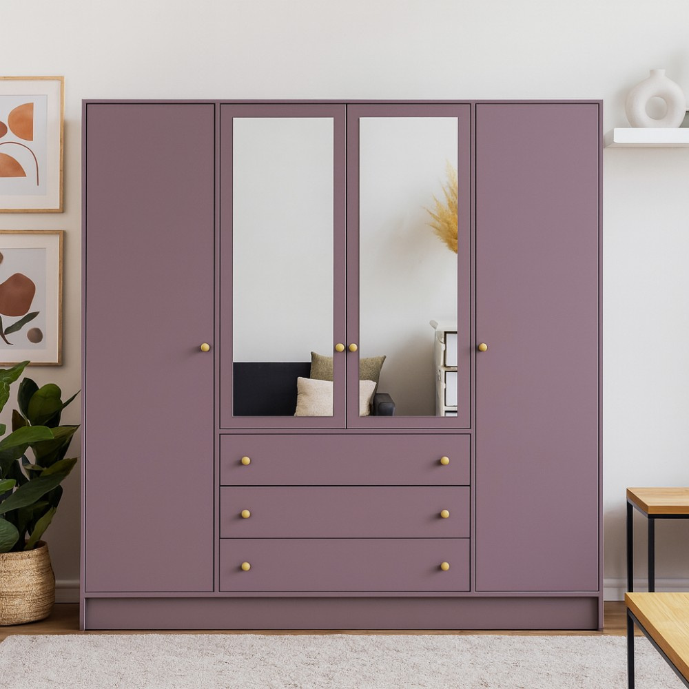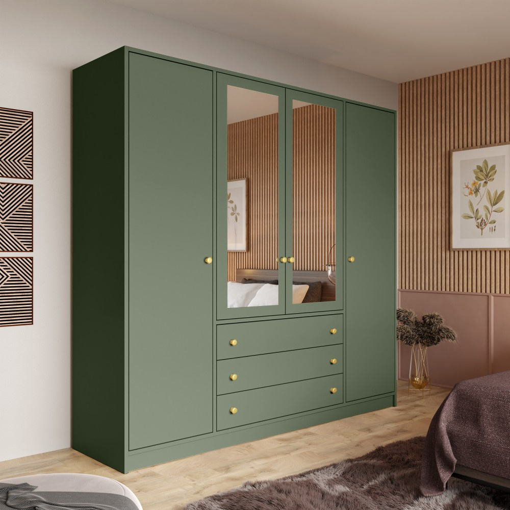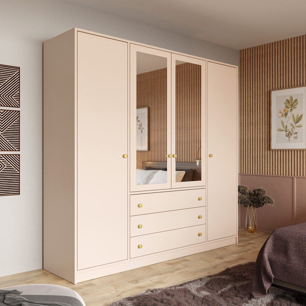 Šatní skříň Solea Lux se 4 dveřmi a zrcadlem