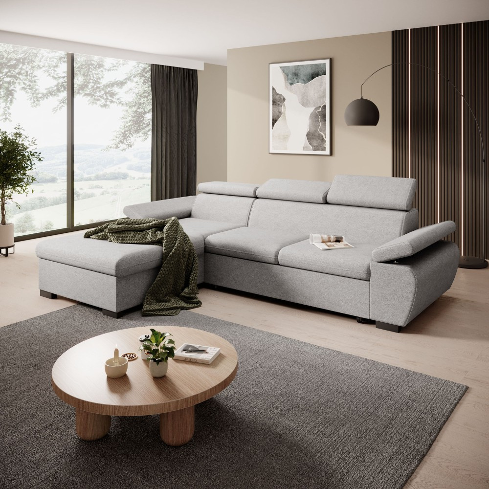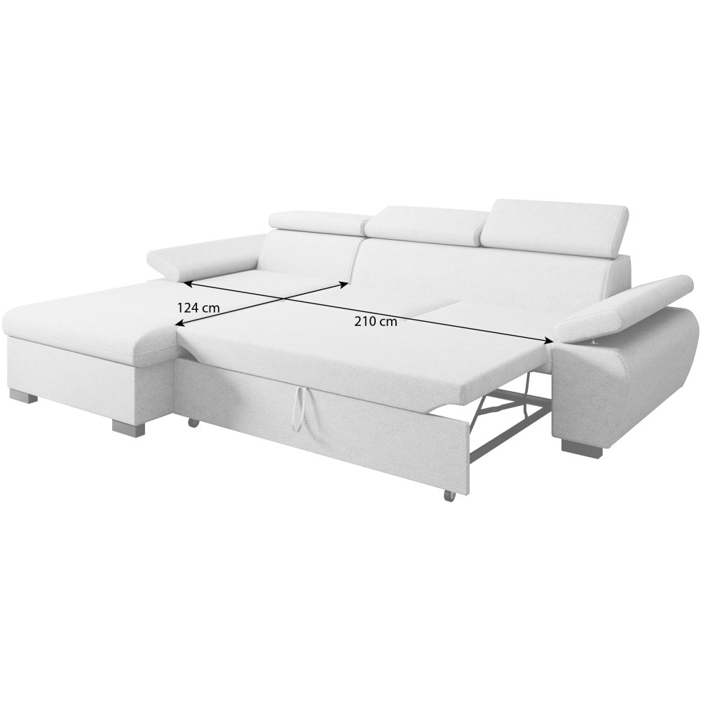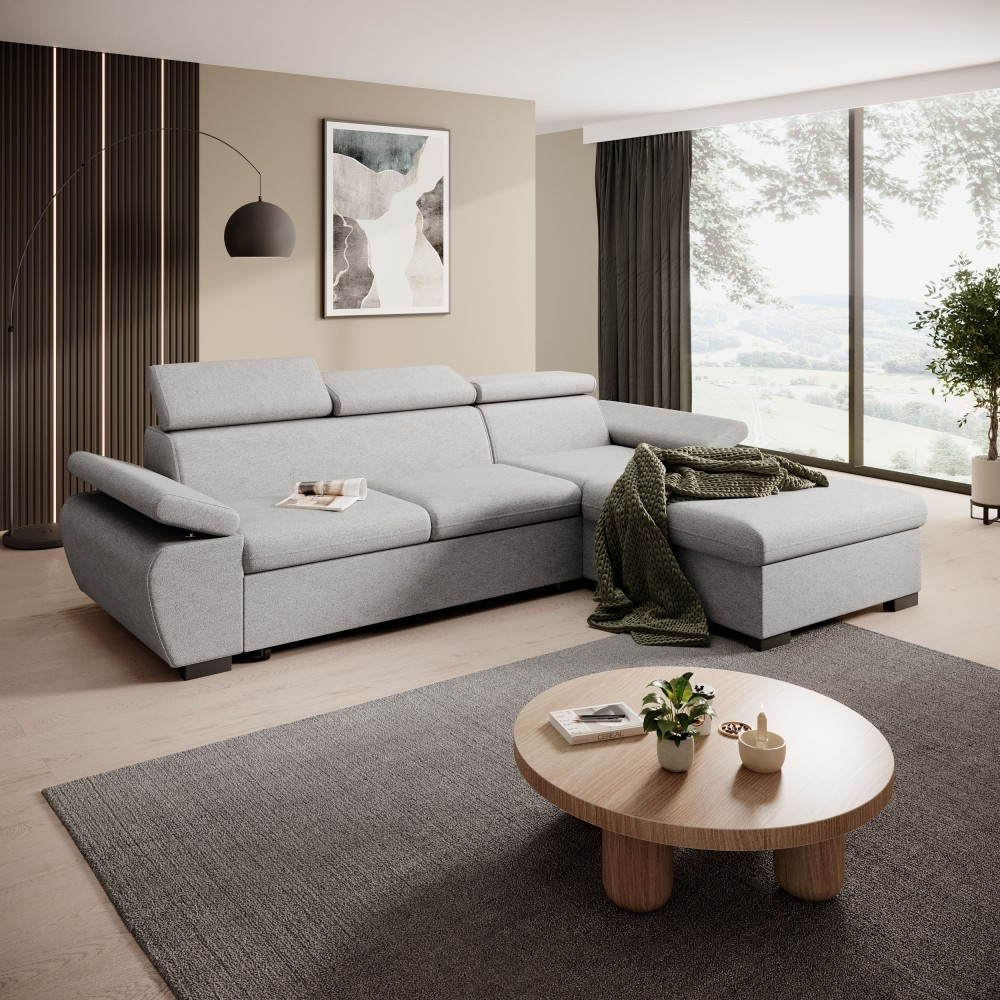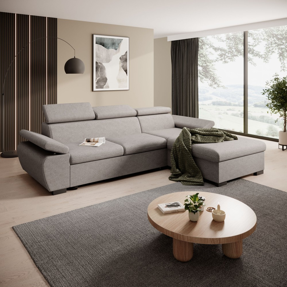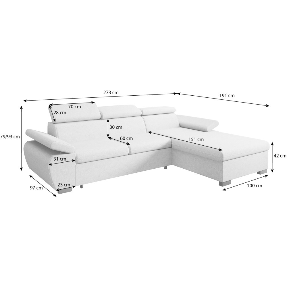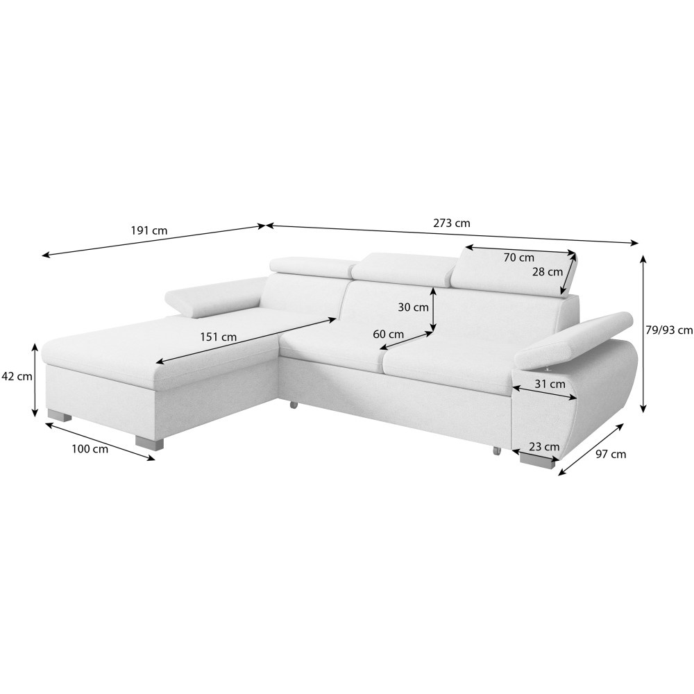 Rohová pohovka COCO je perfektní volbou pro každého, kdo chce ve svém obývacím pokoji nejen styl, ale také maximální pohodlí a praktické funkce. Tato pohovka zaujme svým elegantním designem, inteligentními prvky a pohodlnou polohovací plochou – ideální do moderních obytných prostor. Zvláštním lákadlem je integrovaná funkce delfínového spánku: Pohovka se během několika jednoduchých kroků promění v prostornou spací plochu o rozměrech 210 x 124 cm – ideální pro hosty nebo relaxační filmové večery. Pro ještě větší pohodlí lze nastavitelné opěrky hlavy a čalouněné loketní opěrky individuálně přizpůsobit vašim potřebám. To vám zajistí, že si vždy budete užívat ergonomickou a pohodlnou polohu k sezení nebo ležení. Integrovaný úložný prostor nabízí praktický úložný prostor pro přikrývky, polštáře nebo jiné předměty, takže váš obývací pokoj bude uklizený a uklizený. Díky volitelnému taburetu – pravému nebo levému, v závislosti na objednávce – lze pohovku flexibilně přizpůsobit jakémukoli uspořádání místnosti. Rozměry: Šířka: 273 cm Výška: 93 cm Hloubka: 191 cm Výška sedáku: 42 cm Hloubka sedáku: 60 cm Plocha na spaní: 124 x 210 cm Upozorňujeme, že všechny rozměry čalouněného nábytku mají toleranci +/- 2 %. Snažíme se zobrazit všechny barvy co nejpřesněji. Vezměte však prosím na vědomí, že v důsledku nastavení monitoru a grafické karty se mohou vyskytnout drobné odchylky. Toto není oprávněný důvod k reklamaci. Navíc se barvy různých sérií látek mohou mírně lišit. Dodání je možné na adresy v Německu. Nedoručujeme na ostrovy ani do horských oblastí. Disponujeme vlastní bezpečnou a rychlou přepravní službou. O datu dodání budete předem informováni.