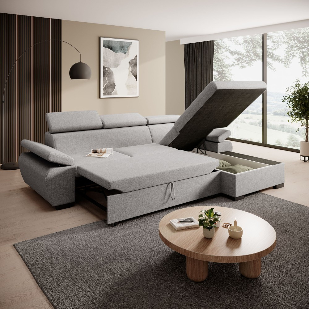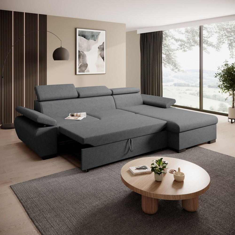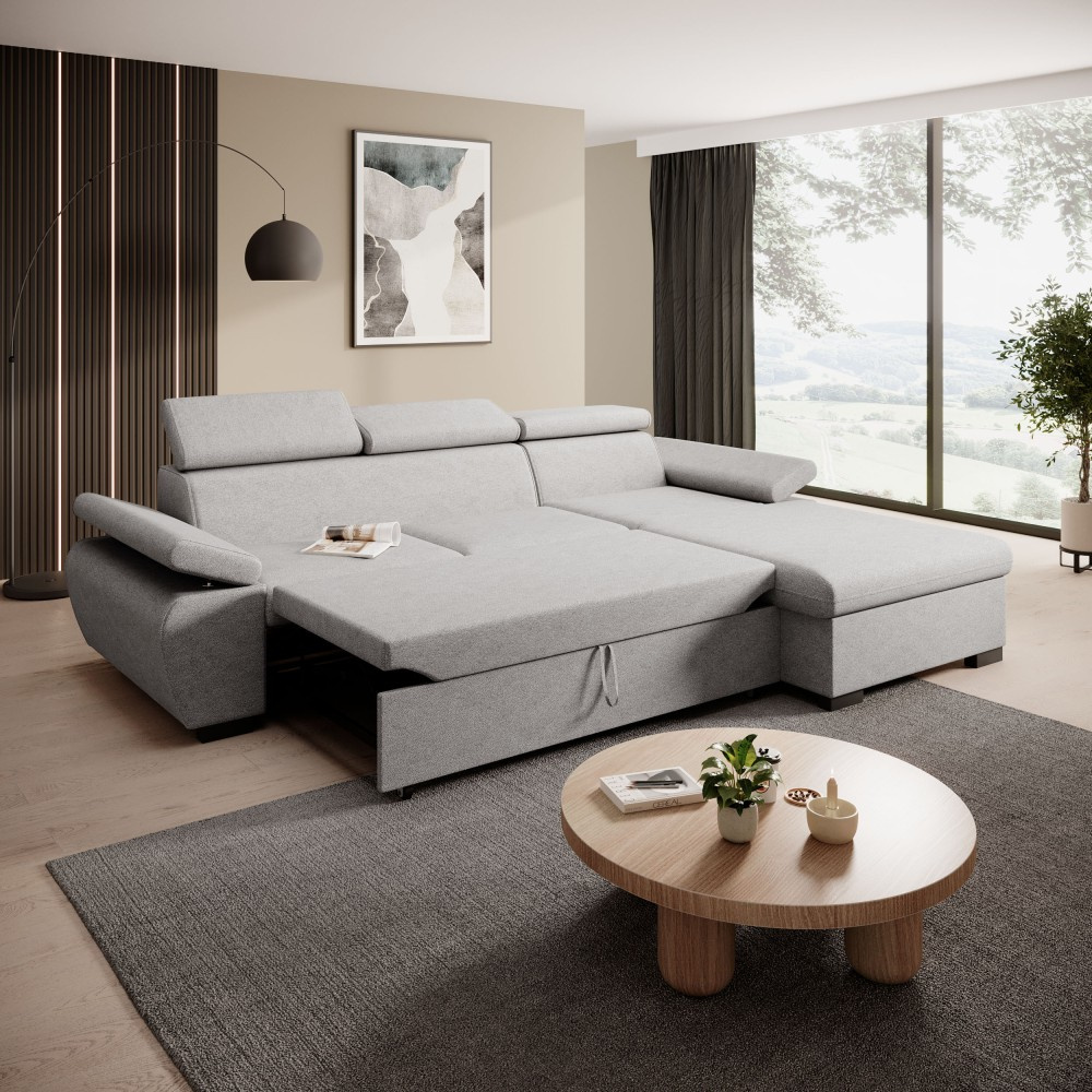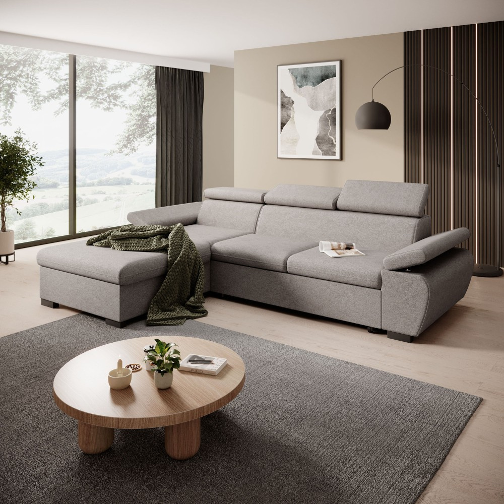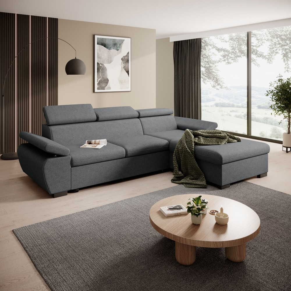 Rohová pohovka COCO je perfektní volbou pro každého, kdo chce ve svém obývacím pokoji nejen styl, ale také maximální pohodlí a praktické funkce. Tato pohovka zaujme svým elegantním designem, inteligentními prvky a pohodlnou polohovací plochou – ideální do moderních obytných prostor. Zvláštním lákadlem je integrovaná funkce delfínového spánku: Pohovka se během několika jednoduchých kroků promění v prostornou spací plochu o rozměrech 210 x 124 cm – ideální pro hosty nebo relaxační filmové večery. Pro ještě větší pohodlí lze nastavitelné opěrky hlavy a čalouněné loketní opěrky individuálně přizpůsobit vašim potřebám. To vám zajistí, že si vždy budete užívat ergonomickou a pohodlnou polohu k sezení nebo ležení. Integrovaný úložný prostor nabízí praktický úložný prostor pro přikrývky, polštáře nebo jiné předměty, takže váš obývací pokoj bude uklizený a uklizený. Díky volitelnému taburetu – pravému nebo levému, v závislosti na objednávce – lze pohovku flexibilně přizpůsobit jakémukoli uspořádání místnosti. Rozměry: Šířka: 273 cm Výška: 93 cm Hloubka: 191 cm Výška sedáku: 42 cm Hloubka sedáku: 60 cm Plocha na spaní: 124 x 210 cm Upozorňujeme, že všechny rozměry čalouněného nábytku mají toleranci +/- 2 %. Snažíme se zobrazit všechny barvy co nejpřesněji. Vezměte však prosím na vědomí, že v důsledku nastavení monitoru a grafické karty se mohou vyskytnout drobné odchylky. Toto není oprávněný důvod k reklamaci. Navíc se barvy různých sérií látek mohou mírně lišit. Dodání je možné na adresy v Německu. Nedoručujeme na ostrovy ani do horských oblastí. Disponujeme vlastní bezpečnou a rychlou přepravní službou. O datu dodání budete předem informováni.