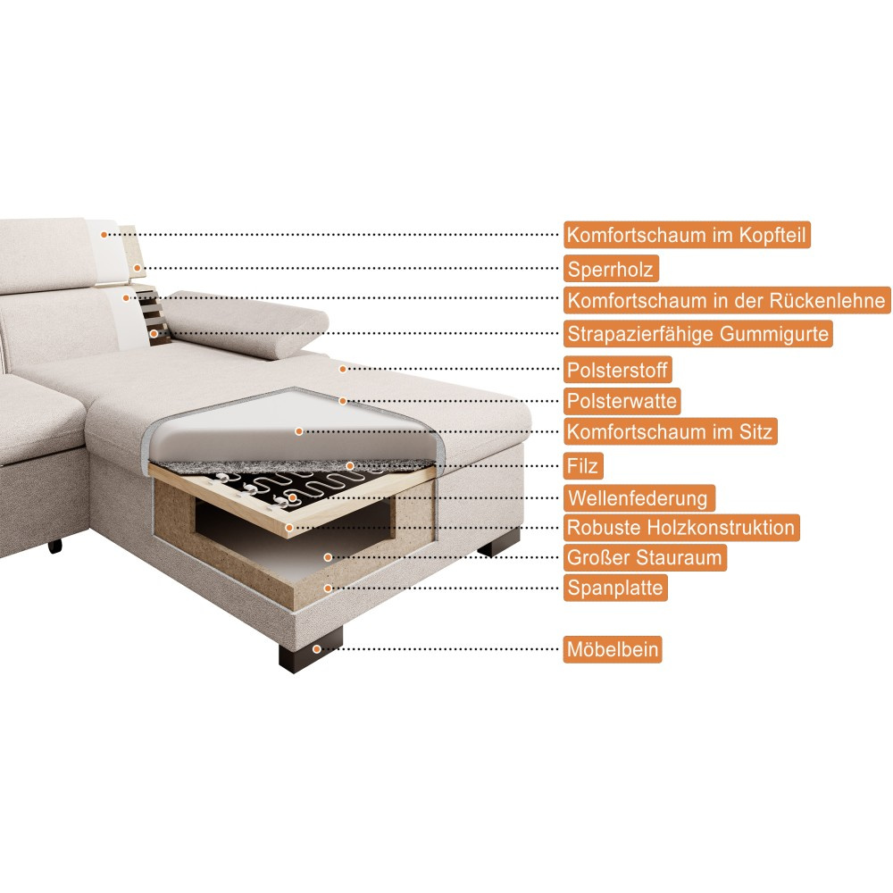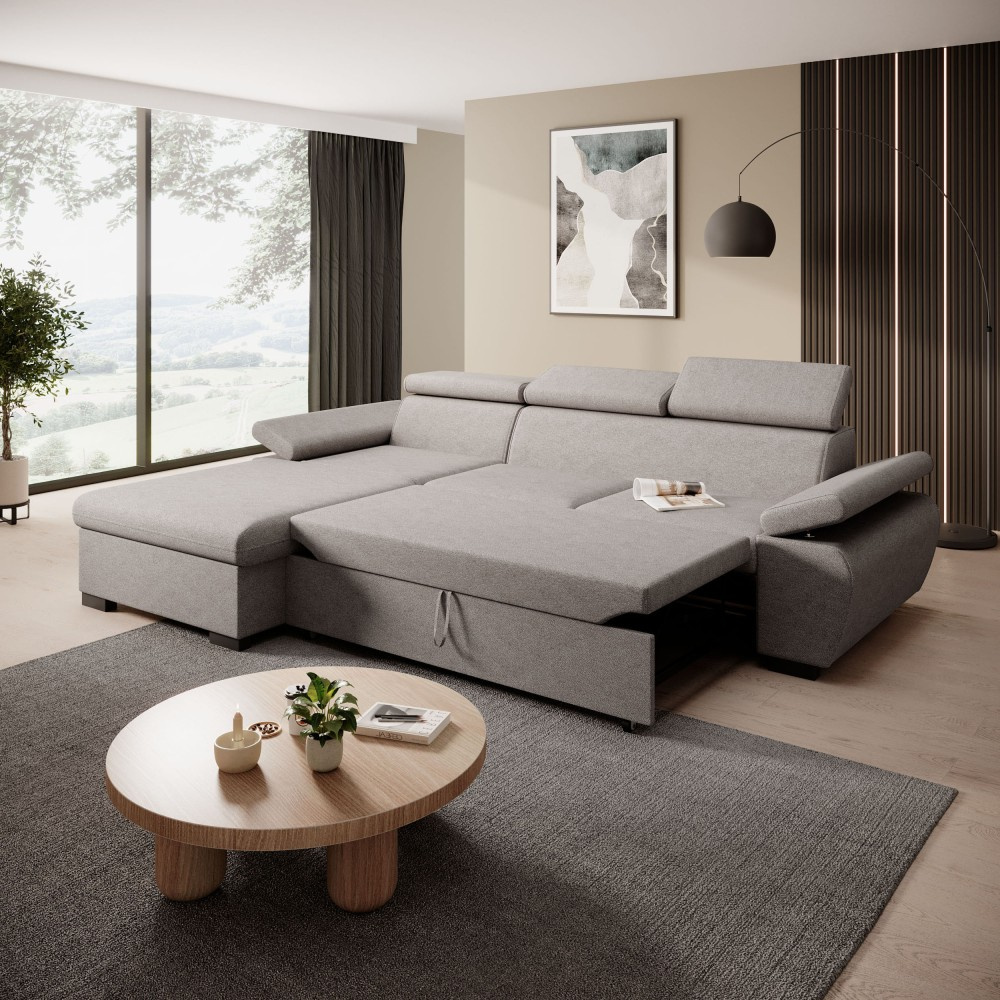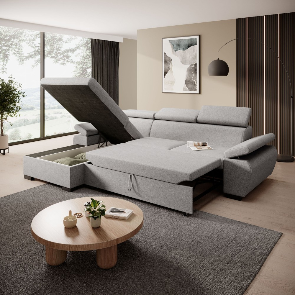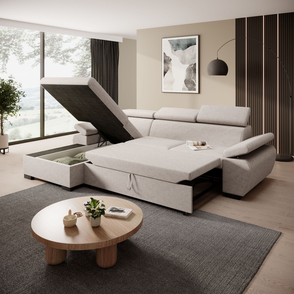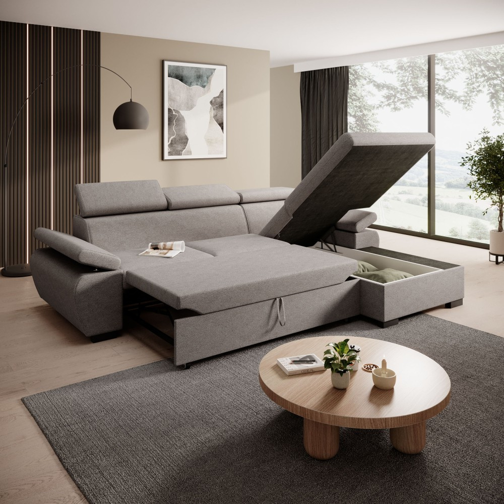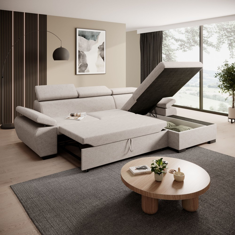 Rohová pohovka COCO je perfektní volbou pro každého, kdo chce ve svém obývacím pokoji nejen styl, ale také maximální pohodlí a praktické funkce. Tato pohovka zaujme svým elegantním designem, inteligentními prvky a pohodlnou polohovací plochou – ideální do moderních obytných prostor. Zvláštním lákadlem je integrovaná funkce delfínového spánku: Pohovka se během několika jednoduchých kroků promění v prostornou spací plochu o rozměrech 210 x 124 cm – ideální pro hosty nebo relaxační filmové večery. Pro ještě větší pohodlí lze nastavitelné opěrky hlavy a čalouněné loketní opěrky individuálně přizpůsobit vašim potřebám. To vám zajistí, že si vždy budete užívat ergonomickou a pohodlnou polohu k sezení nebo ležení. Integrovaný úložný prostor nabízí praktický úložný prostor pro přikrývky, polštáře nebo jiné předměty, takže váš obývací pokoj bude uklizený a uklizený. Díky volitelnému taburetu – pravému nebo levému, v závislosti na objednávce – lze pohovku flexibilně přizpůsobit jakémukoli uspořádání místnosti. Rozměry: Šířka: 273 cm Výška: 93 cm Hloubka: 191 cm Výška sedáku: 42 cm Hloubka sedáku: 60 cm Plocha na spaní: 124 x 210 cm Upozorňujeme, že všechny rozměry čalouněného nábytku mají toleranci +/- 2 %. Snažíme se zobrazit všechny barvy co nejpřesněji. Vezměte však prosím na vědomí, že v důsledku nastavení monitoru a grafické karty se mohou vyskytnout drobné odchylky. Toto není oprávněný důvod k reklamaci. Navíc se barvy různých sérií látek mohou mírně lišit. Dodání je možné na adresy v Německu. Nedoručujeme na ostrovy ani do horských oblastí. Disponujeme vlastní bezpečnou a rychlou přepravní službou. O datu dodání budete předem informováni.
