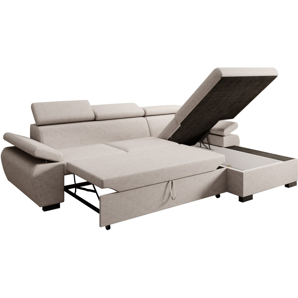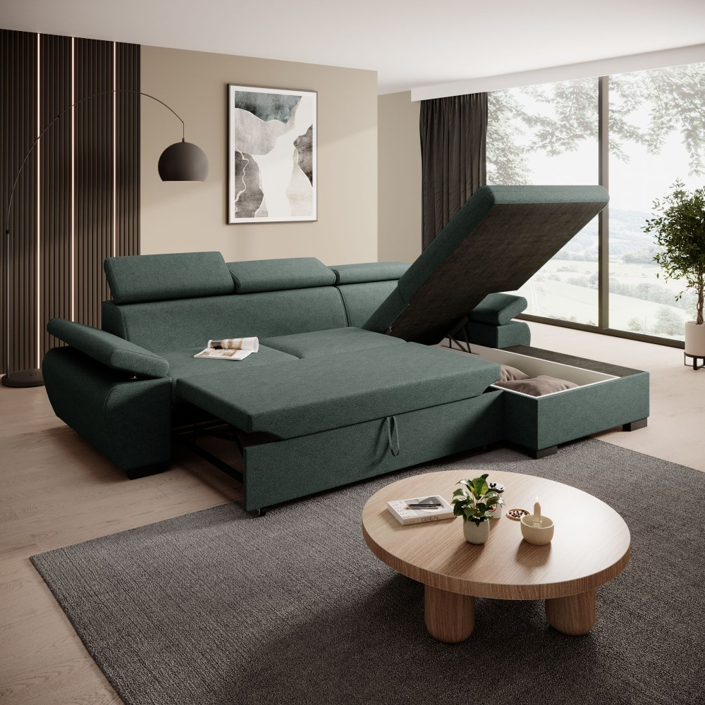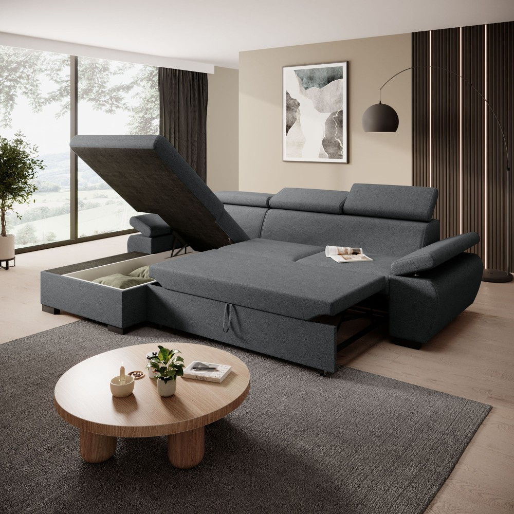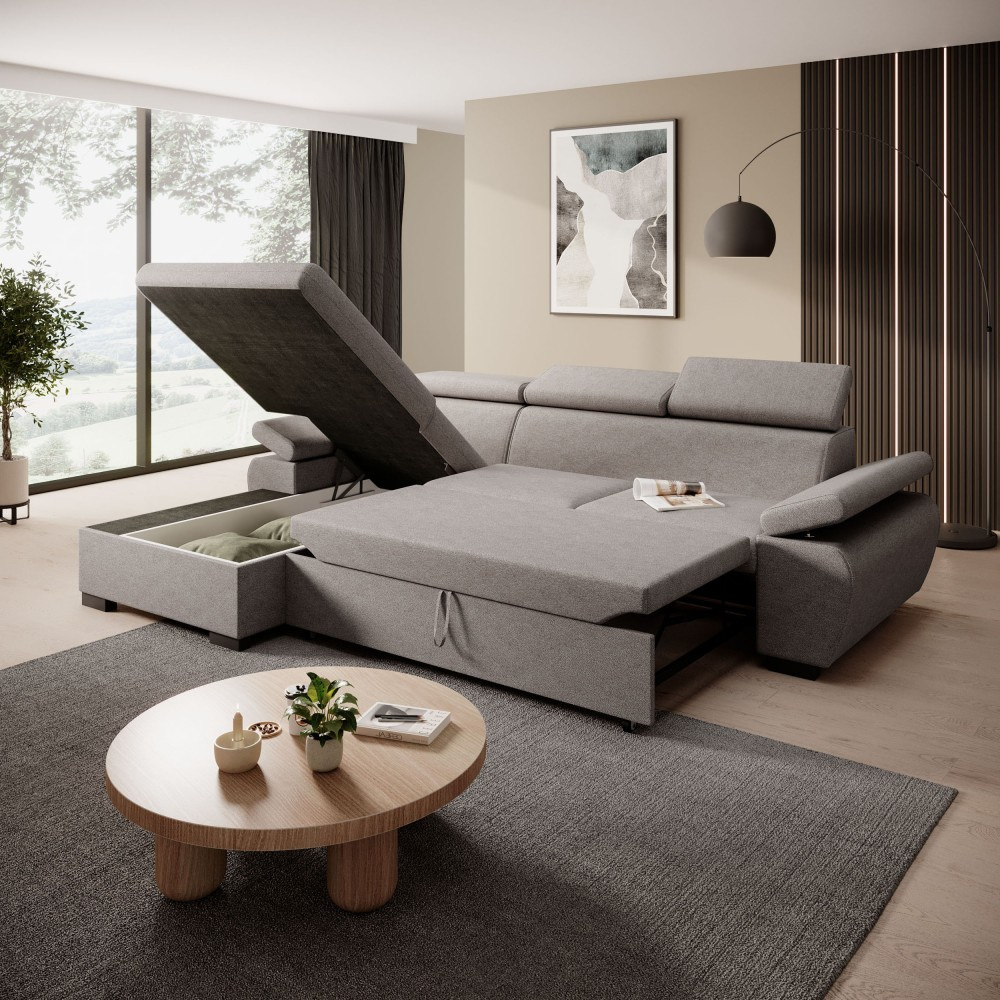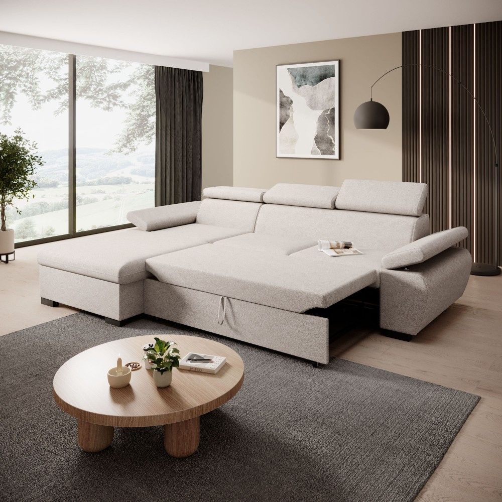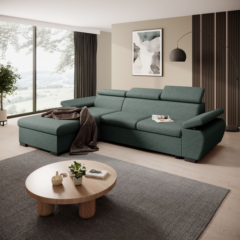 Rohová pohovka COCO je perfektní volbou pro každého, kdo chce ve svém obývacím pokoji nejen styl, ale také maximální pohodlí a praktické funkce. Tato pohovka zaujme svým elegantním designem, inteligentními prvky a pohodlnou polohovací plochou – ideální do moderních obytných prostor. Zvláštním lákadlem je integrovaná funkce delfínového spánku: Pohovka se během několika jednoduchých kroků promění v prostornou spací plochu o rozměrech 210 x 124 cm – ideální pro hosty nebo relaxační filmové večery. Pro ještě větší pohodlí lze nastavitelné opěrky hlavy a čalouněné loketní opěrky individuálně přizpůsobit vašim potřebám. To vám zajistí, že si vždy budete užívat ergonomickou a pohodlnou polohu k sezení nebo ležení. Integrovaný úložný prostor nabízí praktický úložný prostor pro přikrývky, polštáře nebo jiné předměty, takže váš obývací pokoj bude uklizený a uklizený. Díky volitelnému taburetu – pravému nebo levému, v závislosti na objednávce – lze pohovku flexibilně přizpůsobit jakémukoli uspořádání místnosti. Rozměry: Šířka: 273 cm Výška: 93 cm Hloubka: 191 cm Výška sedáku: 42 cm Hloubka sedáku: 60 cm Plocha na spaní: 124 x 210 cm Upozorňujeme, že všechny rozměry čalouněného nábytku mají toleranci +/- 2 %. Snažíme se zobrazit všechny barvy co nejpřesněji. Vezměte však prosím na vědomí, že v důsledku nastavení monitoru a grafické karty se mohou vyskytnout drobné odchylky. Toto není oprávněný důvod k reklamaci. Navíc se barvy různých sérií látek mohou mírně lišit. Dodání je možné na adresy v Německu. Nedoručujeme na ostrovy ani do horských oblastí. Disponujeme vlastní bezpečnou a rychlou přepravní službou. O datu dodání budete předem informováni.