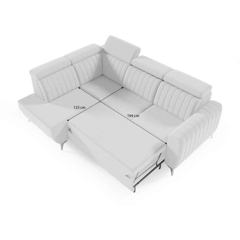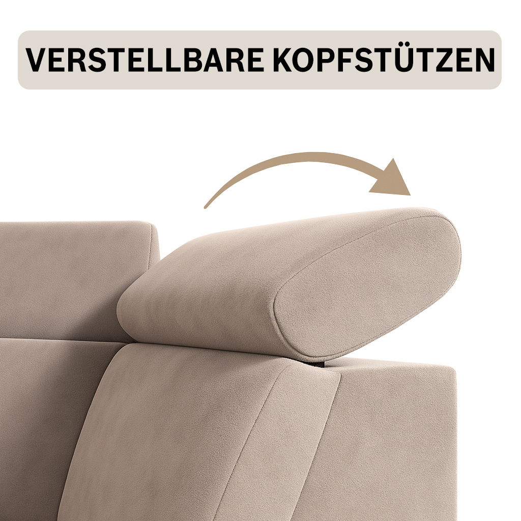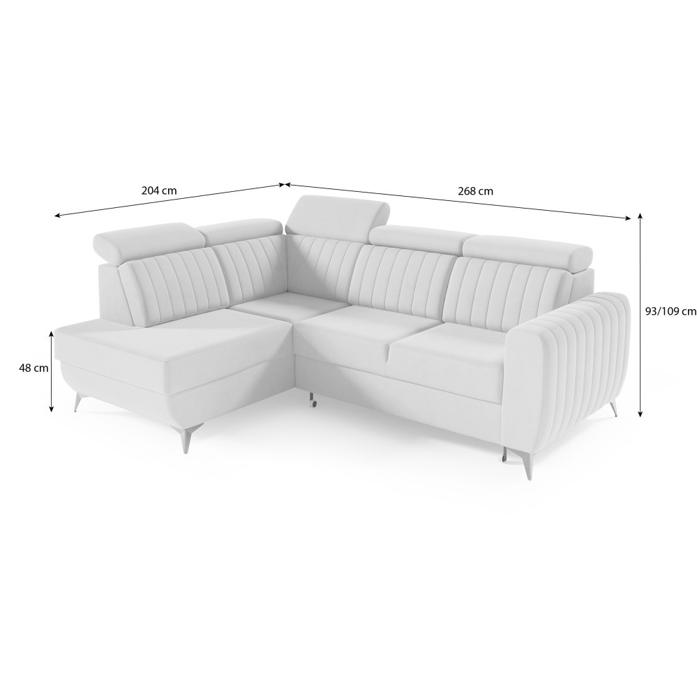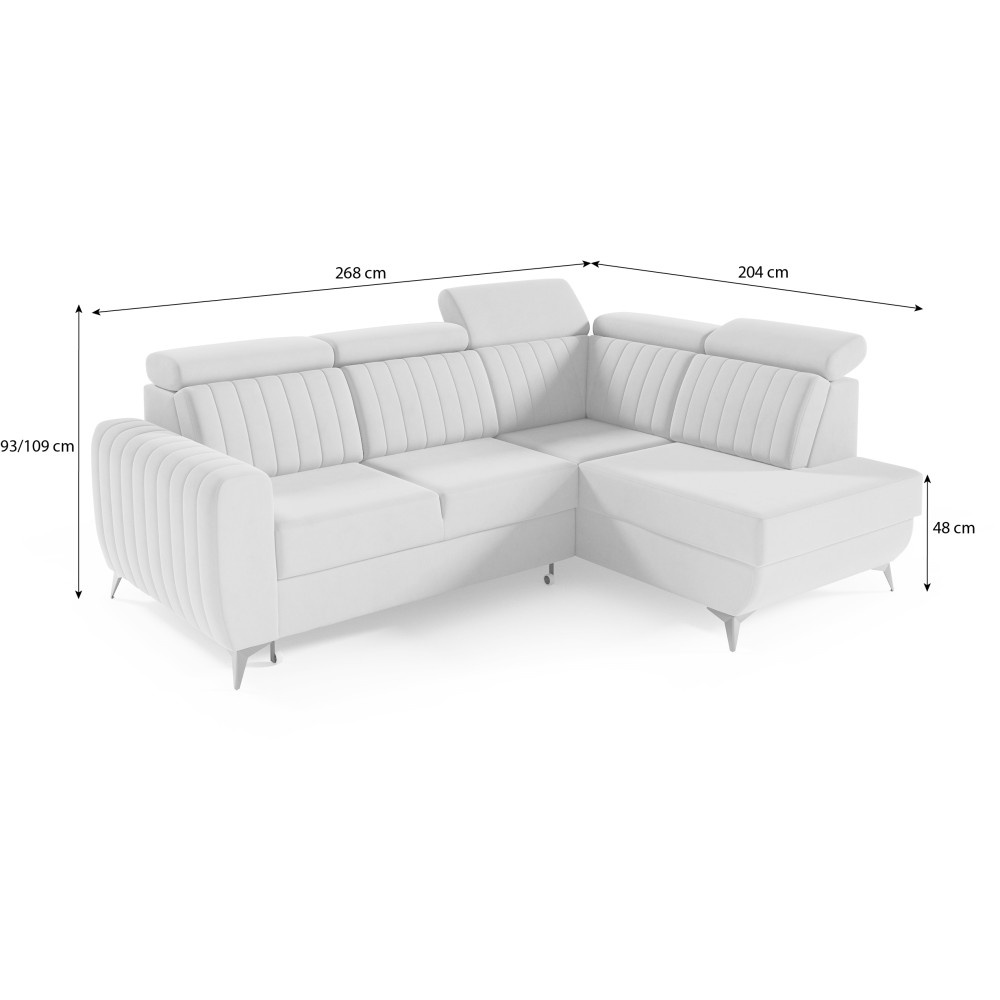 Rohová pohovka CONNOR II kombinuje moderní design, maximální pohodlí při sezení a chytré funkce. Díky svým velkorysým rozměrům (268 x 204 x 109 cm) nabízí dostatek prostoru pro celou rodinu a zaručeně se stane ústředním bodem vašeho obývacího pokoje. Pohodlné sezení - Sedák je vybaven vlnitými pružinami typu B a vysoce elastickou pěnou. To zajišťuje optimální oporu, odolnost a pohodlné sezení – ideální pro relaxační večery. Funkce spaní a další úložný prostor - Díky integrované funkci spaní lze pohovku během chvilky proměnit v pohodlnou postel. Velký úložný prostor Přihrádka nabízí praktický úložný prostor pro polštáře, přikrývky nebo ložní prádlo. Mechanismus delfín umožňuje obzvláště snadné a rychlé rozložení pohovky. Moderní design a vysoce kvalitní materiály - Elegantní velurová látka Noel dodává pohovce stylový vzhled a příjemně měkký pocit. Robustní černé nohy zdůrazňují moderní design a zajišťují bezpečné uchycení. Individuálně přizpůsobitelné - Ať už je to levá nebo pravá verze – rohová pohovka se flexibilně přizpůsobí vašemu domovu. Díky tomu, že je volně stojící a opěradlo je čalouněno hlavní látkou, ji můžete volně umístit v místnosti. Rozměry: Šířka: 268 cm Výška: 109 cm Hloubka: 204 cm Výška sedáku: 48 cm Plocha na spaní: 123 x 194 cm NOEL je moderní velurová látka s velmi měkkým, příjemným povrchem. Díky jemnému lesku a nepravidelné struktuře látka mění barvu v závislosti na světle. Upozorňujeme, že všechny rozměry čalouněného nábytku mají toleranci +/- 2 %. Snažíme se zobrazit barvy co nejpřesněji. Upozorňujeme však, že se mohou vyskytnout drobné odchylky v důsledku monitoru a grafické karty. nastavení. Toto není oprávněný důvod k reklamaci. Navíc se barvy z různých sérií látek mohou mírně lišit. Dodání je možné na adresy v Německu. Nedoručujeme na ostrovy ani do horských oblastí. Disponujeme vlastní bezpečnou a rychlou přepravní službou. O datu dodání budete předem informováni.