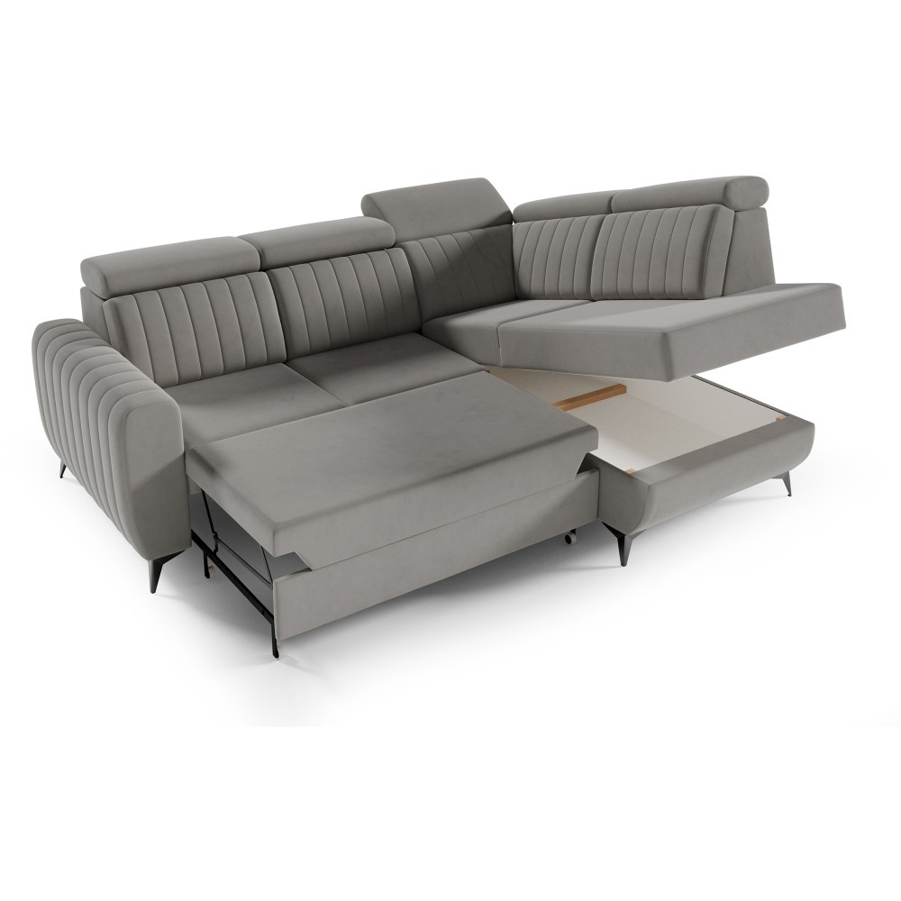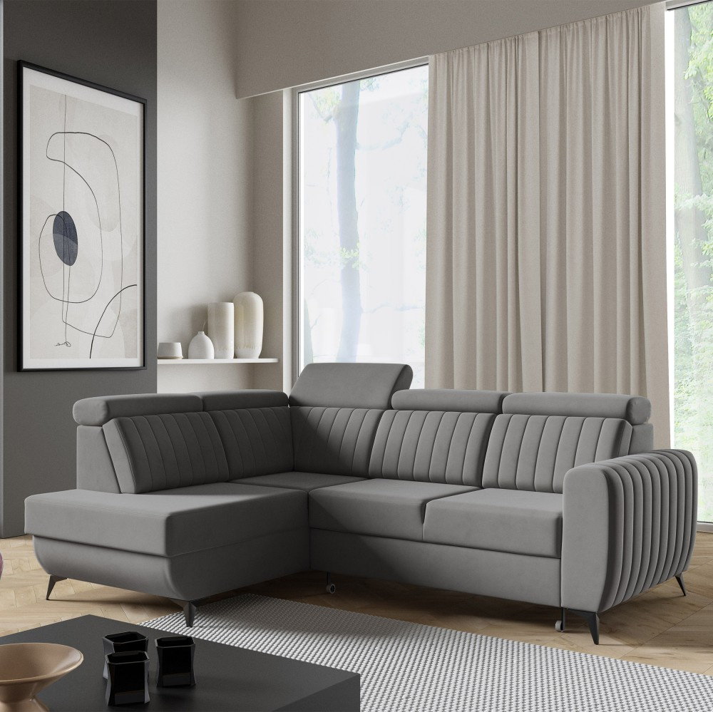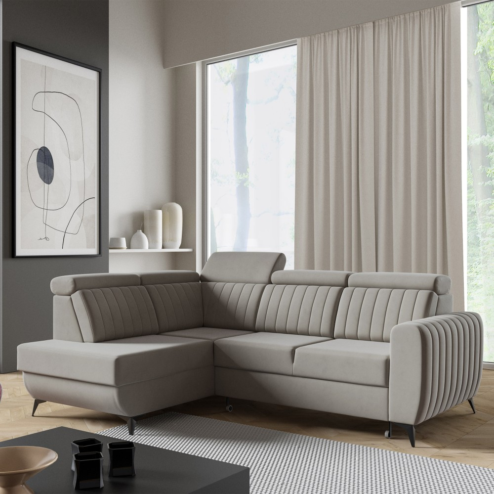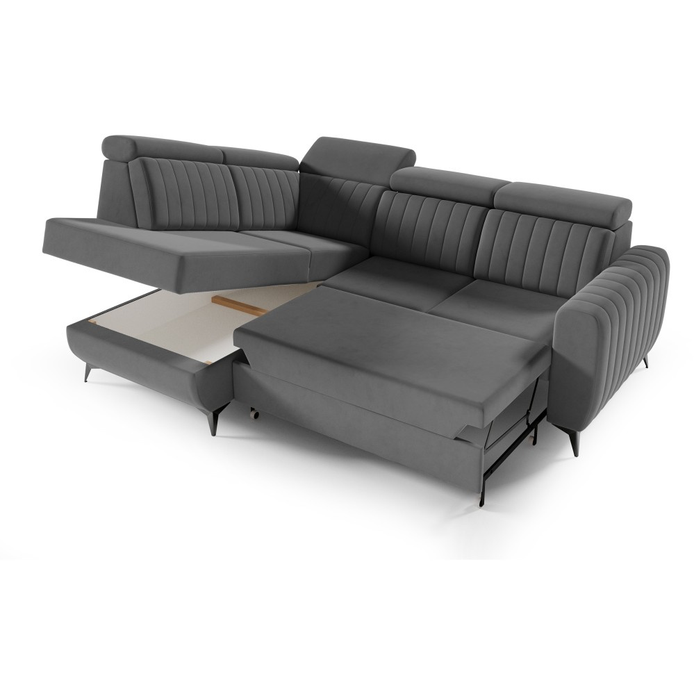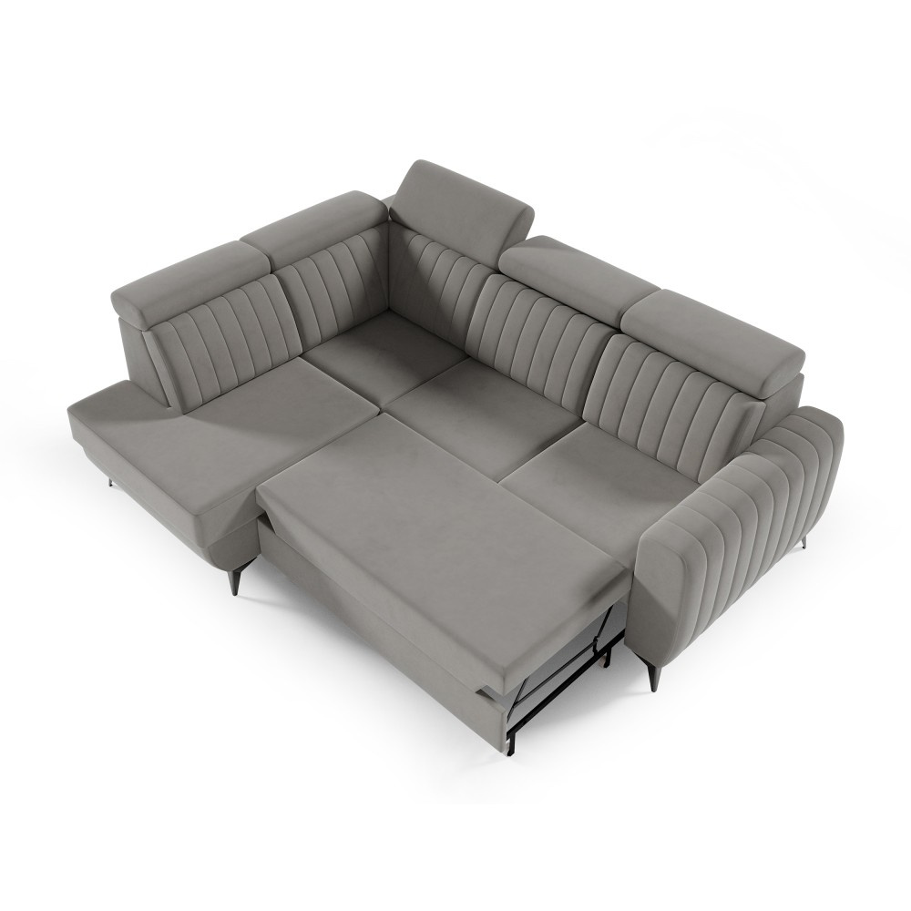Rohová pohovka CONNOR II kombinuje moderní design, maximální pohodlí při sezení a chytré funkce. Díky svým velkorysým rozměrům (268 x 204 x 109 cm) nabízí dostatek prostoru pro celou rodinu a zaručeně se stane ústředním bodem vašeho obývacího pokoje. Pohodlné sezení - Sedák je vybaven vlnitými pružinami typu B a vysoce elastickou pěnou. To zajišťuje optimální oporu, odolnost a pohodlné sezení – ideální pro relaxační večery. Funkce spaní a další úložný prostor - Díky integrované funkci spaní lze pohovku během chvilky proměnit v pohodlnou postel. Velký úložný prostor Přihrádka nabízí praktický úložný prostor pro polštáře, přikrývky nebo ložní prádlo. Mechanismus delfín umožňuje obzvláště snadné a rychlé rozložení pohovky. Moderní design a vysoce kvalitní materiály - Elegantní velurová látka Noel dodává pohovce stylový vzhled a příjemně měkký pocit. Robustní černé nohy zdůrazňují moderní design a zajišťují bezpečné uchycení. Individuálně přizpůsobitelné - Ať už je to levá nebo pravá verze – rohová pohovka se flexibilně přizpůsobí vašemu domovu. Díky tomu, že je volně stojící a opěradlo je čalouněno hlavní látkou, ji můžete volně umístit v místnosti. Rozměry: Šířka: 268 cm Výška: 109 cm Hloubka: 204 cm Výška sedáku: 48 cm Plocha na spaní: 123 x 194 cm NOEL je moderní velurová látka s velmi měkkým, příjemným povrchem. Díky jemnému lesku a nepravidelné struktuře látka mění barvu v závislosti na světle. Upozorňujeme, že všechny rozměry čalouněného nábytku mají toleranci +/- 2 %. Snažíme se zobrazit barvy co nejpřesněji. Upozorňujeme však, že se mohou vyskytnout drobné odchylky v důsledku monitoru a grafické karty. nastavení. Toto není oprávněný důvod k reklamaci. Navíc se barvy z různých sérií látek mohou mírně lišit. Dodání je možné na adresy v Německu. Nedoručujeme na ostrovy ani do horských oblastí. Disponujeme vlastní bezpečnou a rychlou přepravní službou. O datu dodání budete předem informováni.