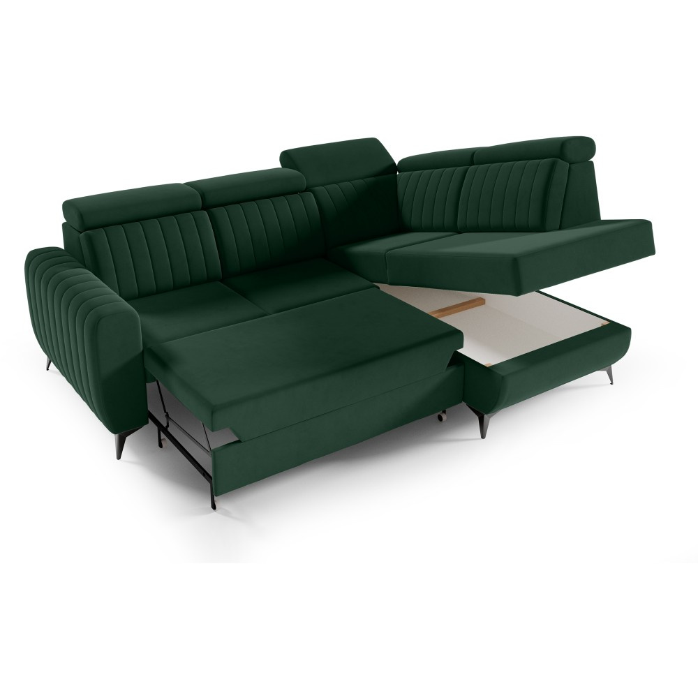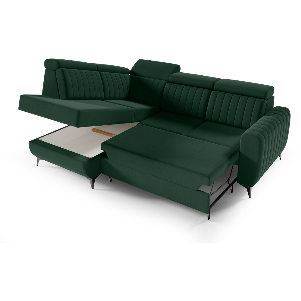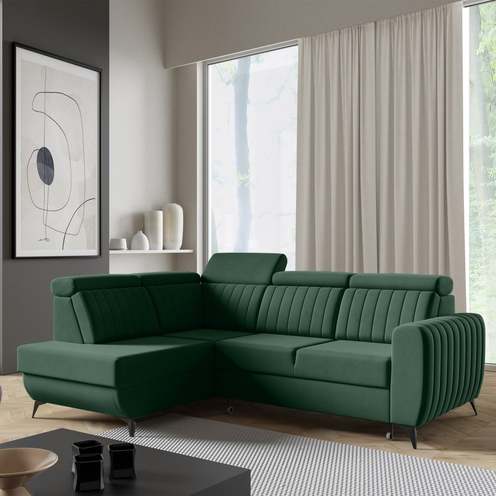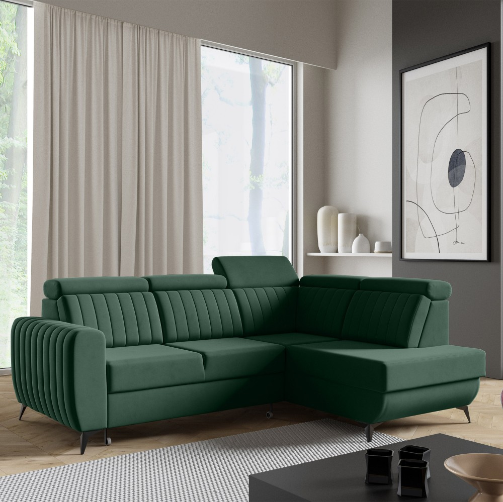 Rohová pohovka CONNOR II kombinuje moderní design, maximální pohodlí při sezení a chytré funkce. Díky svým velkorysým rozměrům (268 x 204 x 109 cm) nabízí dostatek prostoru pro celou rodinu a zaručeně se stane ústředním bodem vašeho obývacího pokoje. Pohodlné sezení - Sedák je vybaven vlnitými pružinami typu B a vysoce elastickou pěnou. To zajišťuje optimální oporu, odolnost a pohodlné sezení – ideální pro relaxační večery. Funkce spaní a další úložný prostor - Díky integrované funkci spaní lze pohovku během chvilky proměnit v pohodlnou postel. Velký úložný prostor Přihrádka nabízí praktický úložný prostor pro polštáře, přikrývky nebo ložní prádlo. Mechanismus delfín umožňuje obzvláště snadné a rychlé rozložení pohovky. Moderní design a vysoce kvalitní materiály - Elegantní velurová látka Noel dodává pohovce stylový vzhled a příjemně měkký pocit. Robustní černé nohy zdůrazňují moderní design a zajišťují bezpečné uchycení. Individuálně přizpůsobitelné - Ať už je to levá nebo pravá verze – rohová pohovka se flexibilně přizpůsobí vašemu domovu. Díky tomu, že je volně stojící a opěradlo je čalouněno hlavní látkou, ji můžete volně umístit v místnosti. Rozměry: Šířka: 268 cm Výška: 109 cm Hloubka: 204 cm Výška sedáku: 48 cm Plocha na spaní: 123 x 194 cm NOEL je moderní velurová látka s velmi měkkým, příjemným povrchem. Díky jemnému lesku a nepravidelné struktuře látka mění barvu v závislosti na světle. Upozorňujeme, že všechny rozměry čalouněného nábytku mají toleranci +/- 2 %. Snažíme se zobrazit barvy co nejpřesněji. Upozorňujeme však, že se mohou vyskytnout drobné odchylky v důsledku monitoru a grafické karty. nastavení. Toto není oprávněný důvod k reklamaci. Navíc se barvy z různých sérií látek mohou mírně lišit. Dodání je možné na adresy v Německu. Nedoručujeme na ostrovy ani do horských oblastí. Disponujeme vlastní bezpečnou a rychlou přepravní službou. O datu dodání budete předem informováni.