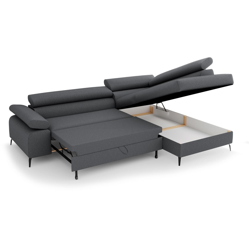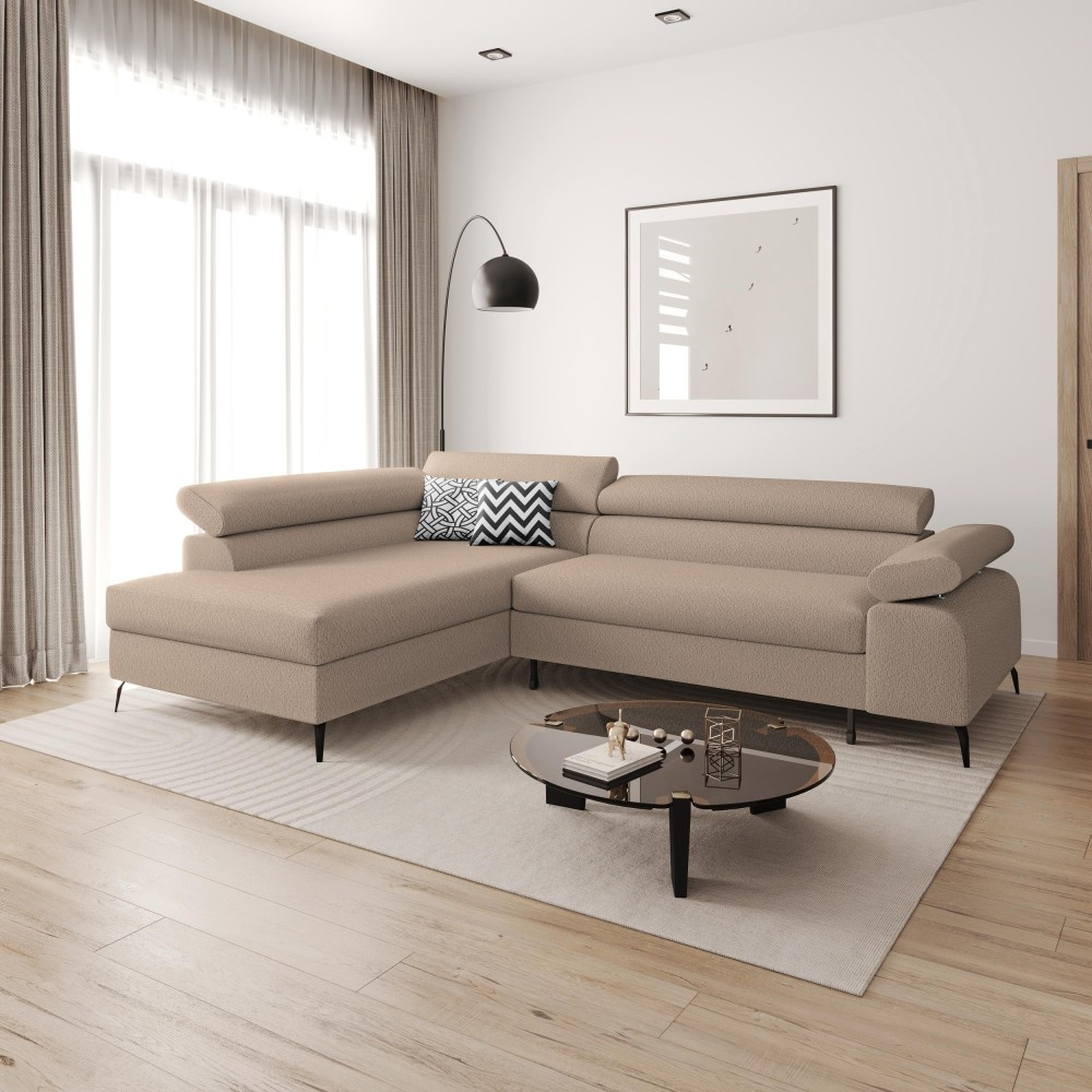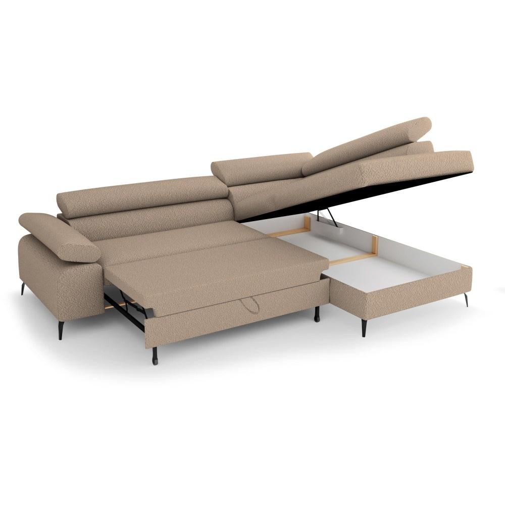 Rohová pohovka MELLOW je perfektní volbou pro každého, kdo hledá stylový kus nábytku s chytrými funkcemi. Ať už pro útulné večery s rodinou nebo jako pohodlné místo na spaní pro hosty – tato pohovka nabízí maximální flexibilitu bez kompromisů v designu. Díky integrované funkci spaní DELFIN lze pohovku během chvilky proměnit v prostornou spací plochu o rozměrech 200 × 130 cm. Ideální pro spontánní hosty, kteří se ubytují přes noc, nebo když prostě chcete více prostoru k relaxaci.