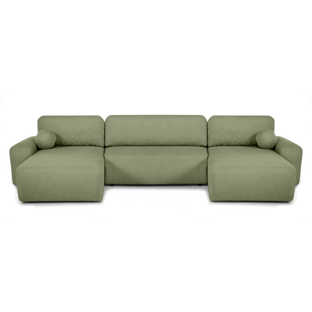 Rohová pohovka NOEL U kombinuje moderní design, maximální pohodlí a praktickou funkčnost v jednom velkoryse dimenzovaném kusu nábytku. Díky svému elegantnímu tvaru do U se stane ústředním bodem každého obývacího pokoje a nabídne dostatek prostoru pro rodinu a přátele. Ať už se jedná o útulné večery u televize, odpočinkové chvíle nebo spontánní přespání hostů – tato pohovka se bez námahy přizpůsobí vašemu každodennímu životu. Výhody v kostce: Sedák s vlnitými pružinami a pěnou T30/100 – Kombinace vlnitých pružin a vysoce kvalitní pěny T30/100 zajišťuje příjemnou pružnost a trvalé pohodlí při sezení. I při častém používání zůstává pohovka rozměrově stabilní a pohodlná. Stabilní dřevěná konstrukce – Pevný rám zajišťuje odolnost a stabilitu. Pohovka je určena pro každodenní používání a poskytuje spolehlivý základ po mnoho let. Funkce spaní s automatickým systémem Moss – Jediným pohybem se pohovka promění v pohodlnou spací plochu o rozměrech 122 × 323 cm. Ideální pro hosty nebo pohodové filmové večery – jednoduché, rychlé a funkční. Velkorý tvar U – Promyšlený design nabízí dostatek prostoru k sezení a lenošení a vytváří příjemnou atmosféru, ideální pro rodiny s dětmi nebo společenská setkání. Rohová pohovka NOEL je více než jen místo k sezení – kombinuje pohodlí, design a praktickou funkčnost. Ať už jako útulné oblíbené místo nebo jako místo na spaní pro hosty, NOEL se flexibilně přizpůsobí vašemu každodennímu životu a vnese do vašeho domova moderní styl.