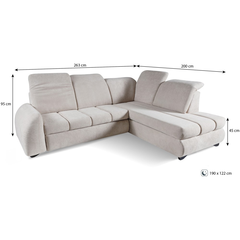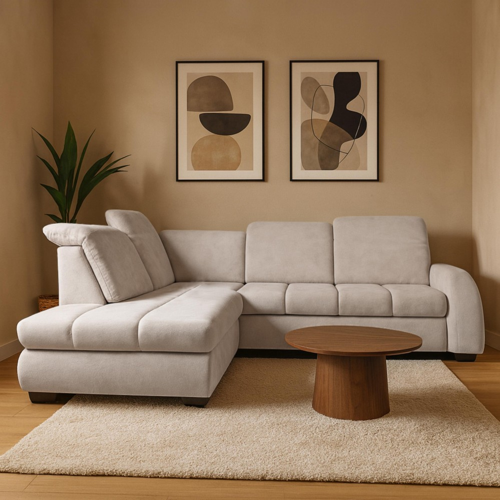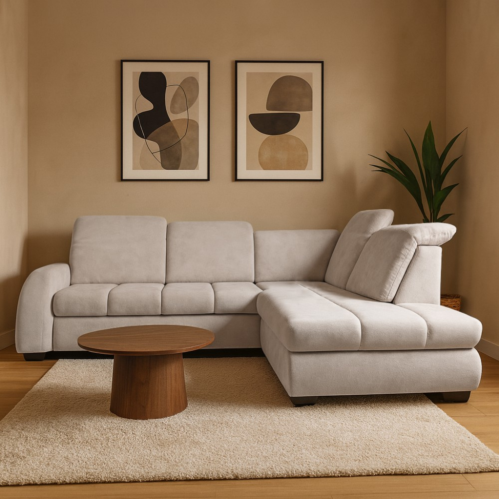 Stylová rohová pohovka ONEL kombinuje moderní design s vysokou funkčností a zajišťuje pohodlí v každodenním životě i klidné noci. Měkká plyšová látka Gerra dodává pohovce elegantní vzhled a je obzvláště pohodlná na používání. Díky nastavitelným opěrkám hlavy a pohodlnému sedáku se ONEL rychle stane oblíbeným místem celé rodiny. Pohodlný sedák s vlnitými pružinami pro dlouhotrvající potěšení ze sezení. Funkce spaní s praktickým výsuvným mechanismem ve tvaru delfína. Integrovaný úložný prostor – ideální pro přikrývky a polštáře. Nastavitelné opěrky hlavy pro individuální přizpůsobení. Plocha na spaní: 190 x 122 cm – ideální pro hosty nebo relaxační večery. Potah: Látka Gerra, měkký plyš s příjemným pocitem. Volba strany: pravá nebo levá – vhodná do každého obývacího pokoje. S rohovou pohovkou si domů přineste kus nábytku, který je zároveň estetický, pohodlný a praktický – perfektní kombinace pro moderní bydlení. Rozměry: Šířka: 263 cm Výška: 95 cm Délka: 200 cm Výška sedáku: 45 cm Plocha na spaní: 122 x 190 cm GERRA je ideální pro čalounění a dekorativní účely. Materiál zaujme svou příjemnou texturou a moderním vzhledem. Čalouněný plyš se vyznačuje krátkým, hustým vlasem, který mu dodává měkkou texturu. Upozorňujeme, že všechny rozměry čalouněného nábytku podléhají toleranci +/- 2 %. Snažíme se zobrazit barvy co nejpřesněji. Upozorňujeme však, že v důsledku nastavení monitoru a grafické karty se mohou vyskytnout drobné odchylky. Toto není důvod k reklamaci. Barvy v rámci různých řad látek se navíc mohou mírně lišit. Dodání je možné na adresy v rámci Německa. Nedodáváme na ostrovy ani do horských oblastí. Využíváme vlastní bezpečnou a efektivní přepravní službu. O datu dodání budete předem informováni.