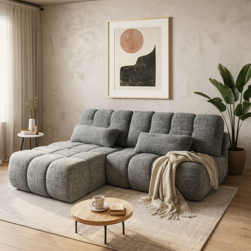 Objevte rohovou pohovku TERIO, která v jednom kusu nábytku kombinuje moderní pohodlí a praktickou všestrannost. Tato pohovka, ideální do obývacích pokojů nebo pokojů pro hosty, zaujme pohodlným sezením, integrovanou funkcí spaní a dalším úložným prostorem. Pohodlný sedák s pružinovým odpružením s vlnovou vrstvou – trvalé pohodlí při sezení a relaxaci. Funkce spaní s výsuvným mechanismem – pohovku rychle promění v pohodlnou postel. Bed box – další úložný prostor pro polštáře, přikrývky nebo ložní prádlo. Plocha na spaní: 211 x 142 cm – ideální pro hosty nebo relaxační večery ve dvou. Vysoce kvalitní látka Bello (ženilka) – měkká, snadno se udržuje a odolná. Taburet volitelný vlevo nebo vpravo: Flexibilní přizpůsobení dispozici místnosti. Moderní design – nadčasový, elegantní a dokonale kombinovatelný s různými styly interiérového designu. Rohová pohovka TERIO není jen pohodlným místem k sezení a spaní, ale také stylovým doplňkem každé místnosti. Spojuje praktickou funkčnost, pohodlné bydlení a moderní design v jednom kusu nábytku a je ideální pro každého, kdo hledá všestranný nábytek do obývacího pokoje. Rozměry: Šířka: 225 cm Výška: 93 cm Délka: 172 cm Výška sedáku: 45 cm Plocha na spaní: 142 x 211 cm BELLO – je elegantní ženilka, která kombinuje moderní design s funkčností. Je vyrobena ze 100% polyesteru, gramáž 400 g/m² a šířka 142 cm. Díky vysoké odolnosti proti oděru (80 000 cyklů) a ohnivzdornosti je látka odolná a bezpečná k použití. Upozorňujeme, že všechny rozměry čalouněného nábytku mají toleranci +/- 2 %. Snažíme se zobrazit všechny barvy co nejpřesněji. Upozorňujeme však, že v důsledku nastavení monitoru a grafické karty se mohou vyskytnout drobné odchylky. Toto není důvod k reklamaci. Barvy z různých sérií látek se navíc mohou mírně lišit v odstínu. Dodání je možné na adresy v rámci Německa. Nedodáváme na ostrovy ani do horských oblastí. Máme vlastní bezpečnou a rychlou přepravní službu. O datu dodání vás budeme předem informovat.