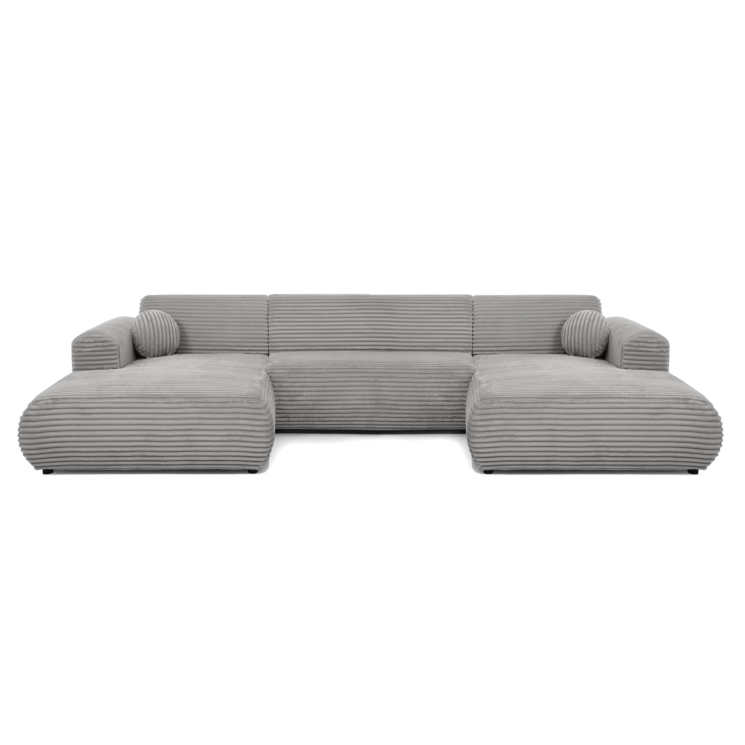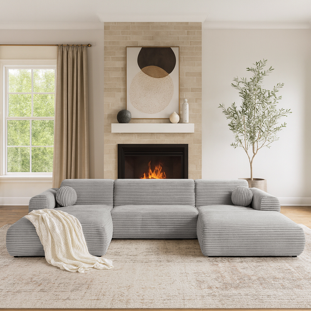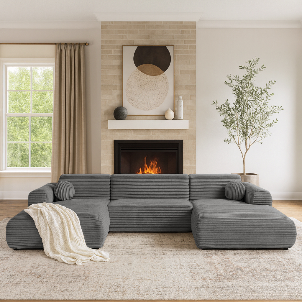 Rohová pohovka PUERTO U bez funkce spaní kombinuje moderní design s maximálním pohodlím a stává se ústředním bodem každého obývacího pokoje. Měkká manšestrová tkanina Tilia dodává módní vzhled a obzvláště příjemný pocit, zatímco pečlivě vyrobené čalounění s vlnitými pružinami a pěnou T30 zajišťuje dlouhodobé a konzistentní pohodlí při sezení. Díky svému velkorysému tvaru do U nabízí pohovka dostatek prostoru pro útulné večery u televize s rodinou, relaxační odpoledne nebo společenská setkání s přáteli. Promyšlená konstrukce zaručuje pohodlné sezení každý den. Stabilní základna s černými plastovými nožičkami zajišťuje stabilitu, zatímco plně čalouněná záda dělají z pohovky ideální volně stojící kus nábytku – ideální do otevřených obytných prostor. Zakoupením rohové pohovky PUERTO U získáte kus nábytku, který zaujme nejen svým vzhledem, ale i funkčností.