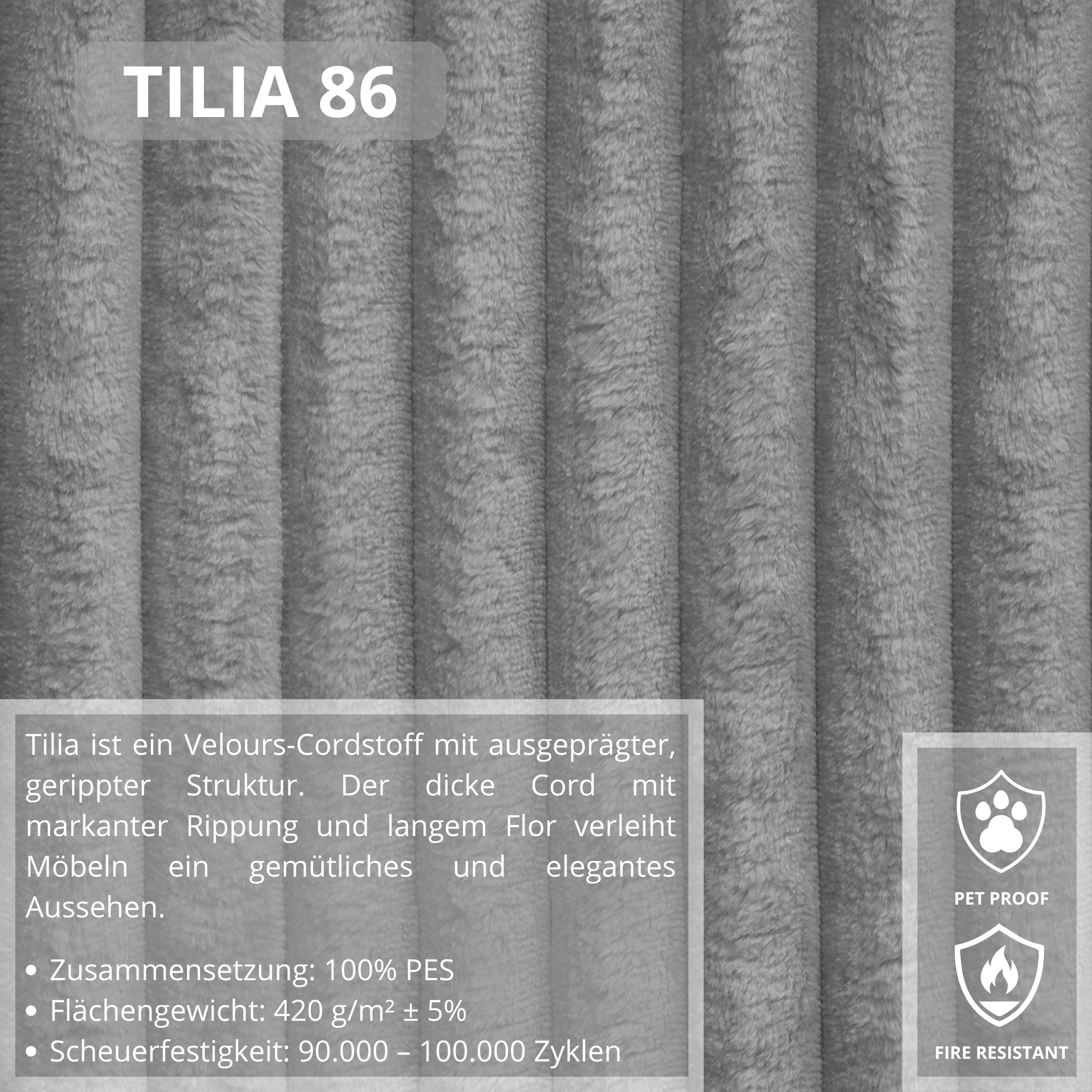 TILIA – teplá čalouněná látka, která je na dotek velmi příjemná. Má hustý vlas uspořádaný v rovnoběžných pruzích o šířce přibližně 2,5 cm. Látka je ideální do interiérů, které vyvolávají teplo a útulnou atmosféru. Čalounická látka má certifikaci REACH, což znamená, že neobsahuje škodlivé chemikálie. Upozorňujeme, že všechny rozměry čalouněného nábytku se mohou lišit o +/- 2 %. Snažíme se zobrazit barvy co nejpřesněji. Upozorňujeme však, že v důsledku nastavení monitoru a grafické karty se mohou vyskytnout drobné odchylky. Toto není důvod k reklamaci. Barvy z různých sérií látek se navíc mohou mírně lišit. Dodání je možné na adresy v rámci Německa. Nedoručujeme na ostrovy ani do horských oblastí. Využíváme vlastní bezpečnou a rychlou přepravní službu. O datu dodání budete předem informováni.
