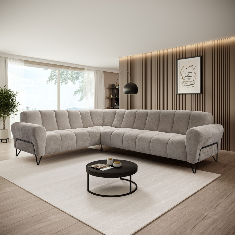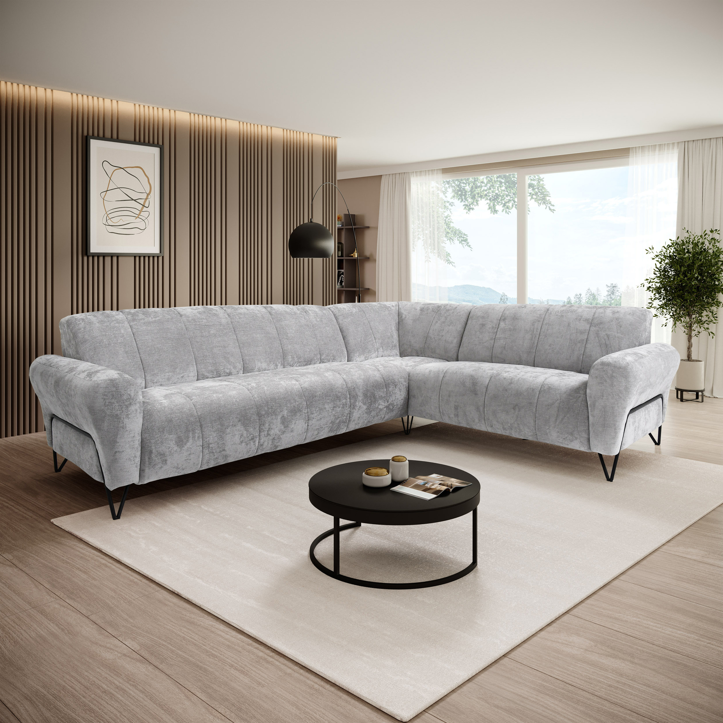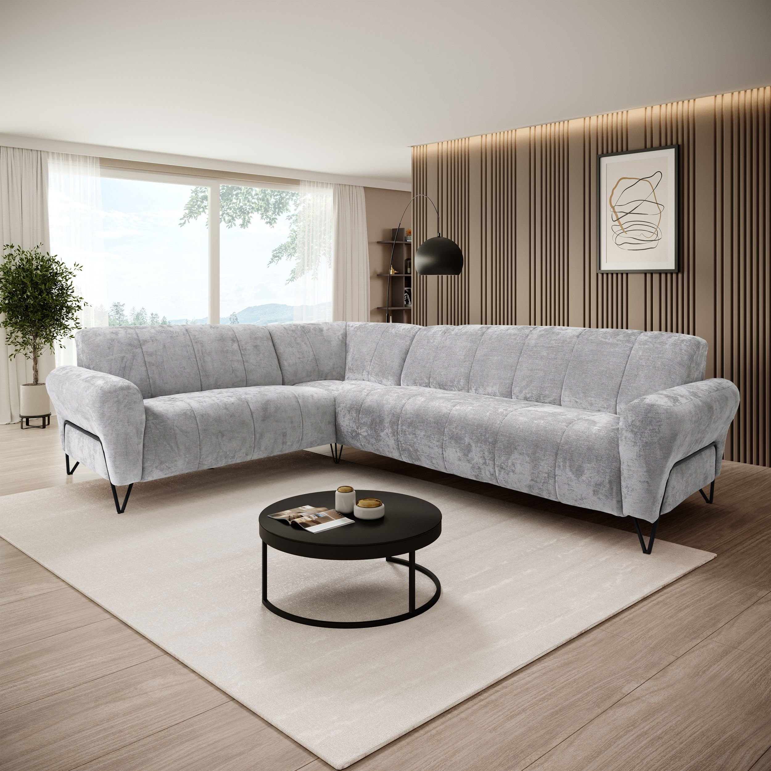 Rohová pohovka VOLARE spojuje moderní design s nejvyšším komfortem sezení a je perfektní volbou pro stylově uvědomělý obývací pokoj. Elegantní kovové nohy v černé barvě dodávají pohovce ušlechtilý, nadčasový charakter, který se bez problémů začlení do různých konceptů interiéru. Vysoce kvalitní HR pěna a robustní B-typ vlnová pružina zajišťují optimální pohodlí při sezení a dlouhou životnost – ideální pro relaxační chvíle ve vašem domově. Design samostatně stojícího nábytku s plně čalouněným zadním dílem hlavní látkou umožňuje maximální flexibilitu při umístění v prostoru. Ať už uprostřed obývacího pokoje nebo u stěny – rohová sedačka VOLARE vždy vytváří moderní dojem. Jasné linie a promyšlený design dělají z této pohovky skutečný poutač. Bez funkce spaní se VOLARE zaměřuje výhradně na estetický design a příjemný komfort – ideální pro všechny, kteří kladou důraz na stylový obývací pokoj. Nechte se inspirovat spojením funkčnosti a designu a zažijte luxus v jeho nejjednodušší formě!