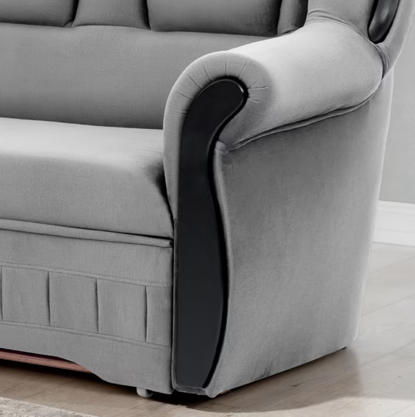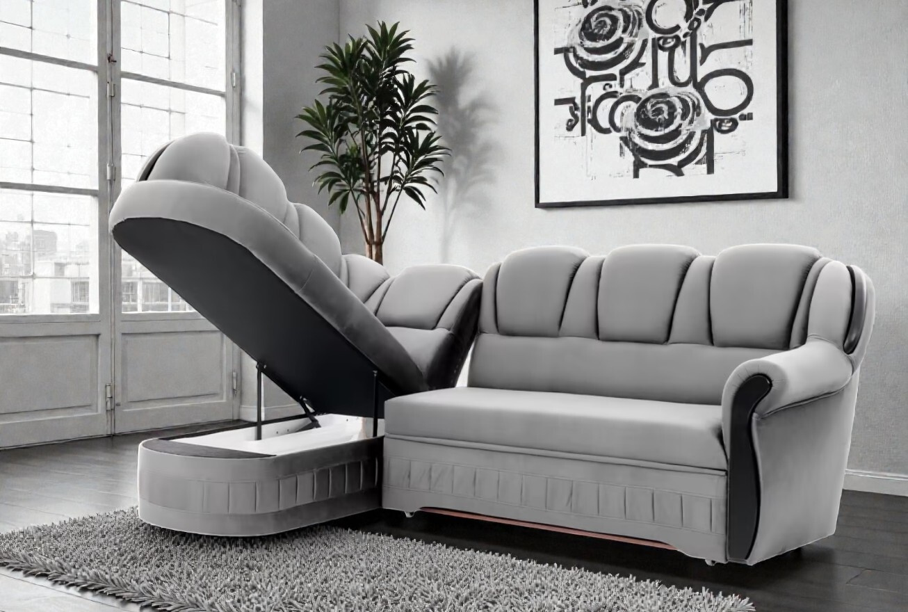 • Praktický úložný prostor: Integrovaný velký kontejner na lůžkoviny je diskrétně ukryt v konstrukci, takže máte deky a polštáře vždy uklizené, ale po ruce.