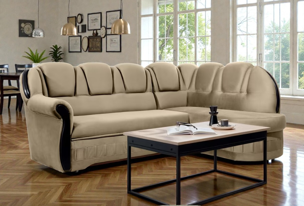 Sedací souprava Sandra je ztělesněním vkusu a elegance. Tento model ve tvaru písmene L není pouze praktickým kusem nábytku, ale díky svému unikátnímu designu se stane skutečnou ozdobou vašeho interiéru. Její charakteristická silueta s jemně zaoblenými opěradly a vkusným prošíváním odkazuje na klasický styl, zatímco moderní materiály zajišťují komfort odpovídající dnešním standardům.