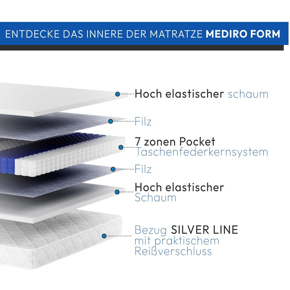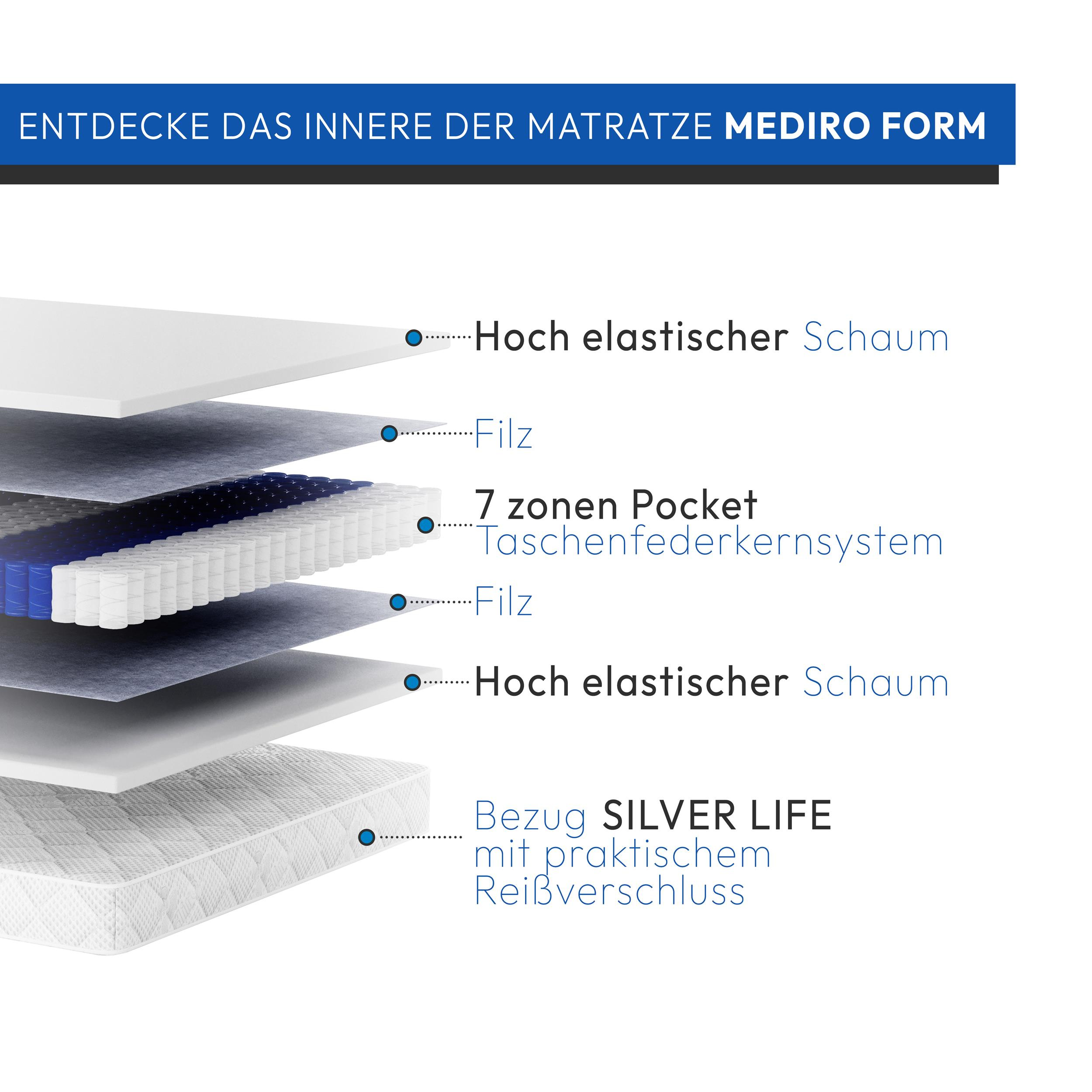 MEDIRO FORM je jednostranná matrace určená pro lidi, kteří hledají ideální rovnováhu mezi měkkostí a stabilní oporou.