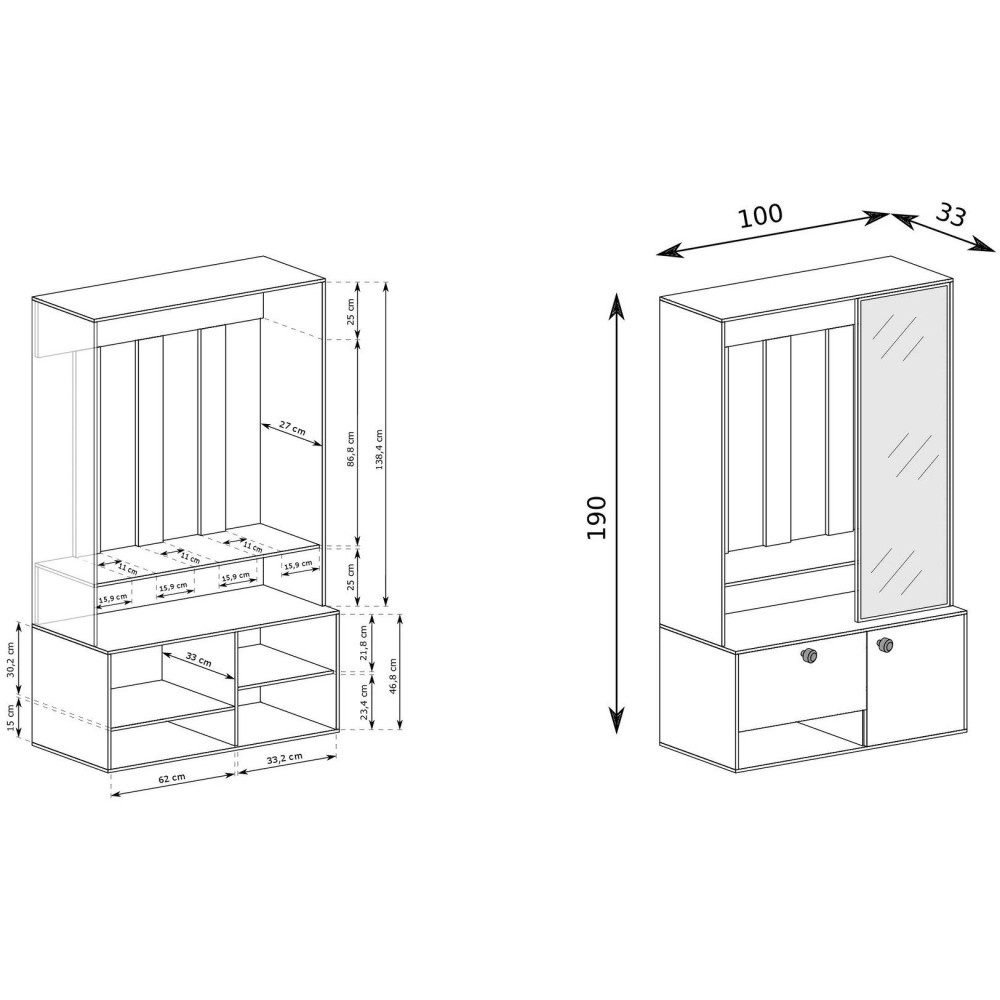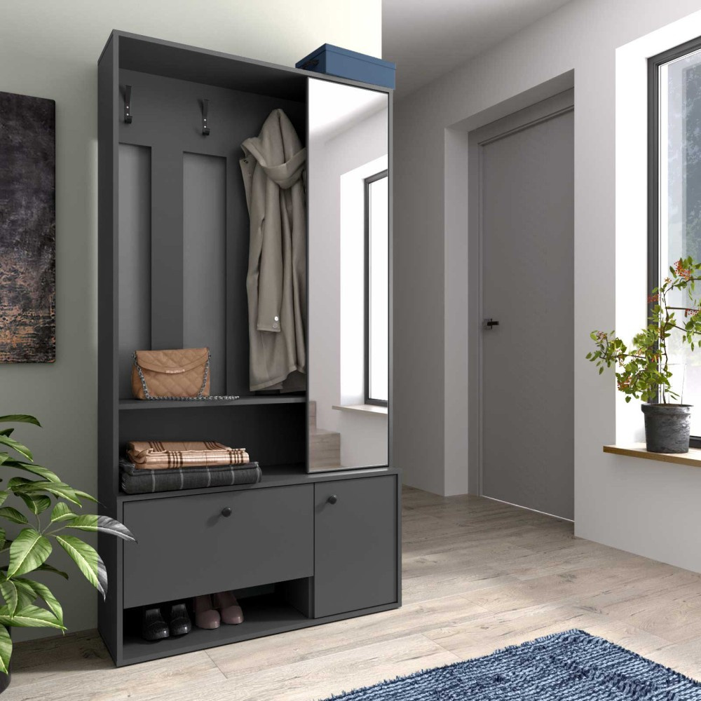 Šatní skříň SPOT PLUS kombinuje minimalistický design s promyšlenou funkčností – ideální pro malé chodby, moderní vstupní prostory nebo kompaktní vstupní prostory. Chytrý design zajišťuje pořádek, pohodlí a stylový první dojem při vstupu do vašeho domova. Integrované zrcadlo – opticky zvětšuje místnost a je praktické pro poslední pohled před odchodem. Univerzální montáž – lze namontovat vpravo nebo vlevo. Volitelné sedák – pro větší pohodlí k dispozici s čalouněným sedákem nebo bez něj. Otevřené police a háčky – ideální pro uložení bund, tašek a doplňků