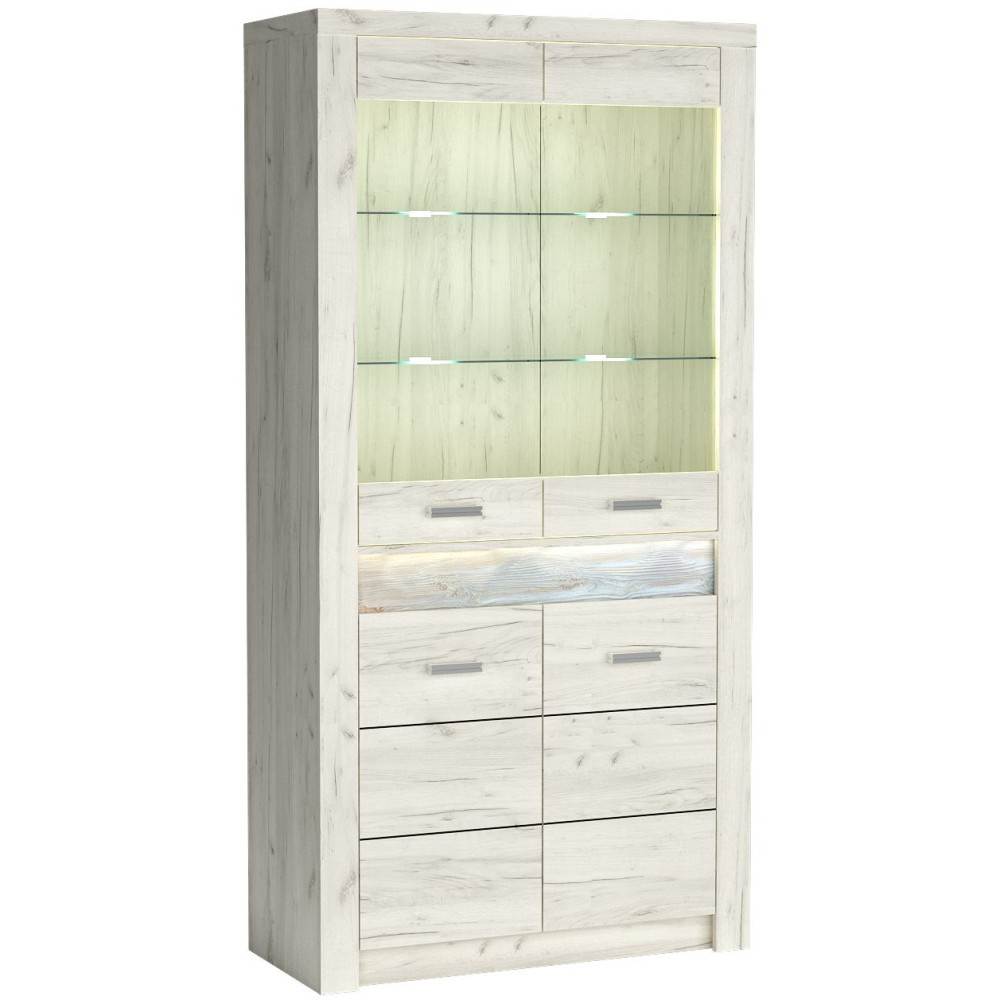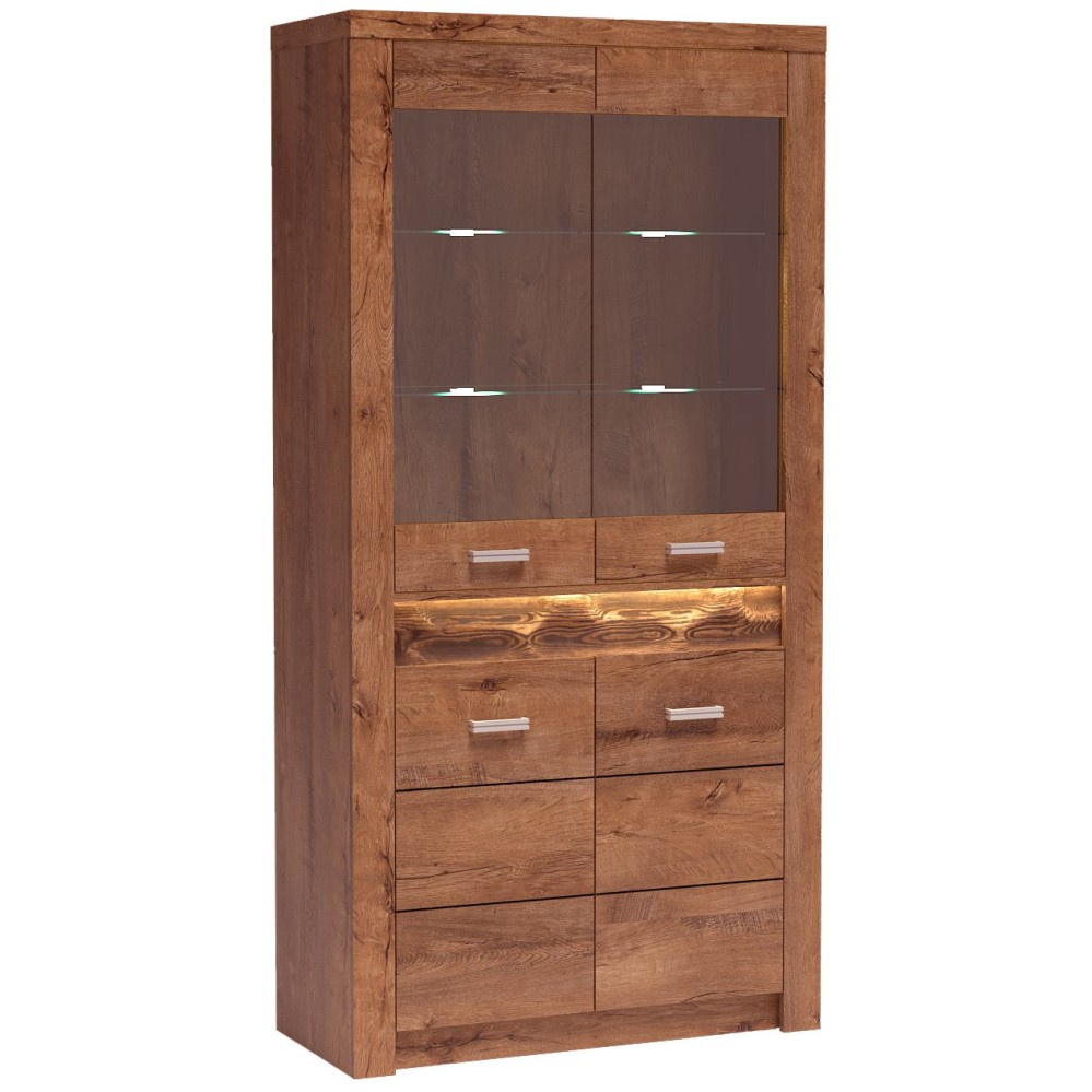 Velká vitrína POLIS se 4 dvířky kombinuje moderní industriální styl s funkční elegancí. Díky dvěma proskleným dvířkům nabízí ideální prostředí pro stylové vystavení oblíbených dekorativních předmětů, jemného nádobí nebo sběratelských předmětů – na několika úrovních. Volitelné přední LED osvětlení vytváří atmosférické světelné akcenty, zatímco verze s dalšími LED bodovými světly na skleněných policích skutečně rozzáří vystavené předměty. Skutečný vrchol v každém obývacím pokoji nebo jídelně.