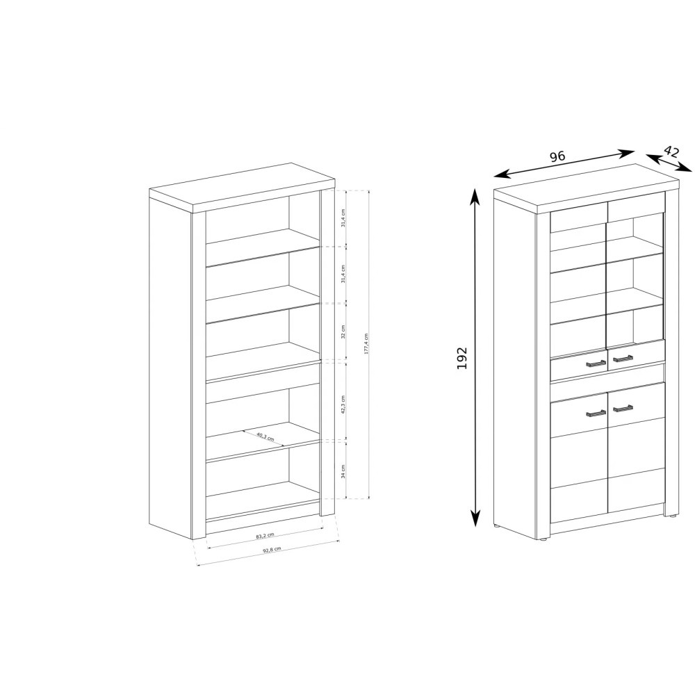 Černé kovové úchytky podtrhují výrazný charakter nábytku a dodávají mu robustní a elegantní vzhled. S rozměry 96 x 42 x 192 cm nabízí vitrína dostatek úložného prostoru – i za zavřenými dvířky ve spodní části. Rozměry: Rádi bychom vás informovali, že všechny rozměry čalouněného nábytku mají toleranci +/- 2 %. Snažíme se zobrazit všechny barvy co nejpřesněji. Upozorňujeme však, že v důsledku nastavení monitoru a grafické karty se mohou vyskytnout drobné odchylky. Toto není důvod k reklamaci. Kromě toho se barvy různých sérií látek mohou mírně lišit v odstínu. Dodání je možné na adresy v rámci Německa. Nedodáváme na ostrovy ani do horských oblastí. Disponujeme vlastní bezpečnou a rychlou přepravní službou. O datu dodání budete předem informováni.
