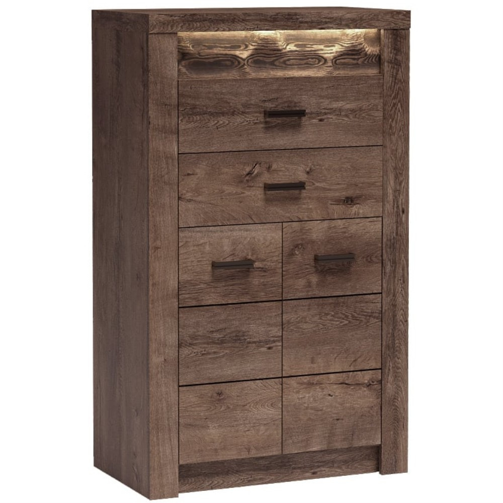 Vysoká komoda POLIS kombinuje funkční úložný prostor s výrazným moderním designem. Integrované LED přední osvětlení na ozdobné liště poskytuje stylový světelný akcent a vytváří útulnou atmosféru – ideální jako elegantní ústřední bod v obývacím pokoji nebo ložnici. Díky dvěma hladce se vysouvajícím zásuvkám a skříňce s dvoukřídlými dvířky, za nimiž je skrytá praktická police, nabízí tento kus nábytku dostatek prostoru na oblečení, předměty denní potřeby nebo dokumenty. Dekorativní černé kovové úchytky a masivní konstrukce podtrhují vysoce kvalitní zpracování a charakteristický vzhled série POLIS. Díky kompaktním rozměrům 76 x 42 x 127 cm se vysoká komoda perfektně hodí i do menších místností – ať už samostatně nebo v kombinaci s dalšími kusy ze série. Vyberte si ze tří elegantních barevných variant: