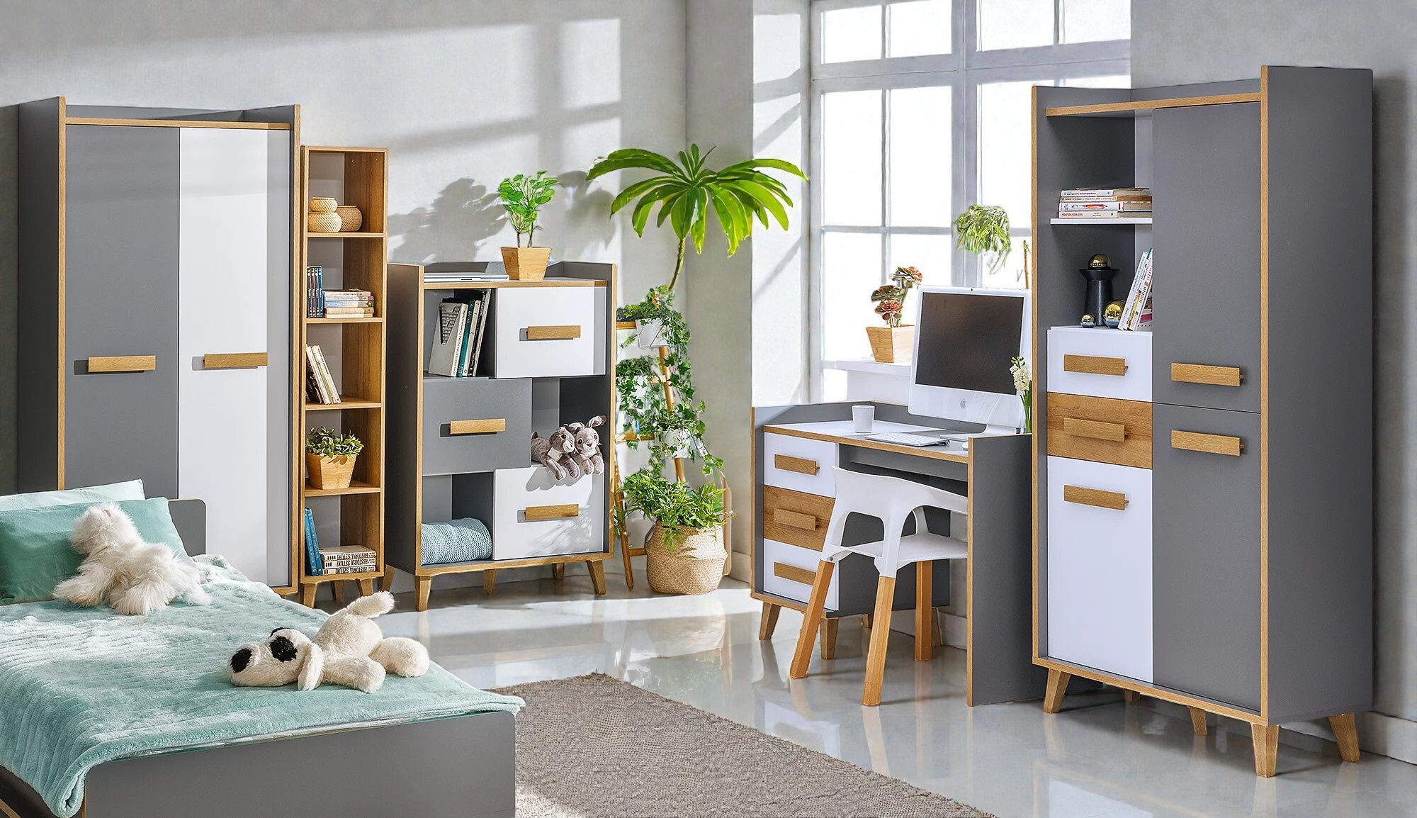 Dětský pokoj Beste (vzorová sestava A), dub nash/bílá