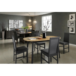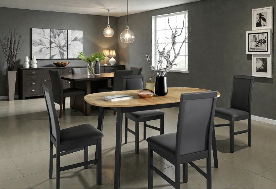 Hledáte jídelní kout, který bude vypadat stylově a zároveň se přizpůsobí vašim potřebám? Tento set rozkládacího stolu a čtyř židlí vsází na moderní kontrast černé barvy a přírodního dekoru dub sonoma. Tato nadčasová kombinace dodá vaší jídelně industriální nádech a stane se středobodem celého interiéru.