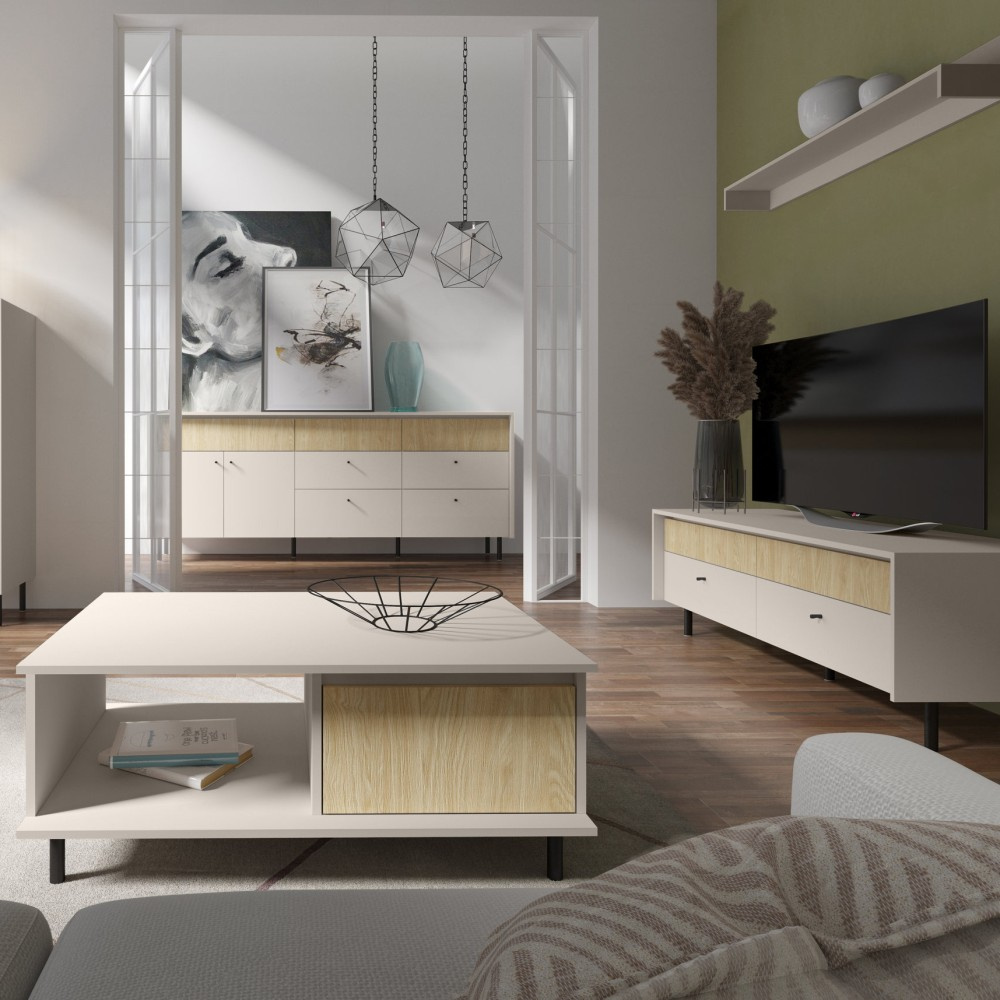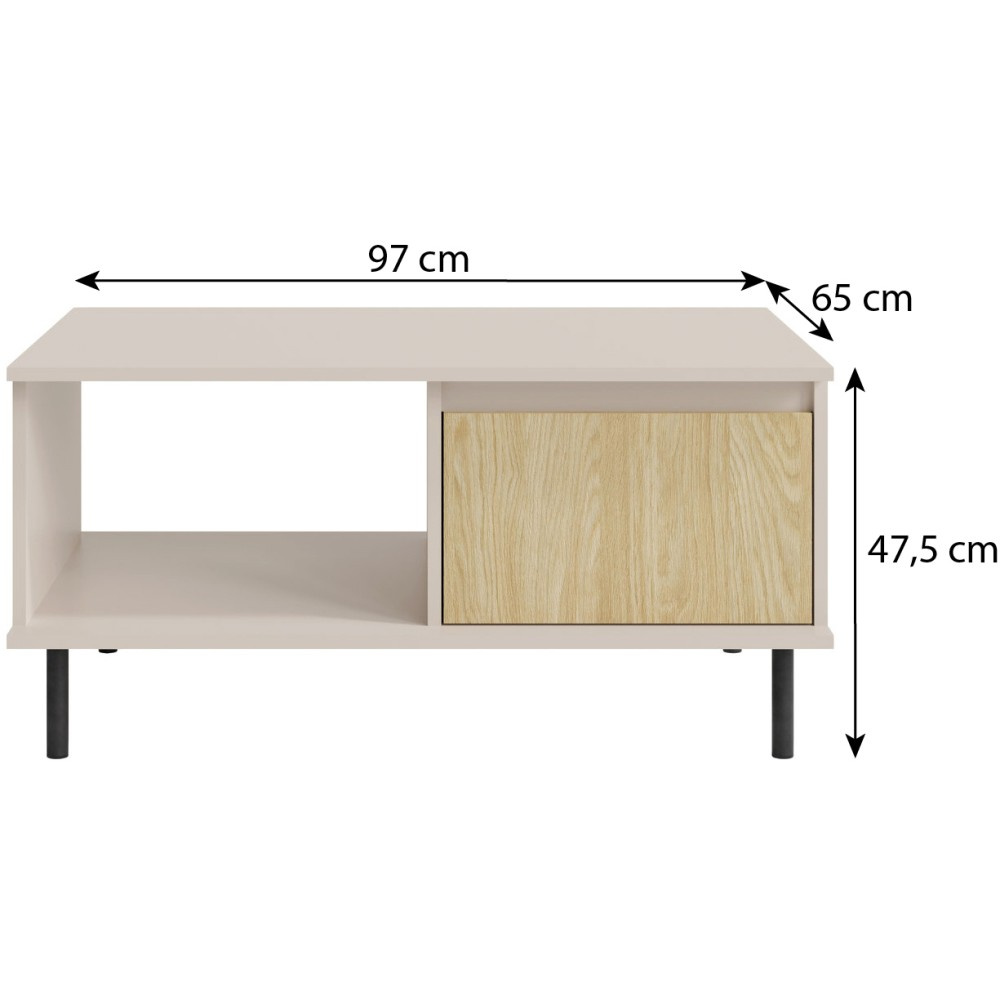 Konferenční stolek MONAKO kombinuje stylový design a praktickou funkčnost v jednom kusu nábytku. Díky rozměrům 97 × 65 × 47,5 cm nabízí perfektní výšku a velikost, aby sloužil jako ústřední bod v obývacím pokoji – ať už pro nápoje, občerstvení nebo dekorativní předměty. Jedna zásuvka s otevíráním bez úchytek – umožňuje snadné otevírání a vytváří moderní, minimalistický vzhled. Harmonická barevná kombinace – elegantně doplňuje různé styly interiérového designu. Kovové nohy – zaručují stabilitu a zdůrazňují moderní design. ABS hrany – nabízejí ochranu před poškozením a zvyšují odolnost. Moderní styl – čisté linie a decentní detaily dělají ze stolku skutečný poutač. Konferenční stolek MONAKO s 1 zásuvkou zaujme kombinací funkčnosti a designu. Objevte další nábytek z kolekce MONAKO v našich dalších aukcích a navrhněte si domov ve stylu Uniform.