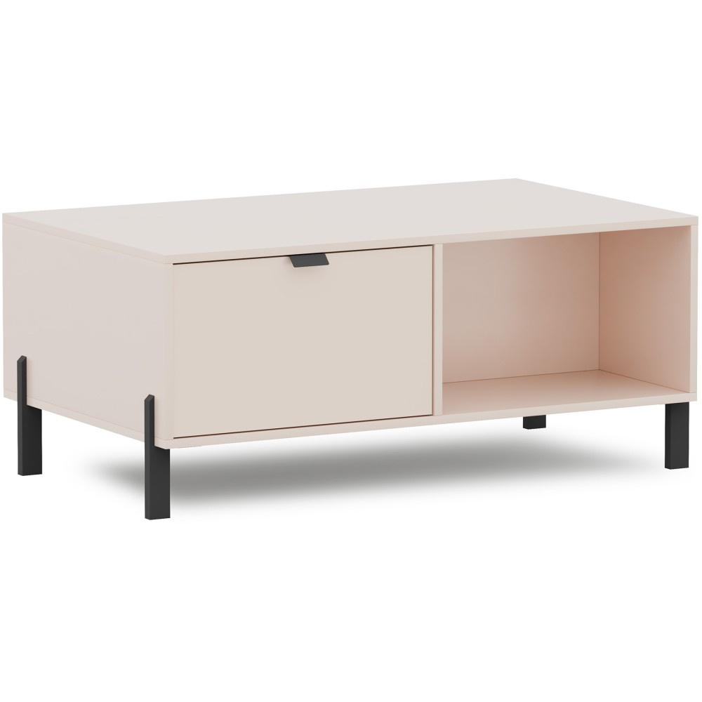 Konferenční stolek CORTINA kombinuje praktickou funkčnost s elegantním stylem. Díky harmonickému pískově béžovému barevnému schématu a čistým liniím se stane ústředním bodem každého obývacího pokoje. Ideální pro ty, kteří si cení vysoce kvalitního zpracování a nadčasového designu. Jedna praktická zásuvka - Integrovaná zásuvka nabízí prostor pro dálkové ovladače, časopisy nebo drobné předměty denní potřeby. Díky **válečkovým vodítkům** se s ním dá plynule a tiše manipulovat.