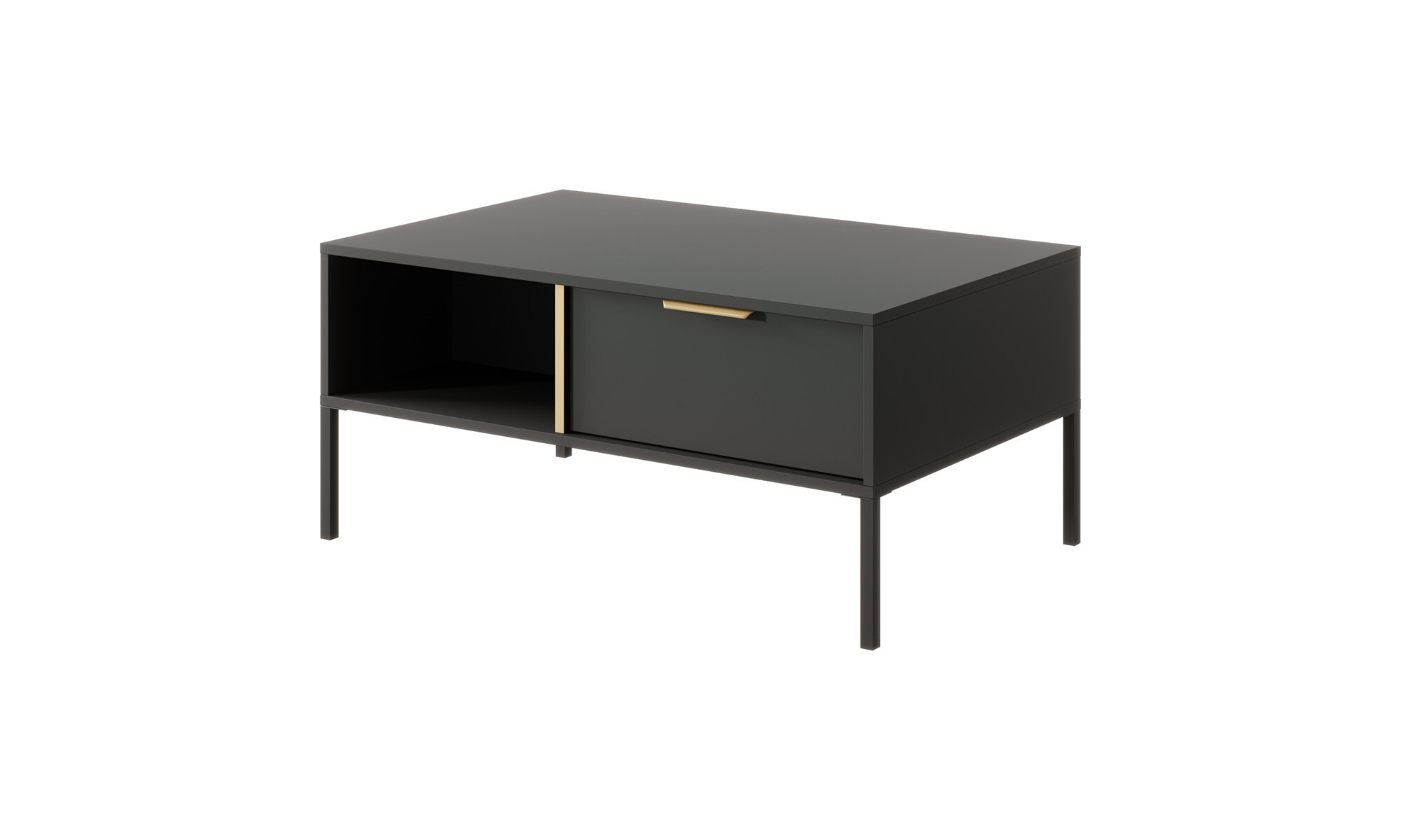 Design kolekce Tereno sází na kontrast: temná elegance antracitu je protnuta dekorativním zlatým ABS obložením na vnitřních příčkách a doplněna subtilními zlatými úchyty. Tento neotřelý prvek dodává nábytku hloubku a neopakovatelný šmrnc.
