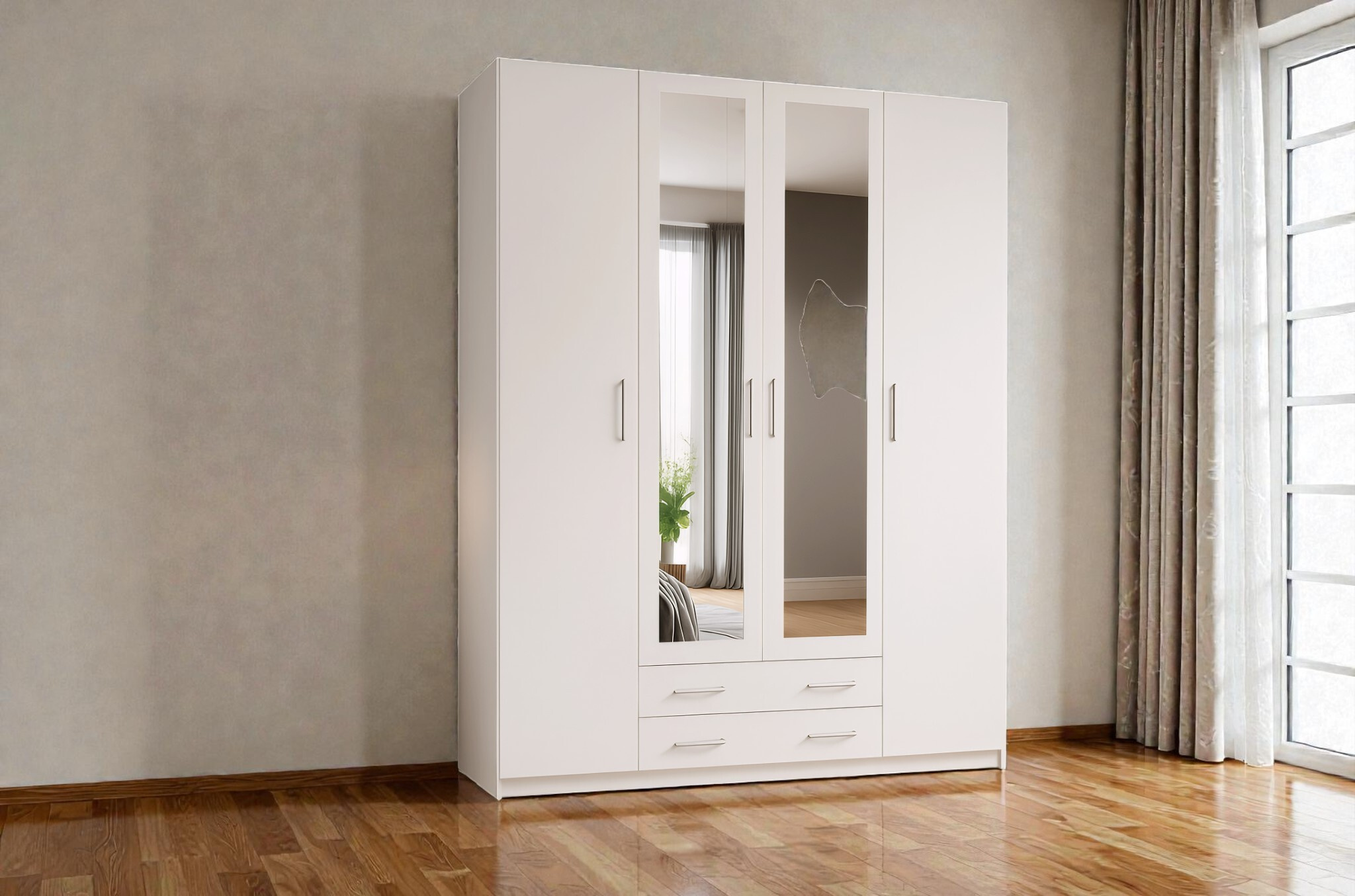 Kombinovaná šatní skříň se zrcadlem a šuplíky