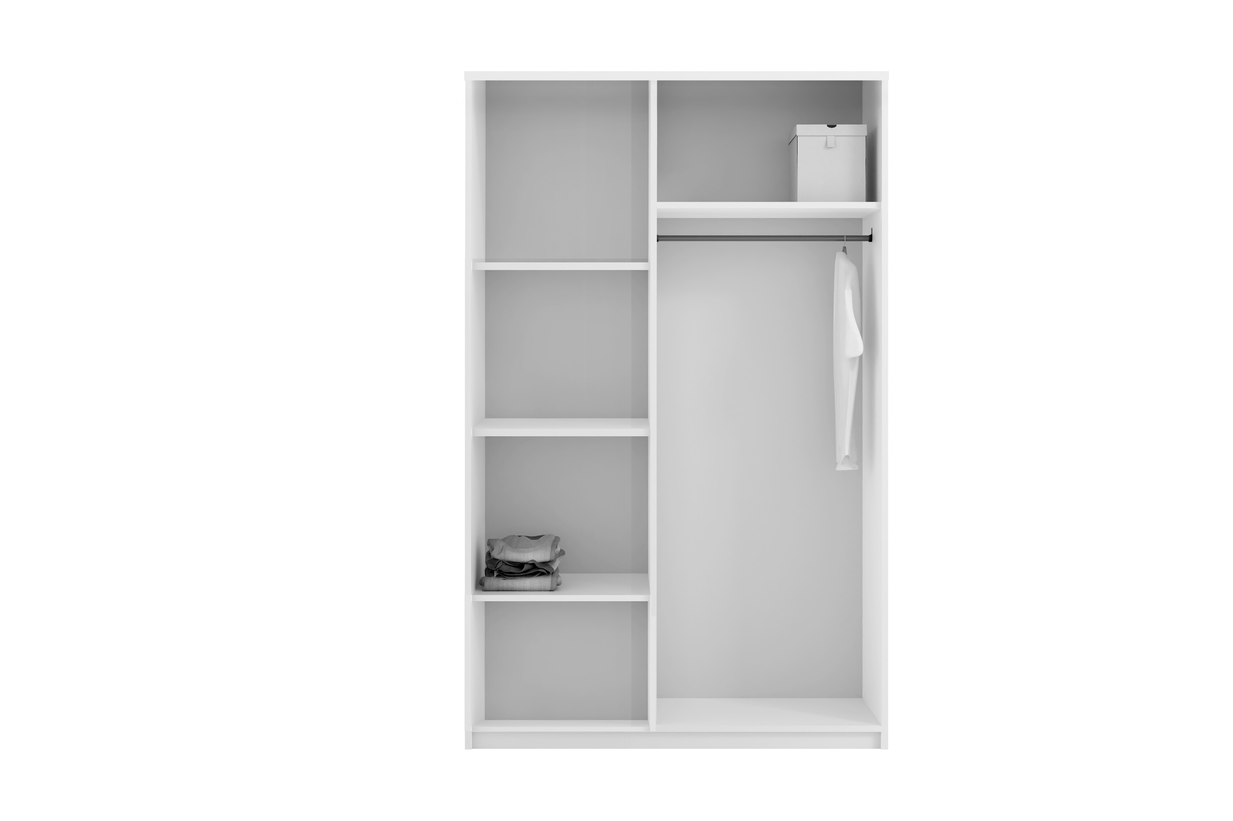 Díky svému minimalistickému vzhledu se skříň skvěle přizpůsobí jakémukoliv stylu – od tradičního (dekor wenge) až po moderní skandinávský (bílá nebo sonoma). I přes menší rozměry nabízí promyšlené vnitřní uspořádání, které udrží váš šatník v dokonalém pořádku.